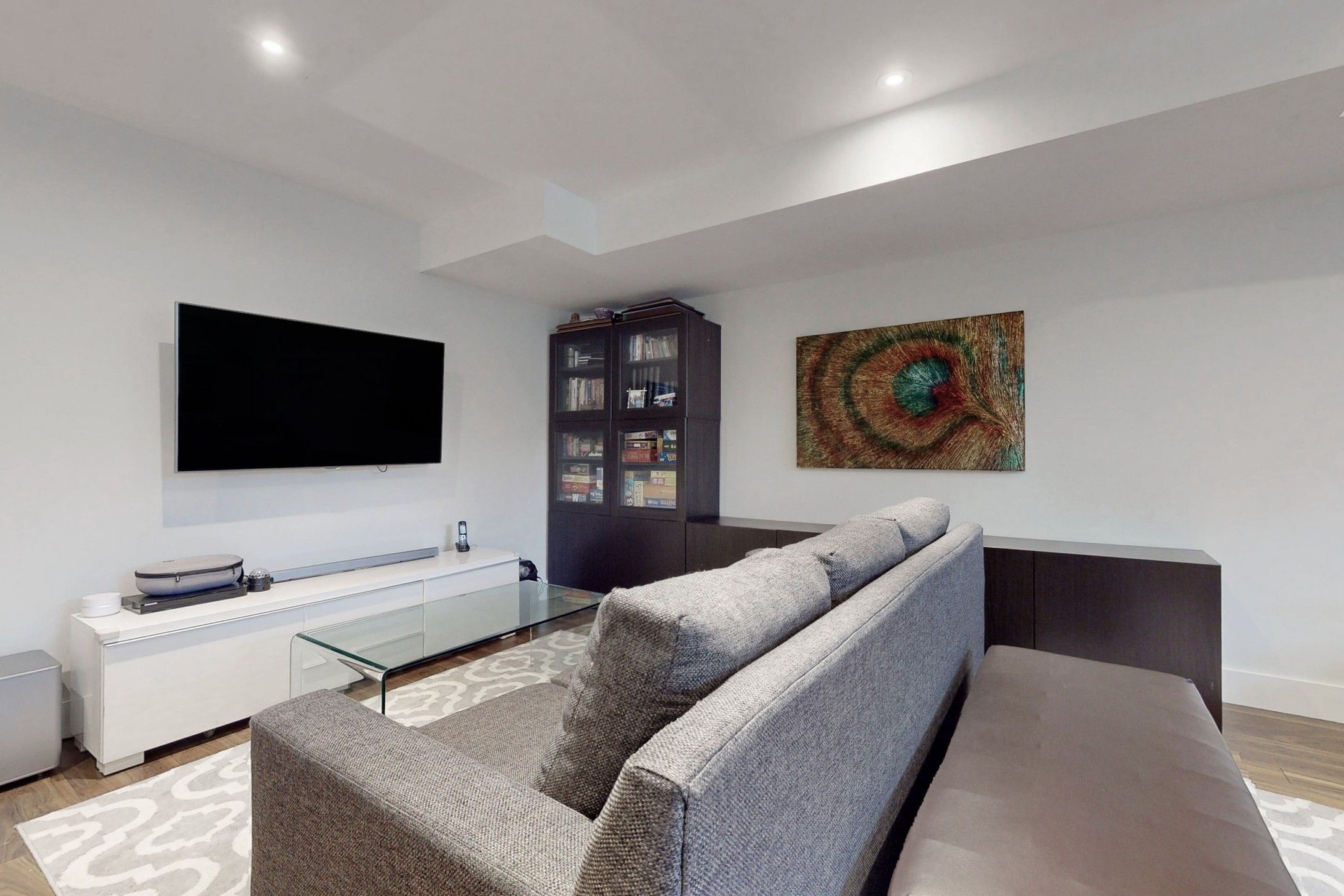 • Four spacious bedrooms with large windows and custom closet inserts.