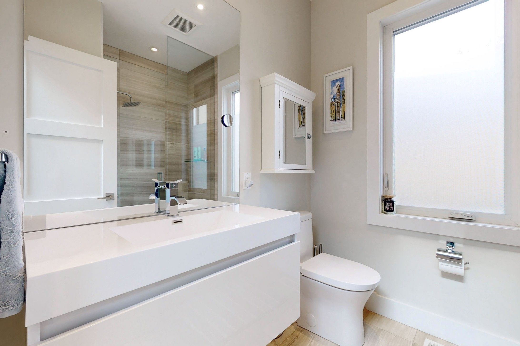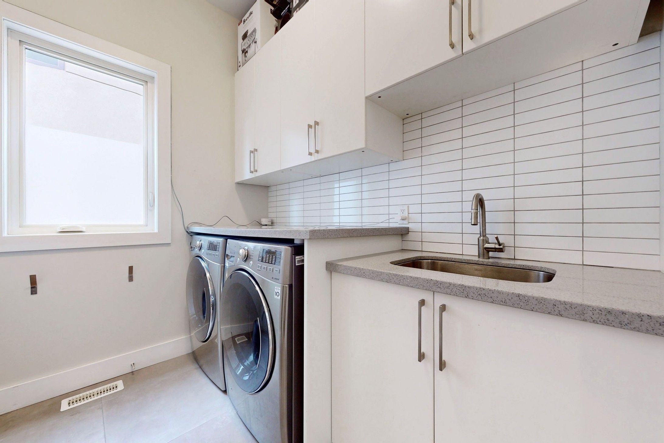 Welcome to this exquisite custom-built modern residence nestled in the heart of lakeview. This home exudes luxury and elegance, offering a harmonious balance of space and light with an open-concept layout spanning approximately 3200 square feet. As you step inside, you'll be greeted by 10-foot ceilings on the main floor, 4 beautifully appointed bedrooms with expansive windows and custom closet inserts, along with 5 opulent spa-like bathrooms. No detail has been spared in the masterful carpentry, highlighted by 2 skylights that bathe the interiors in natural light. The gourmet kitchen, complete with a breakfast bar, beckons both chefs and entertainers alike. Step outside to the deck and fully fenced yard, perfect for outdoor gatherings or quiet relaxation in the privacy of your own spa hot tub. Bright and spacious rec/family room with ample storage space. Privacy and security film on windows, custom blinds throughout. Situated on quiet dead end street, perfect for children. In close proximity to lakefront trails & eclectic shops, walk to schools. This home offers a lifestyle of sophistication & convenience. Welcome to a world where luxury meets comfort!