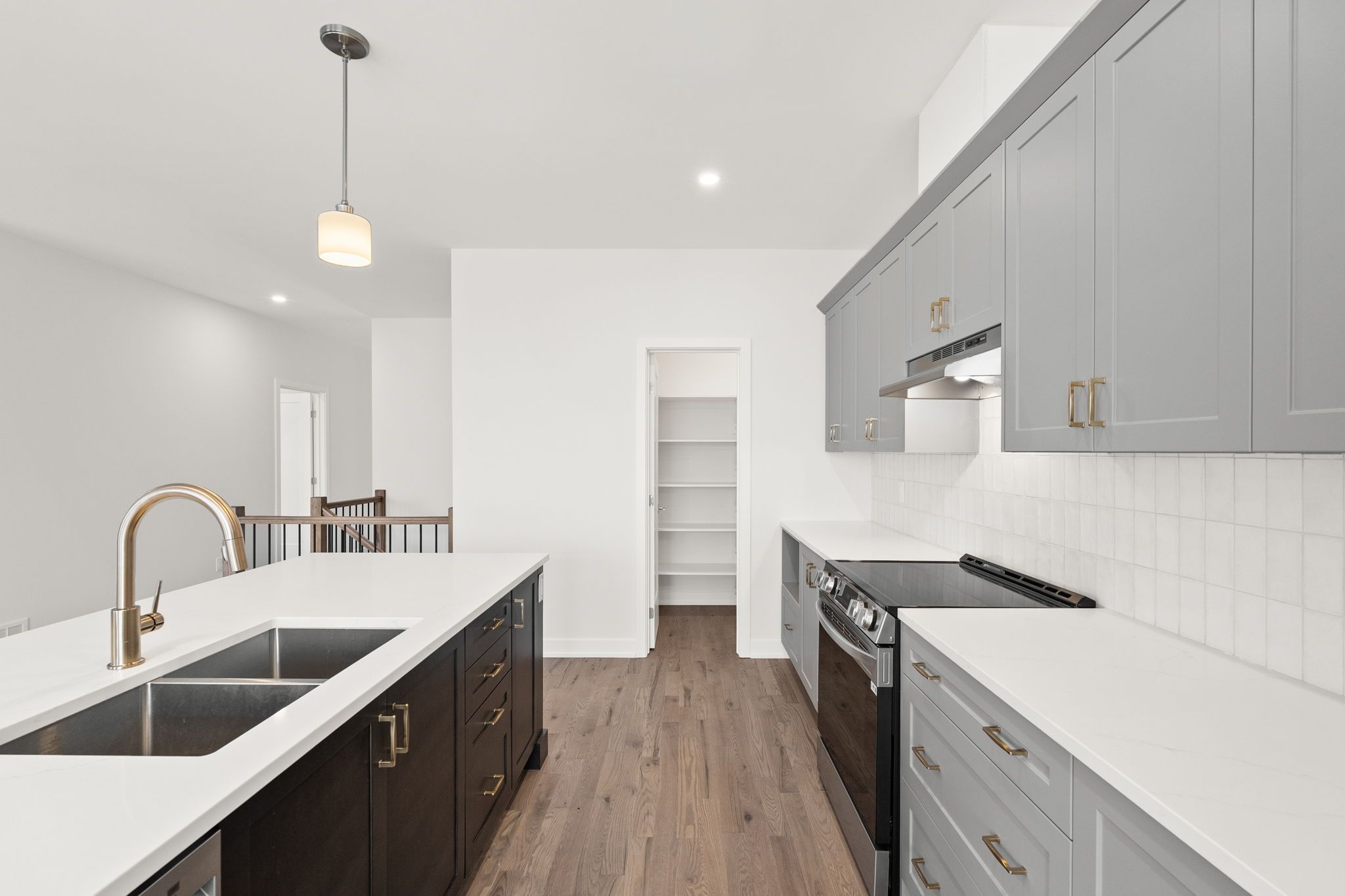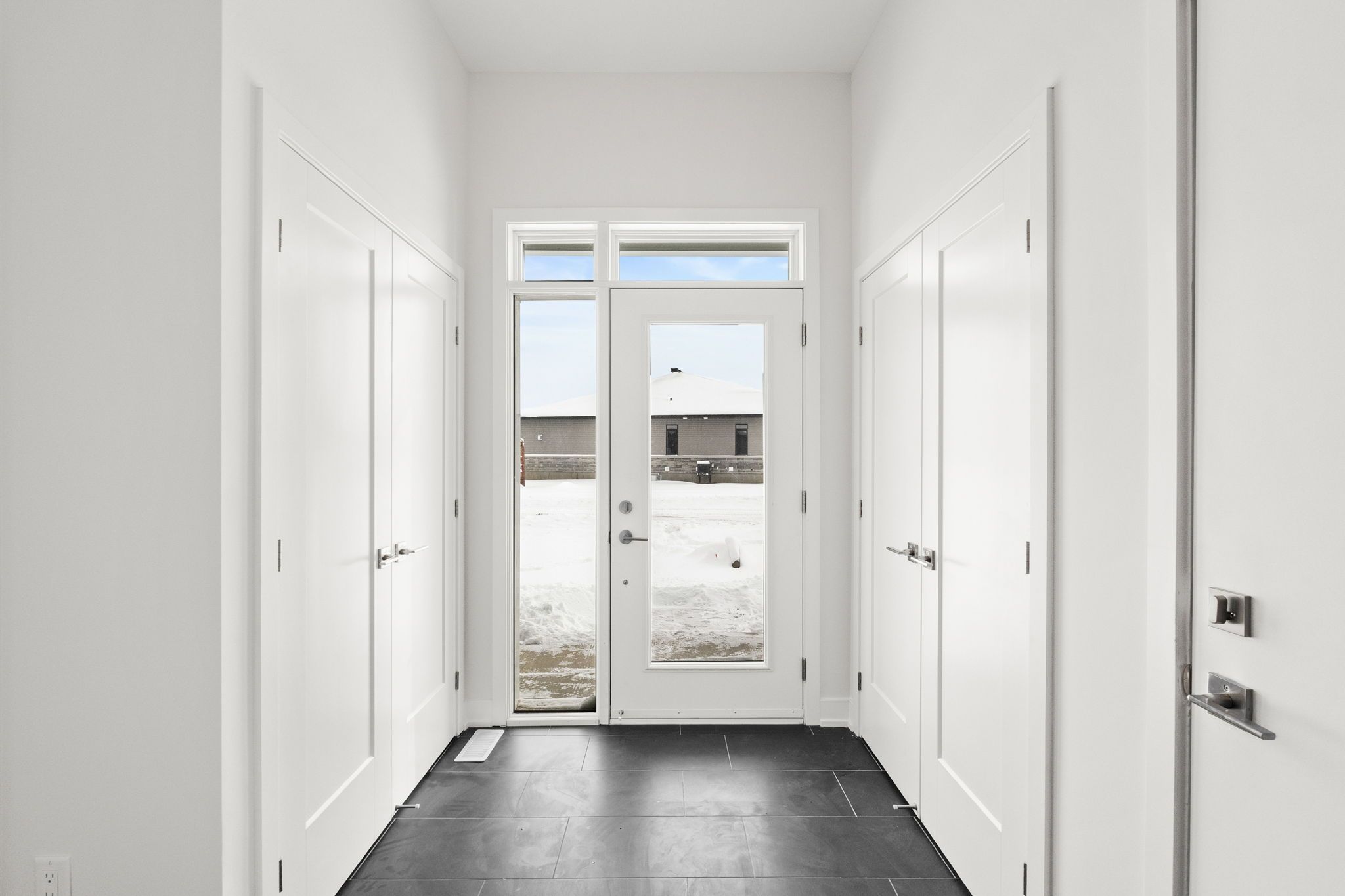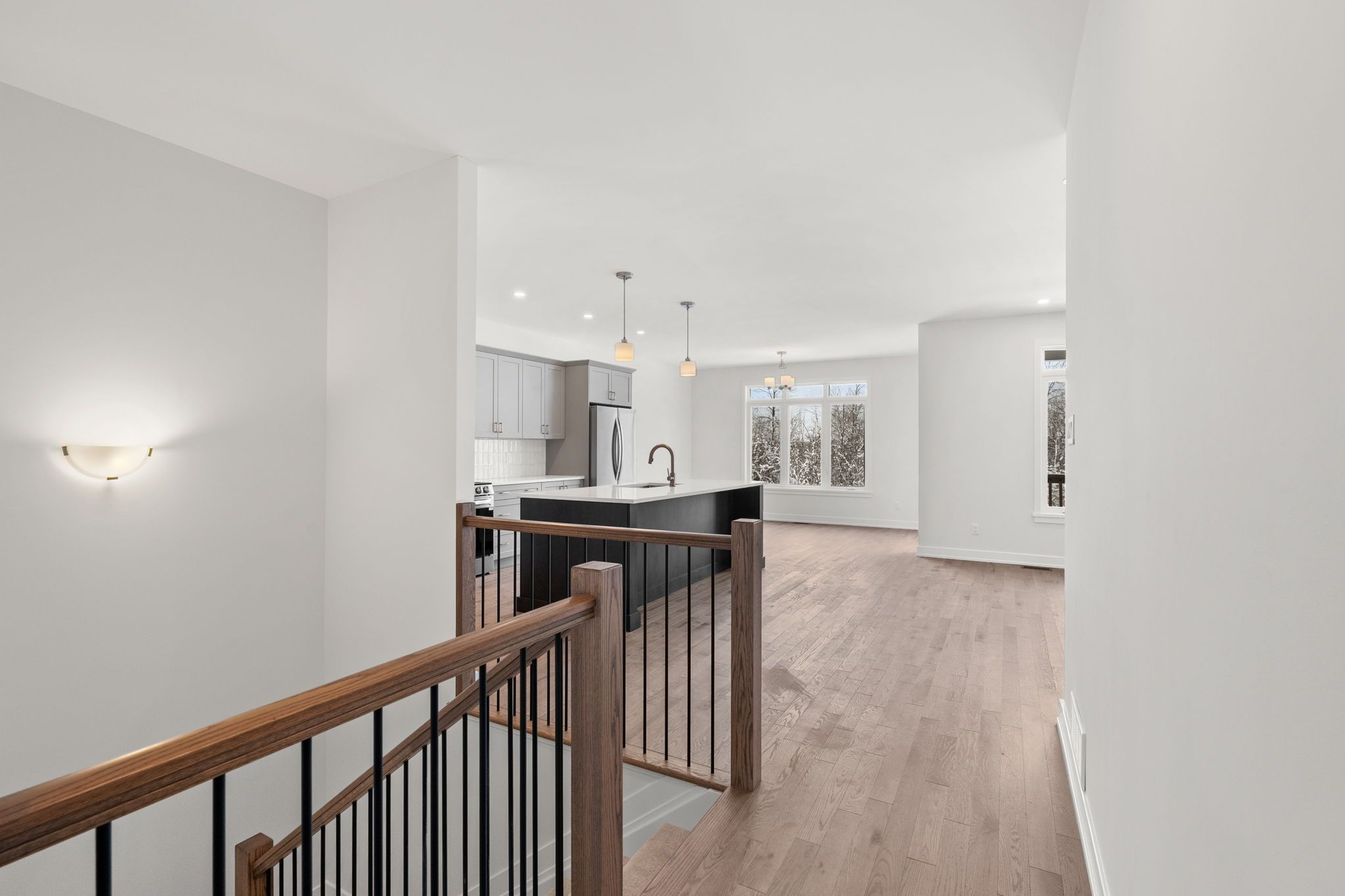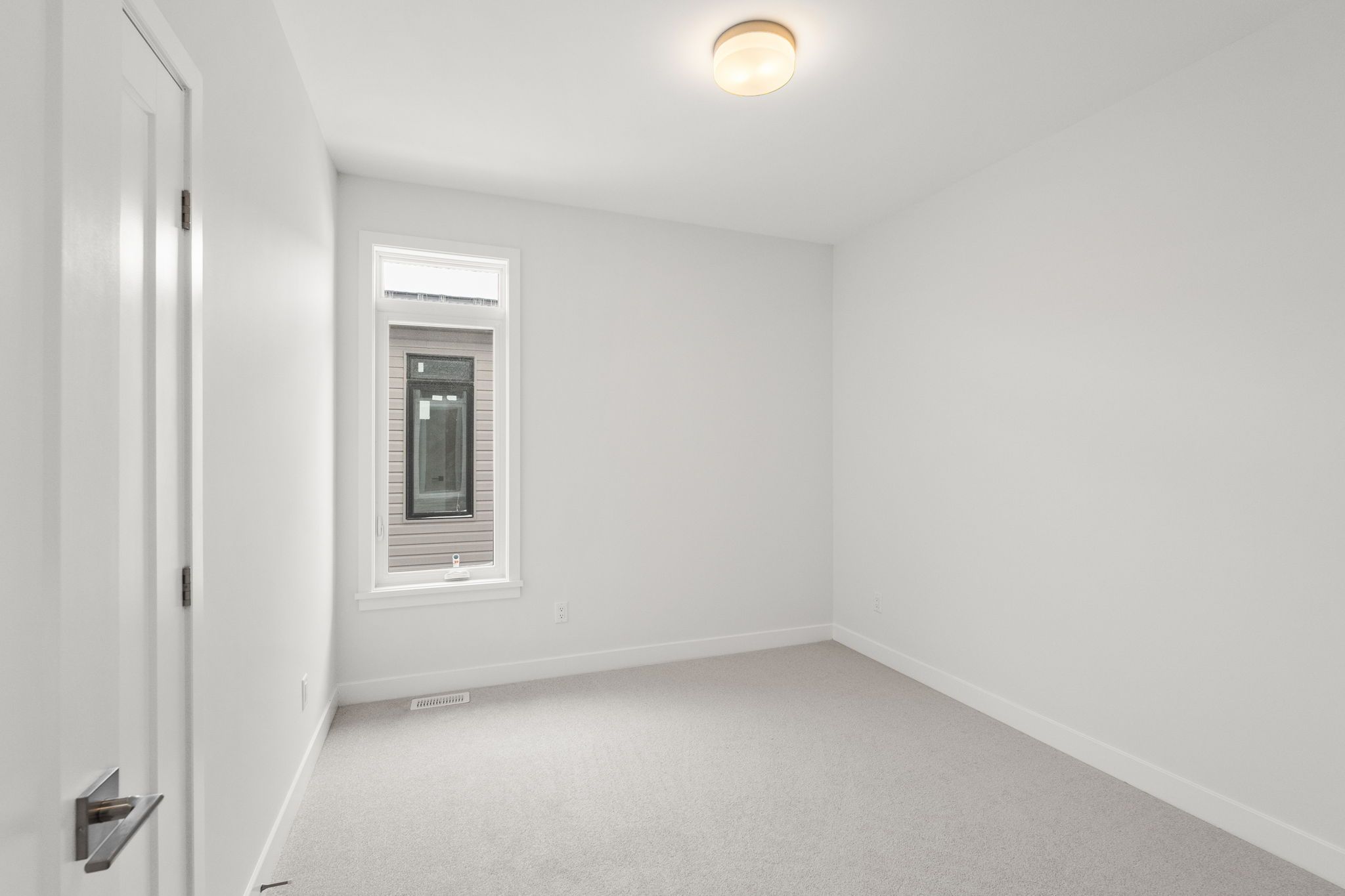 Located in brockville's stirling meadows, this newly completed semi-detached bungalow combines modern design with convenient access to highway 401 and nearby shopping, dining, and recreation. The leeds walkout model by mackie homes offers approximately 1,509 square feet of thoughtfully designed living space, featuring two bedrooms, two bathrooms, and a walkout elevation that enhances the home's appeal. The main level boasts a front-facing office nook and an open-concept living area filled with natural light from large windows and transoms. The kitchen showcases two-toned cabinetry, quartz countertops, a tile backsplash, a pantry, and a spacious centre island with an undermount sink, flowing seamlessly into the living room with fireplace and the dining area with access to the covered porch. The primary bedroom features a walk-in closet and a three-piece ensuite. The lower level extends the living space with a finished recreation room, complete with a fireplace and patio door, providing valuable additional space and direct access to the outdoors.
