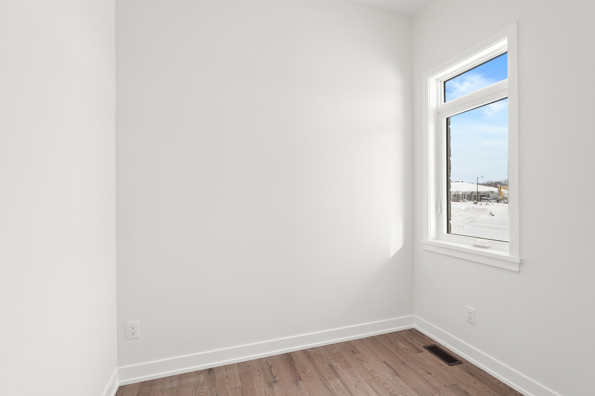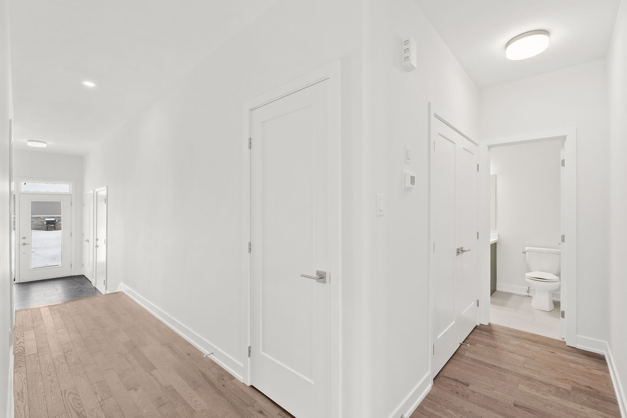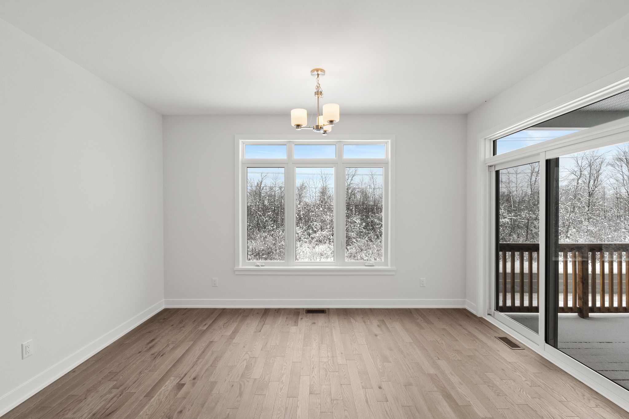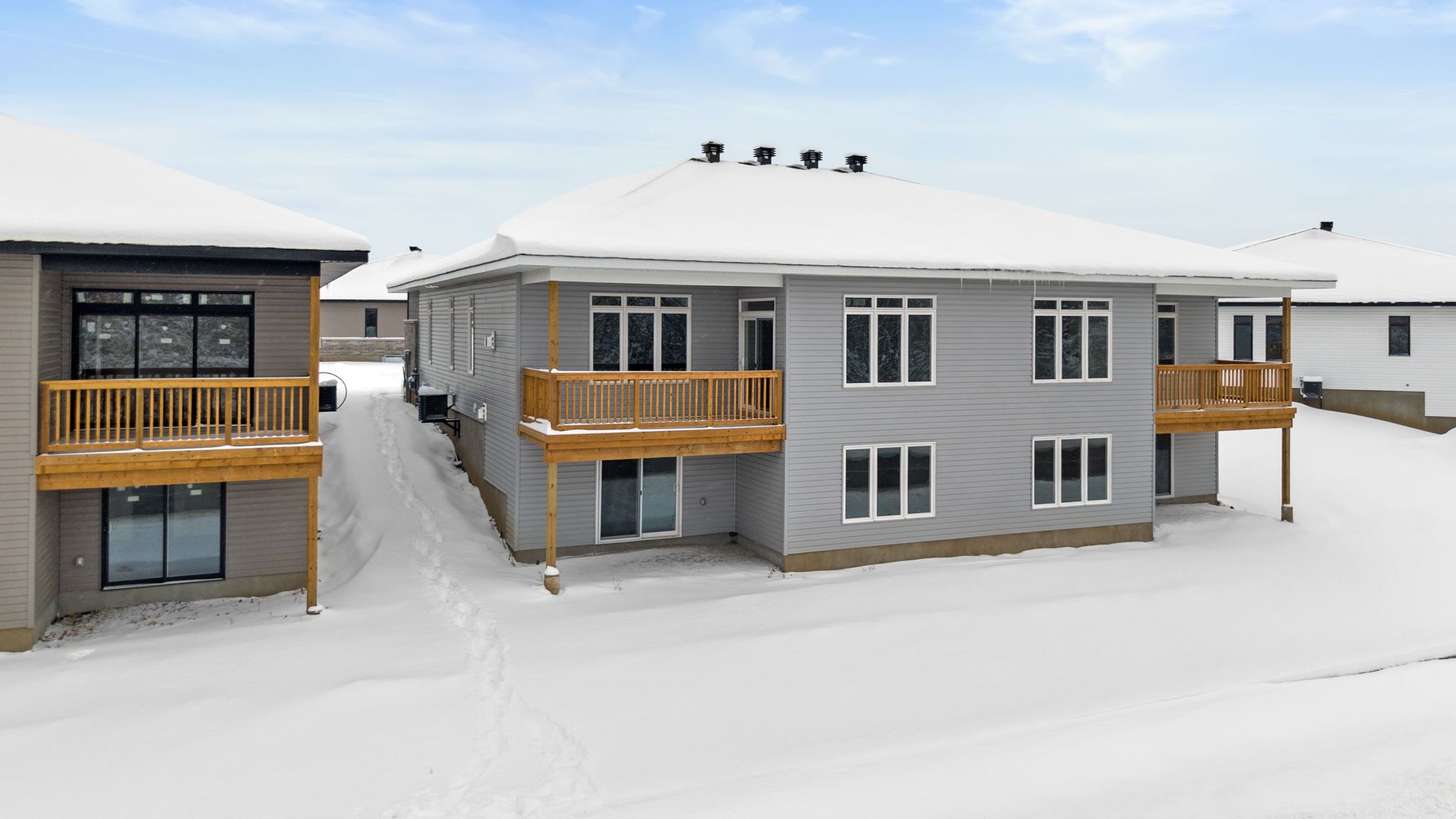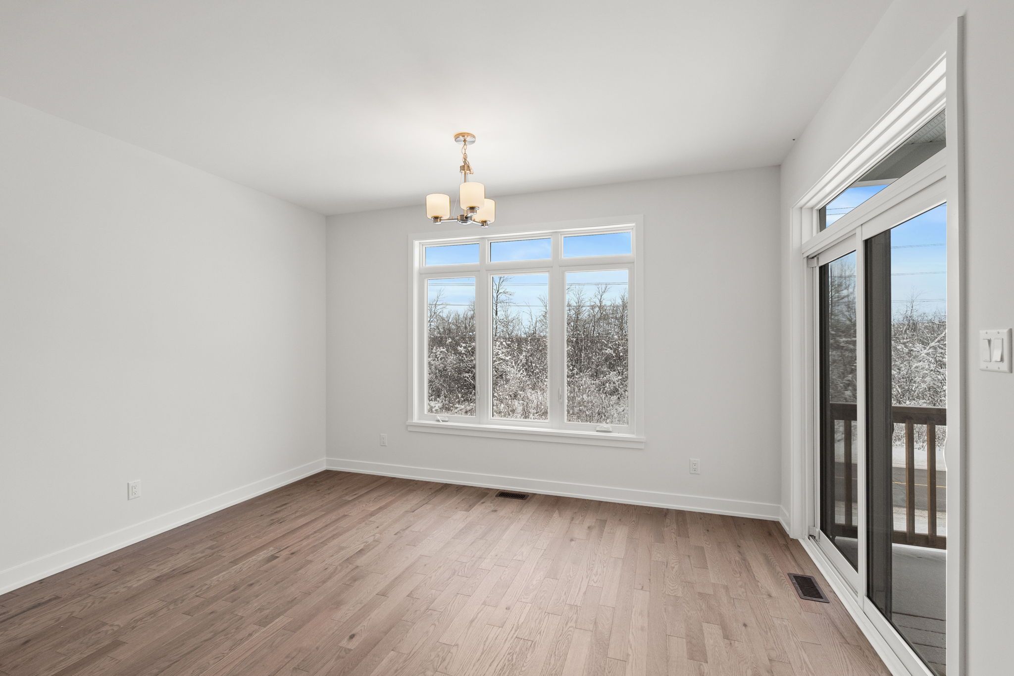 Located in brockville's stirling meadows, this newly completed semi-detached bungalow combines modern design with convenient access to highway 401 and nearby shopping, dining, and recreation. The leeds walkout model by mackie homes offers approximately 1,509 square feet of thoughtfully designed living space, featuring two bedrooms, two bathrooms, and a walkout elevation that enhances the home's appeal. The main level boasts a front-facing office nook and an open-concept living area filled with natural light from large windows and transoms. The kitchen showcases two-toned cabinetry, quartz countertops, a tile backsplash, a pantry, and a spacious centre island with an undermount sink, flowing seamlessly into the living room with fireplace and the dining area with access to the covered porch. The primary bedroom features a walk-in closet and a three-piece ensuite. The lower level extends the living space with a finished recreation room, complete with a fireplace and patio door, providing valuable additional space and direct access to the outdoors.
