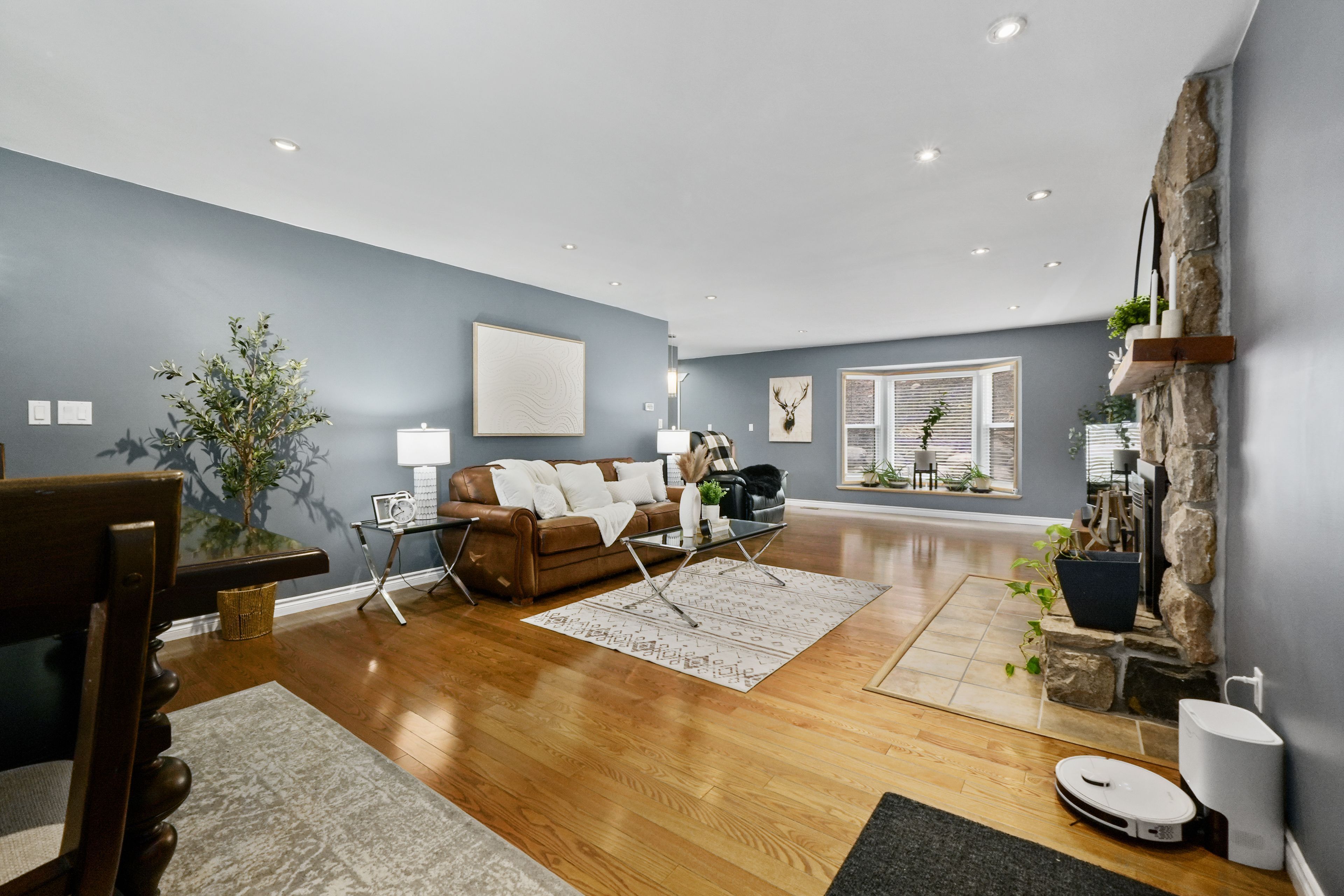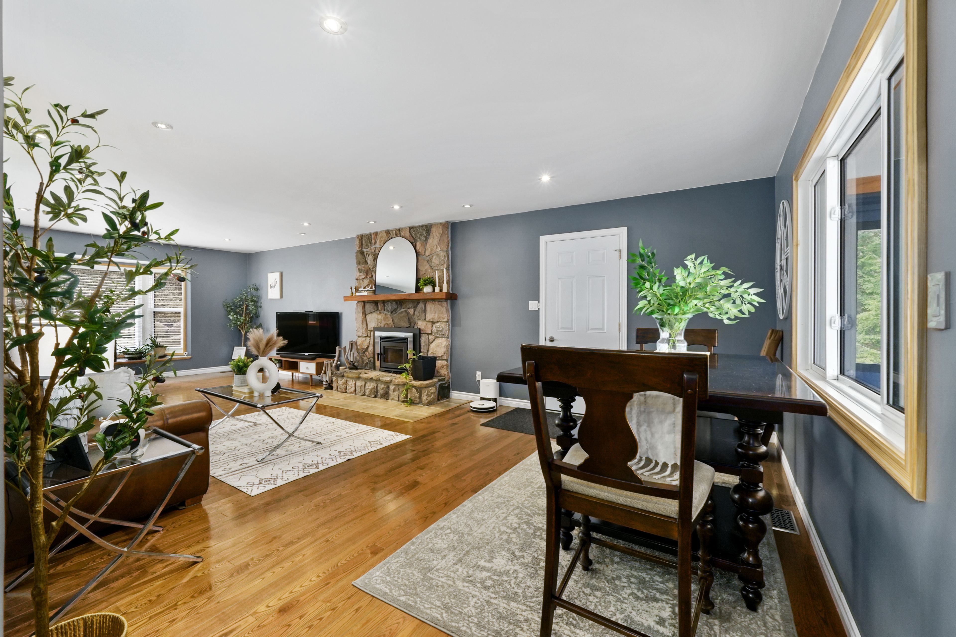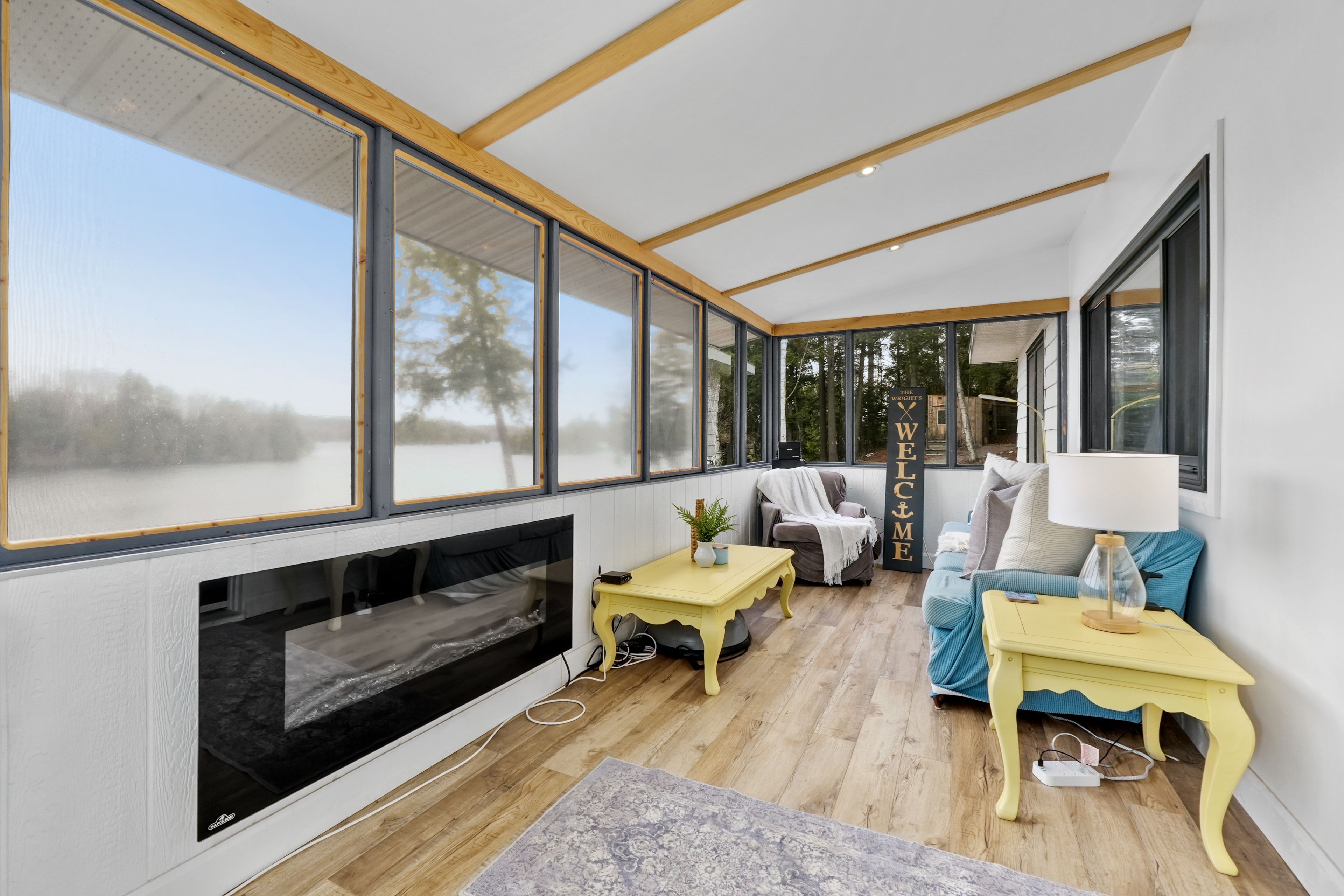 • Spacious sunroom with electric fireplace offering year-round comfort.