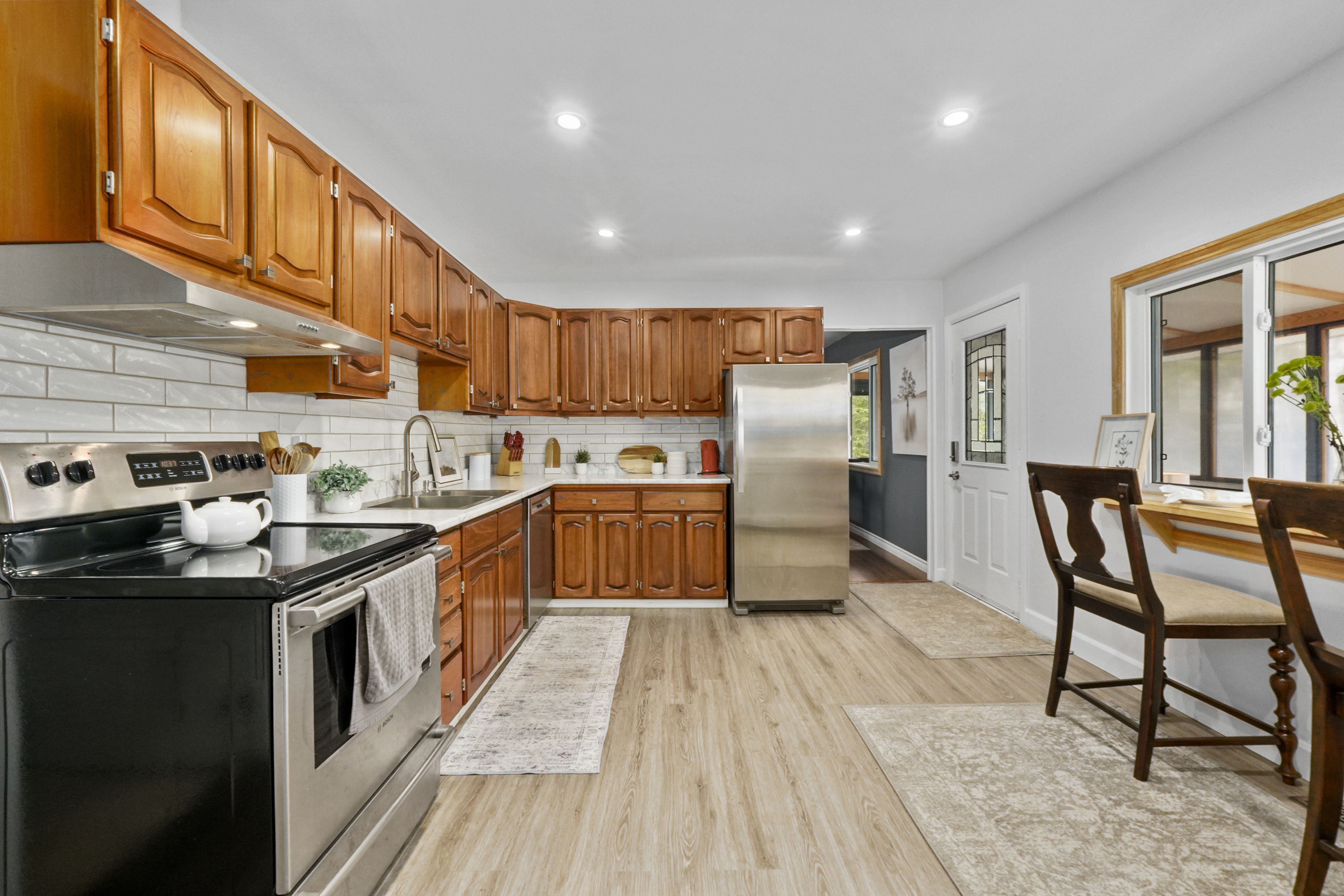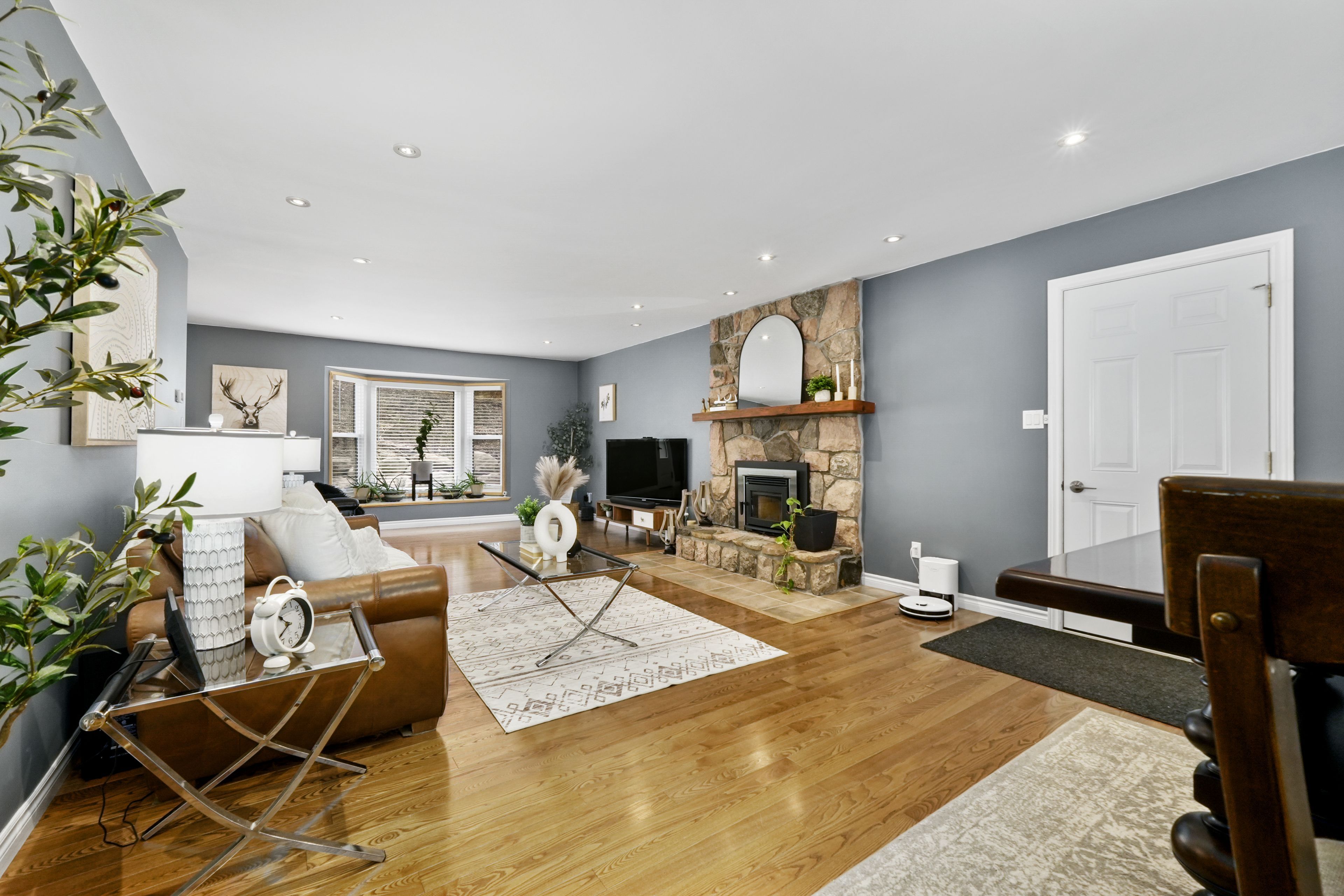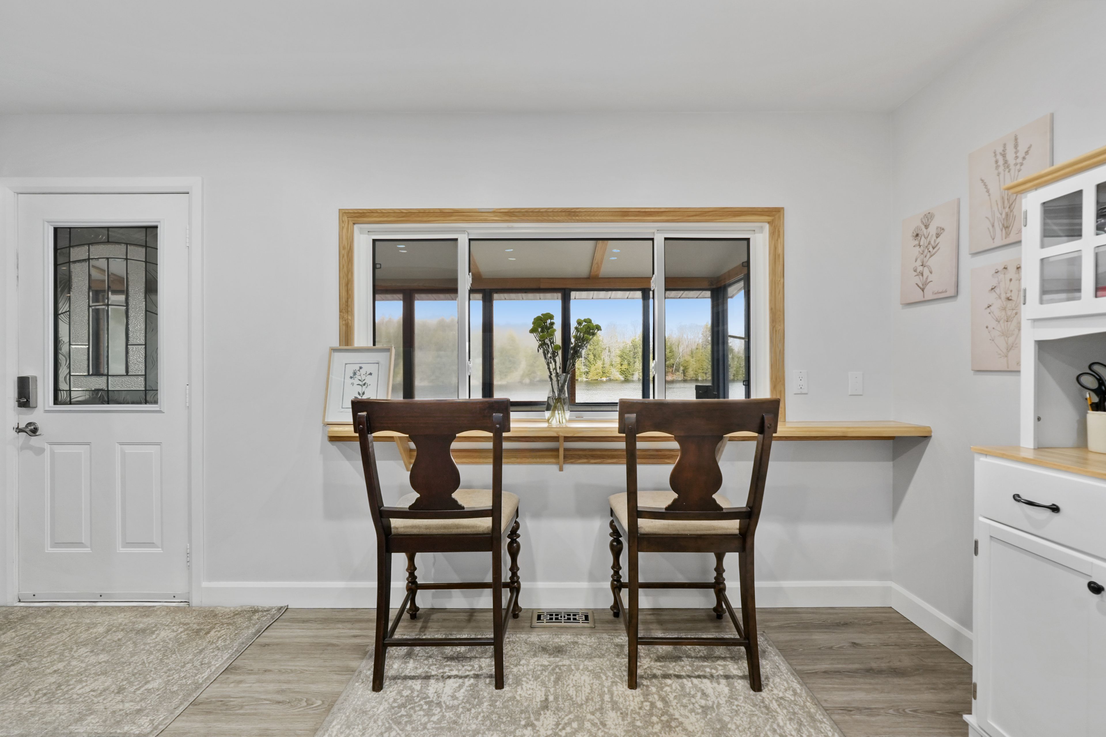• Spacious sunroom with electric fireplace offering year-round comfort.