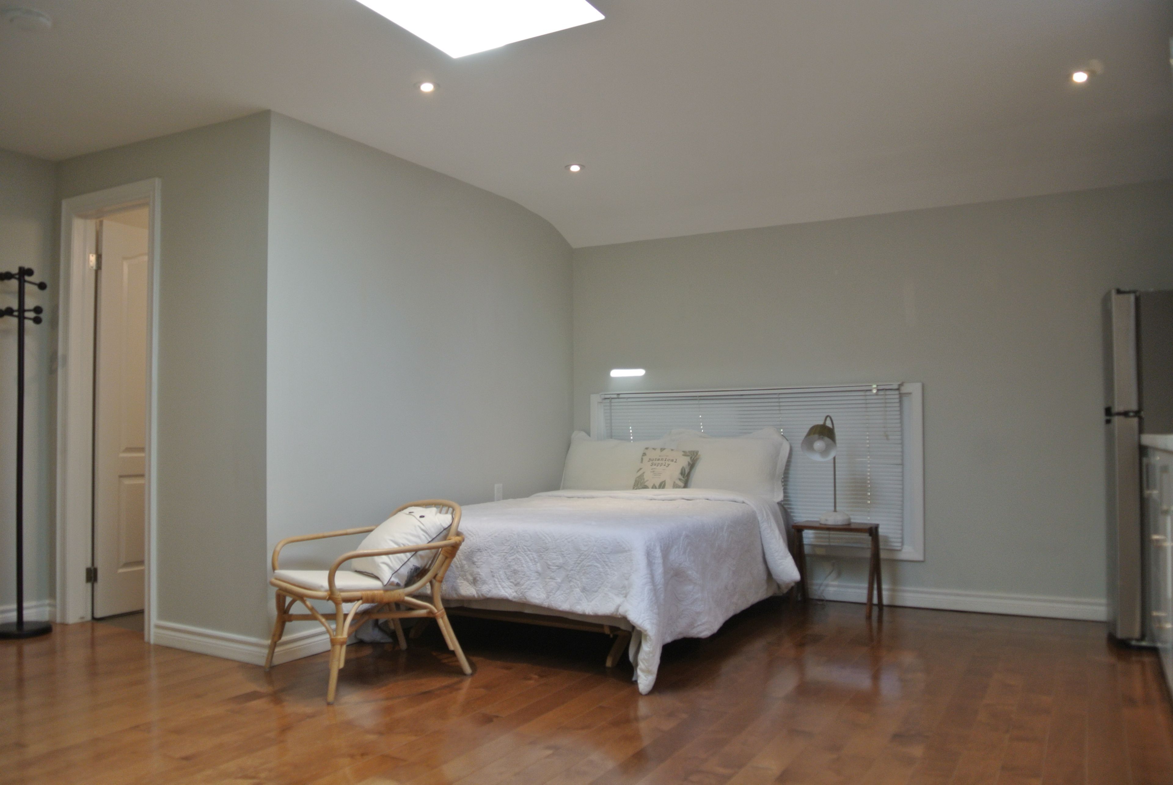• Skylight provides natural light, creating a warm atmosphere.