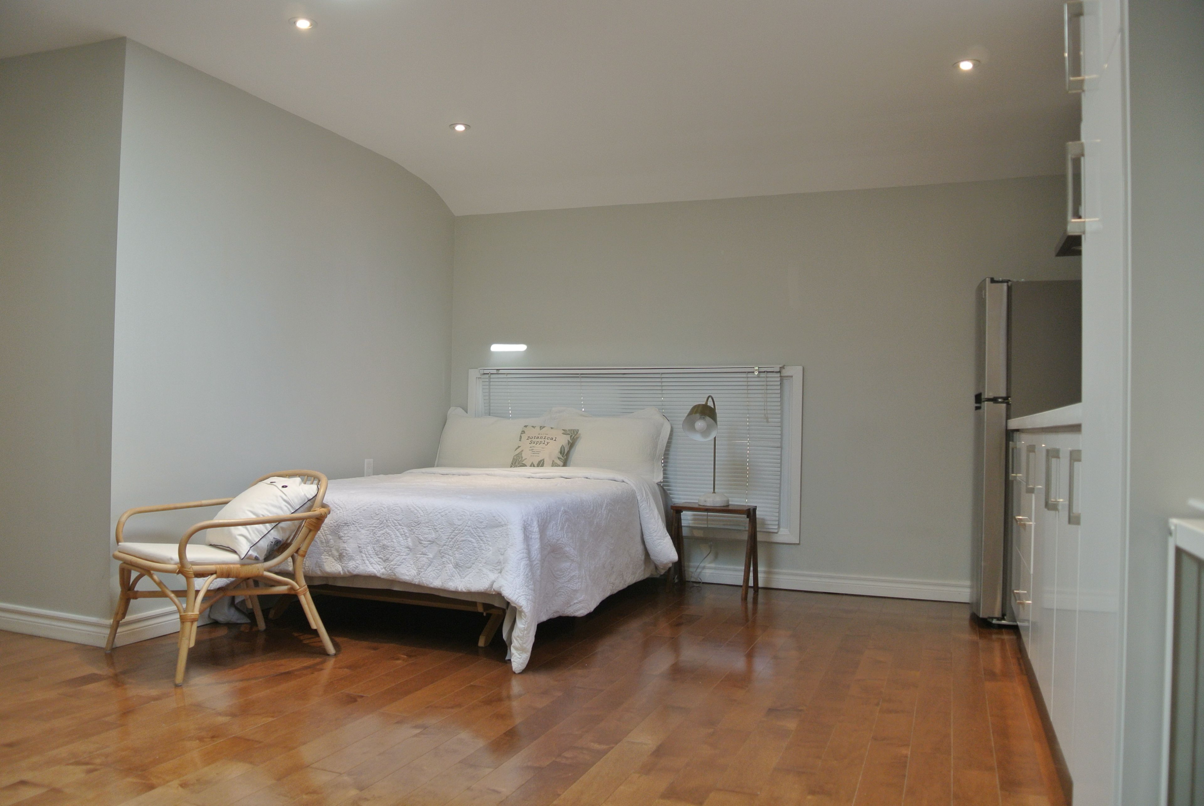 • Bright bachelor unit with an open concept layout and hardwood floors.