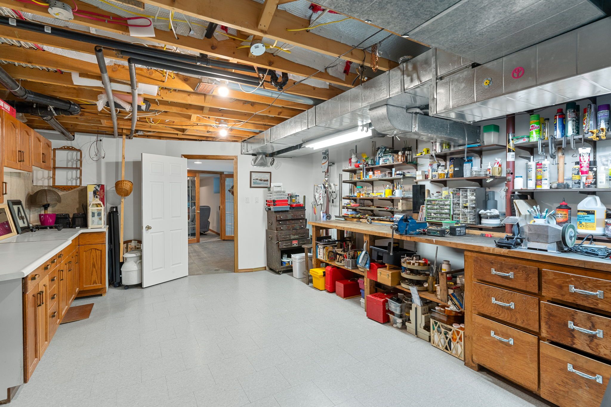• Versatile lower level with media room and large workshop space.