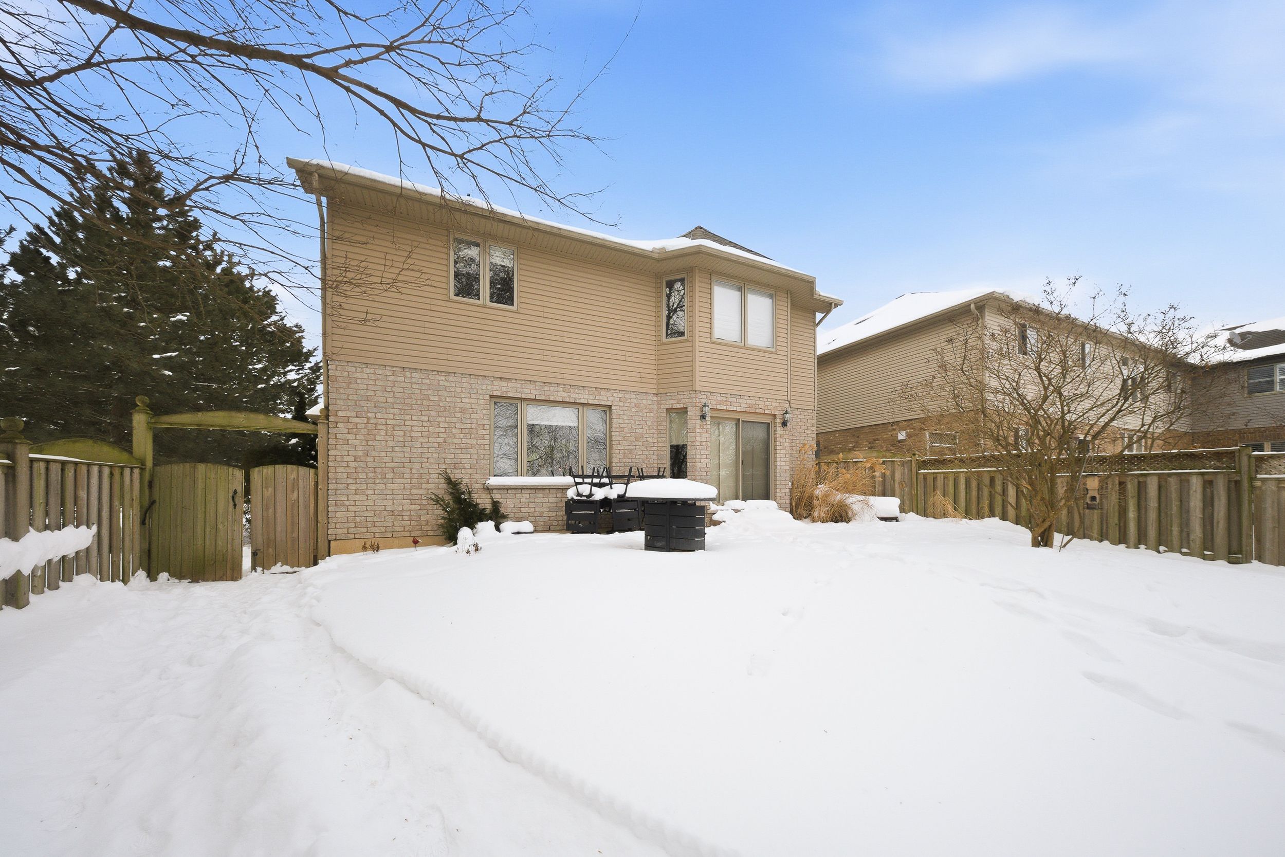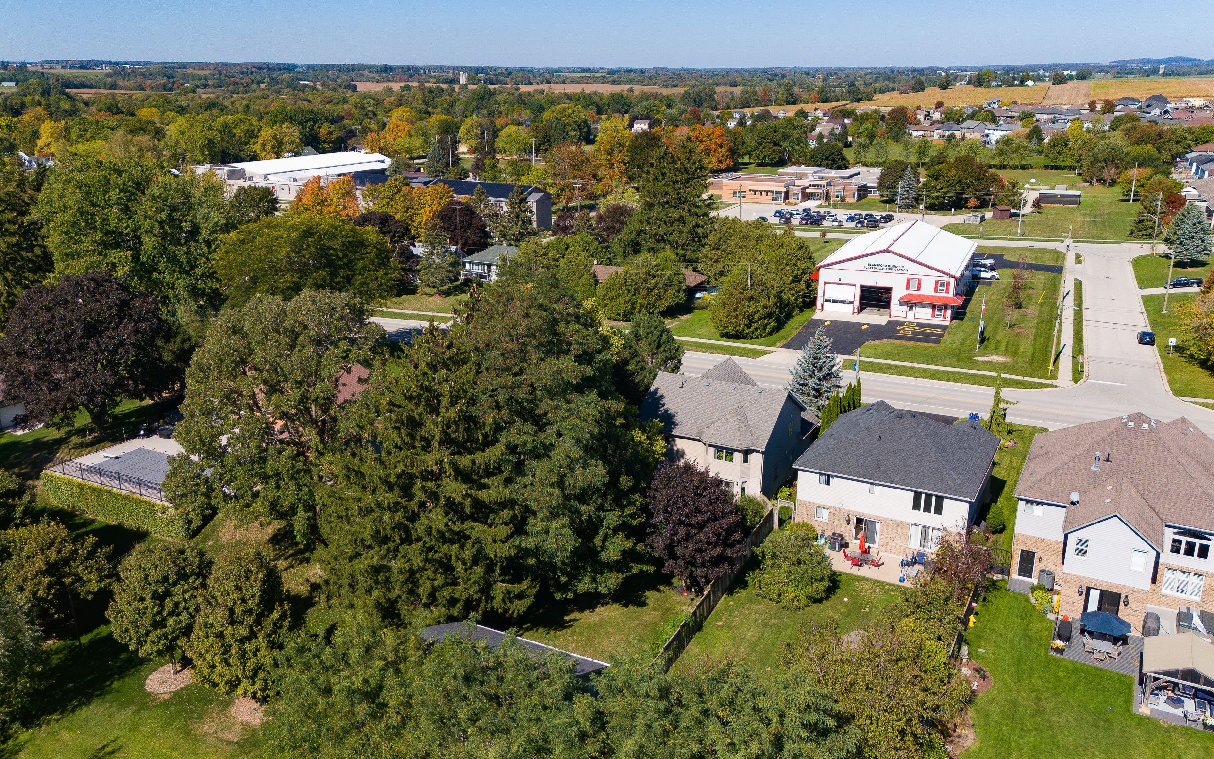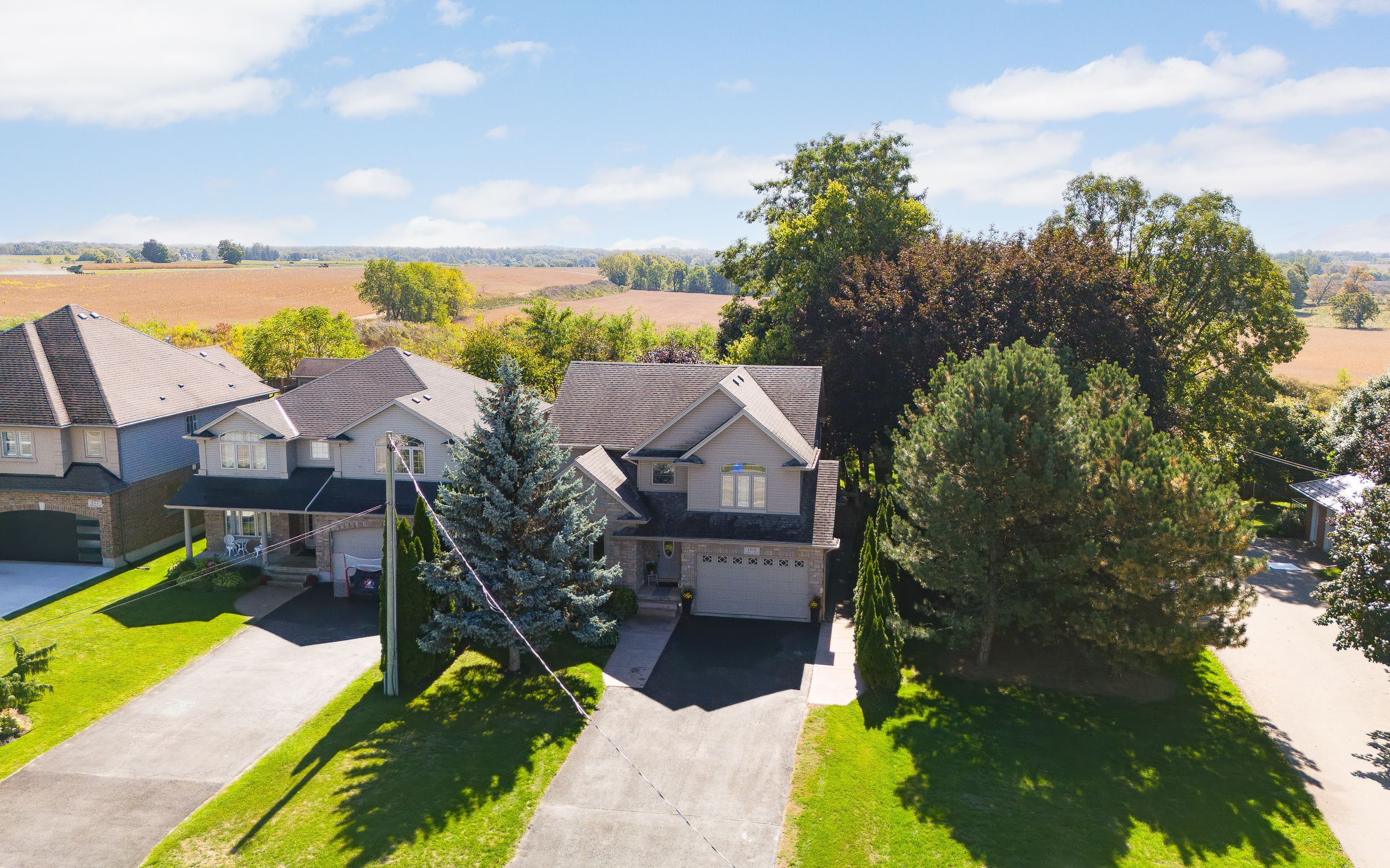 109 albert st e, plattsville offers a thoughtfully designed family home with 3+2 bedrooms, 3. 5 bathrooms, and a fully detached, heated workshop - ideal for those who value both space and functionality. The main floor is bright and well-proportioned, featuring cathedral ceilings, an oversized window in the living room, a formal dining area, and a convenient powder room. The rear of the home opens into an open-concept family room with gas fireplace and expansive windows, seamlessly connected to the eat-in kitchen with ample cabinetry, stainless steel appliances including an induction stove/convection oven, a breakfast bar with seating and storage, and sliding glass doors leading to the private backyard and patio. The second level includes three generously sized bedrooms, including a sun-filled primary suite with a 5-piece ensuite featuring a jacuzzi tub, double vanity, glass shower, and a large walk-in closet. This floor also offers a laundry room with storage and a 4-piece bathroom with an extra-deep closet. The finished basement provides two additional bedrooms, a large recreation room, a 3-piece bathroom, and cold cellar - well suited for extended family, guests, or flexible living space. The backyard is private and well landscaped with mature trees, patio with reinforced pad, gas bbq hookup, electrical rough-in for a hot tub, double-wide gate access, and a 20x40 custom-built shed/workshop complete with gas heat, electrical panel, 240-volt plug, cable, and garage door. Conveniently located close to schools, parks, the arena, and everyday amenities. A well-appointed home offering space, privacy, and versatility.