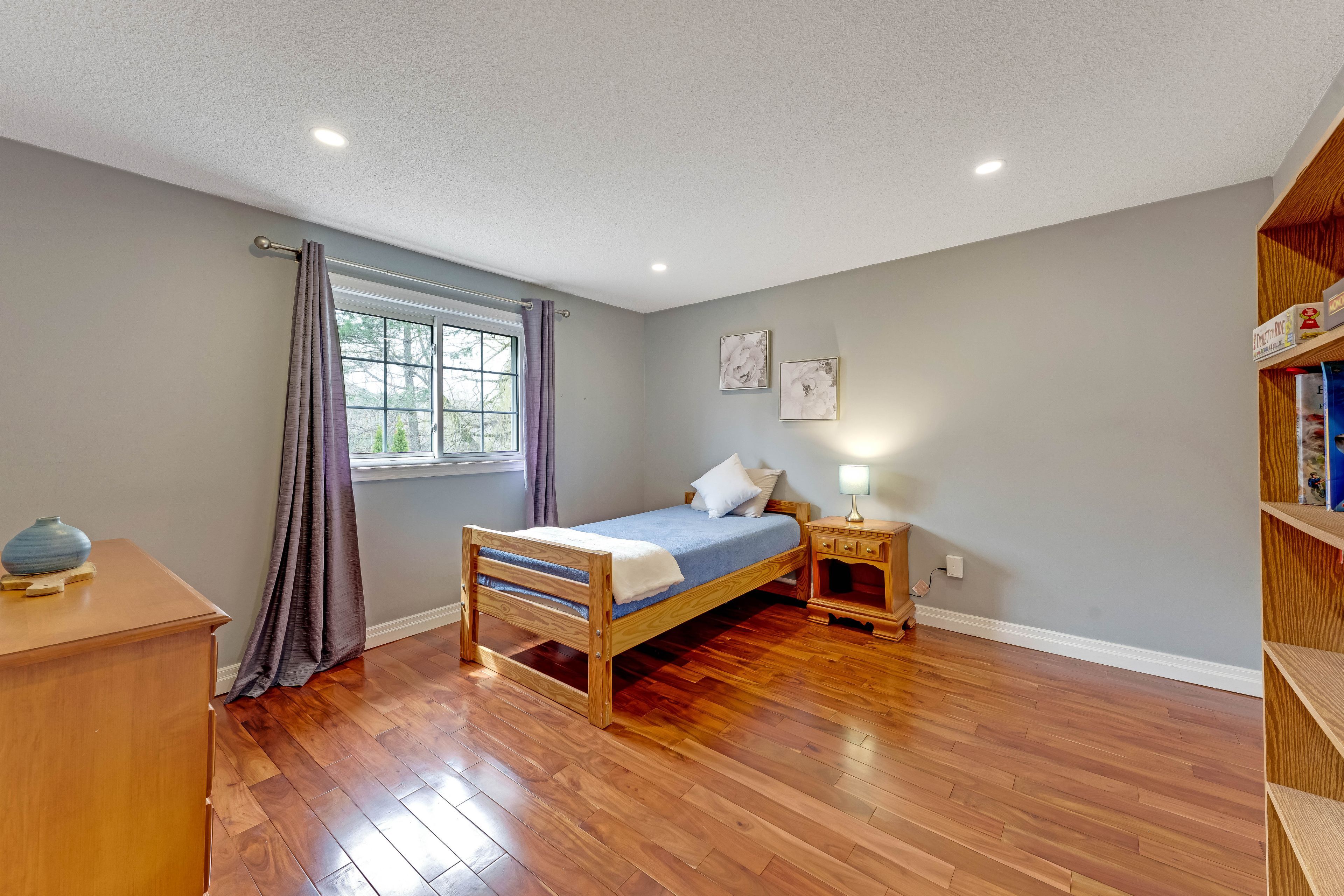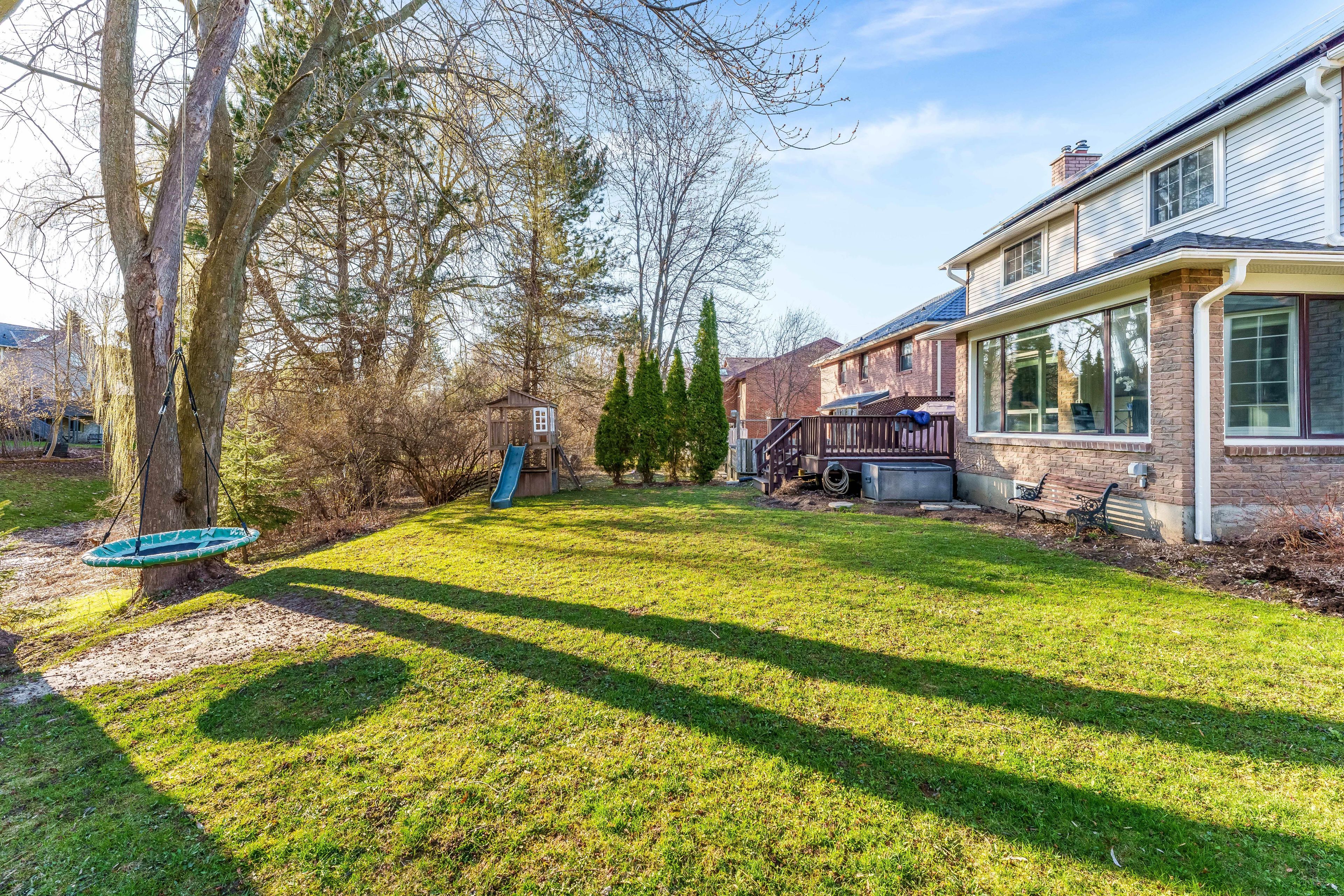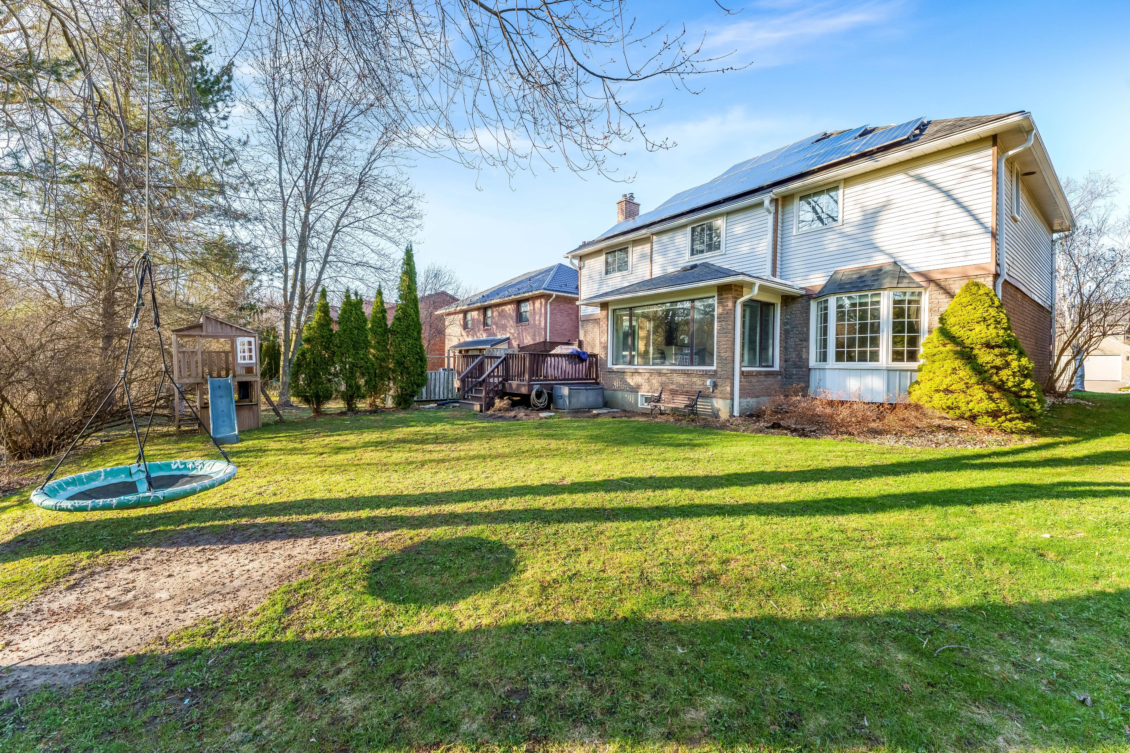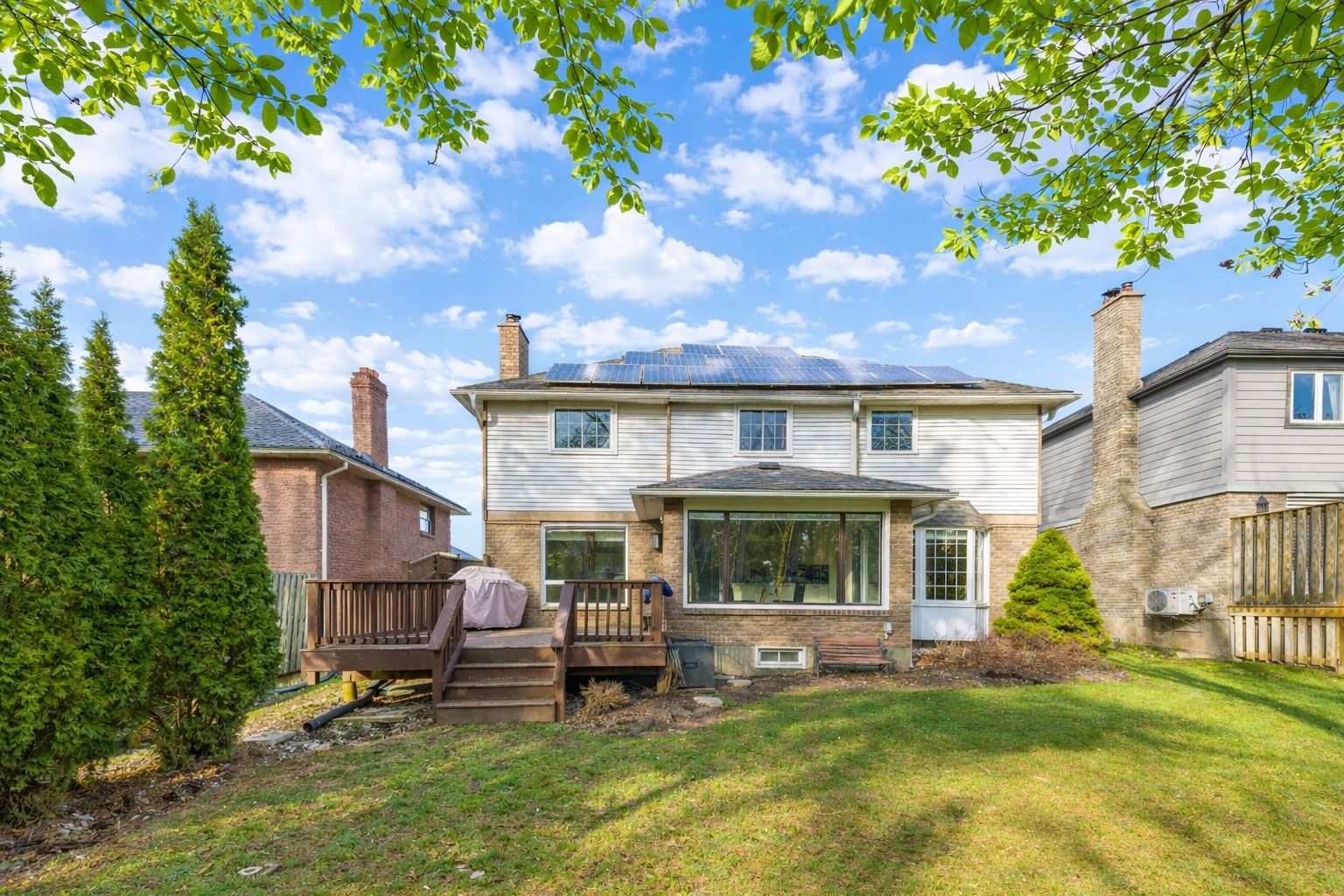 Welcome to 109 ashberry place, waterloo: an executive home in the sought-after community of beechwood west. Nestled on a quiet court, this well-maintained 5-bedroom, 4-bathroom home offers the perfect setting for growing families. Impressive curb appeal begins with 6-car parking (2 garage, 4 driveway), spacious unilock brick driveway and premium eavestrough "leaf guard" protection. Step inside to a thoughtfully designed layout with rich hardwood flooring throughout. The bright living room features a wall of windows creating a warm, inviting atmosphere. The updated eat-in kitchen comes fully equipped with appliances, quality finishes and breakfast bar seating. Adjacent is the formal dining room, ideal for family dinners and entertaining. The cozy main floor family room with gas fireplace is perfect for movie nights, game nights or relaxing evenings. A convenient laundry room with garage access completes the main level. Upstairs offers 4 generously sized bedrooms, including a spacious primary retreat with walk-in closet and private ensuite bath. The additional 3 bedrooms are served by updated 3pc bathrooms. The finished lower level adds a large rec room, extra bedroom and 3pc bathroom, ideal for multi-generational living. Step outside through sliding doors to your private backyard oasis. A large deck, mature trees and expansive green space create the perfect retreat for summer fun or for children or pets to enjoy. This move-in ready home has been updated with a 50-year shingles roof, r-60 attic insulation, water softener (2025), tankless water heater (2023), furnace and a/c (2023), garage door opener (2022), and dishwasher (2019). A valuable bonus is the solar panel system, offering efficiency and potential income. Beechwood west ownership includes pool with lifeguards, free swimming lessons, tennis courts, basketball courts, skating rink and a vibrant family-friendly atmosphere. This is more than a home, it's a lifestyle. Book your private showing today!