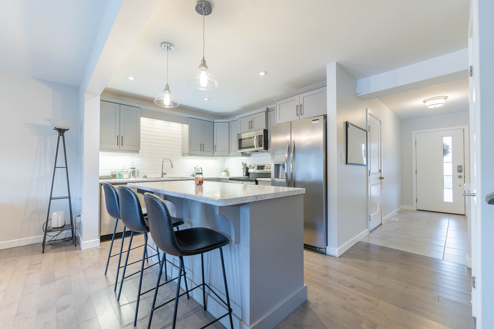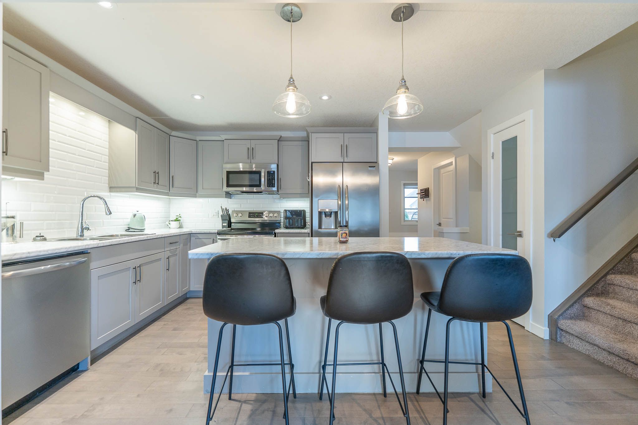 Welcome to this terrific, like-new townhome in the highly sought-after westfield school district! Designed with modern living in mind, this home offers an open-concept main floor filled with natural light and a functional, family-friendly layout. The spacious kitchen features a large island and seamlessly connects to the living and dining areas-perfect for everyday living or entertaining. From the living space, step through patio doors to a deck overlooking a fully fenced yard-ideal for children to play or pets to roam safely. The main level also includes a generous foyer and a convenient 2-piece bathroom. Upstairs, you'll find new flooring installed in 2024, enhancing the fresh, move-in-ready feel. The primary suite offers large window, a walk-in closet, and a private 3-piece ensuite. Two additional bedrooms and a 4-piece main bathroom complete the upper level. The lower level provides a blank canvas, ready for your personal touch and future finishing. Located in a wonderful, family-oriented neighborhood, this home is just steps from two beautiful parks and within walking distance of a top-rated public school. A perfect combination of comfort, convenience, and community-this is one you won't want to miss!