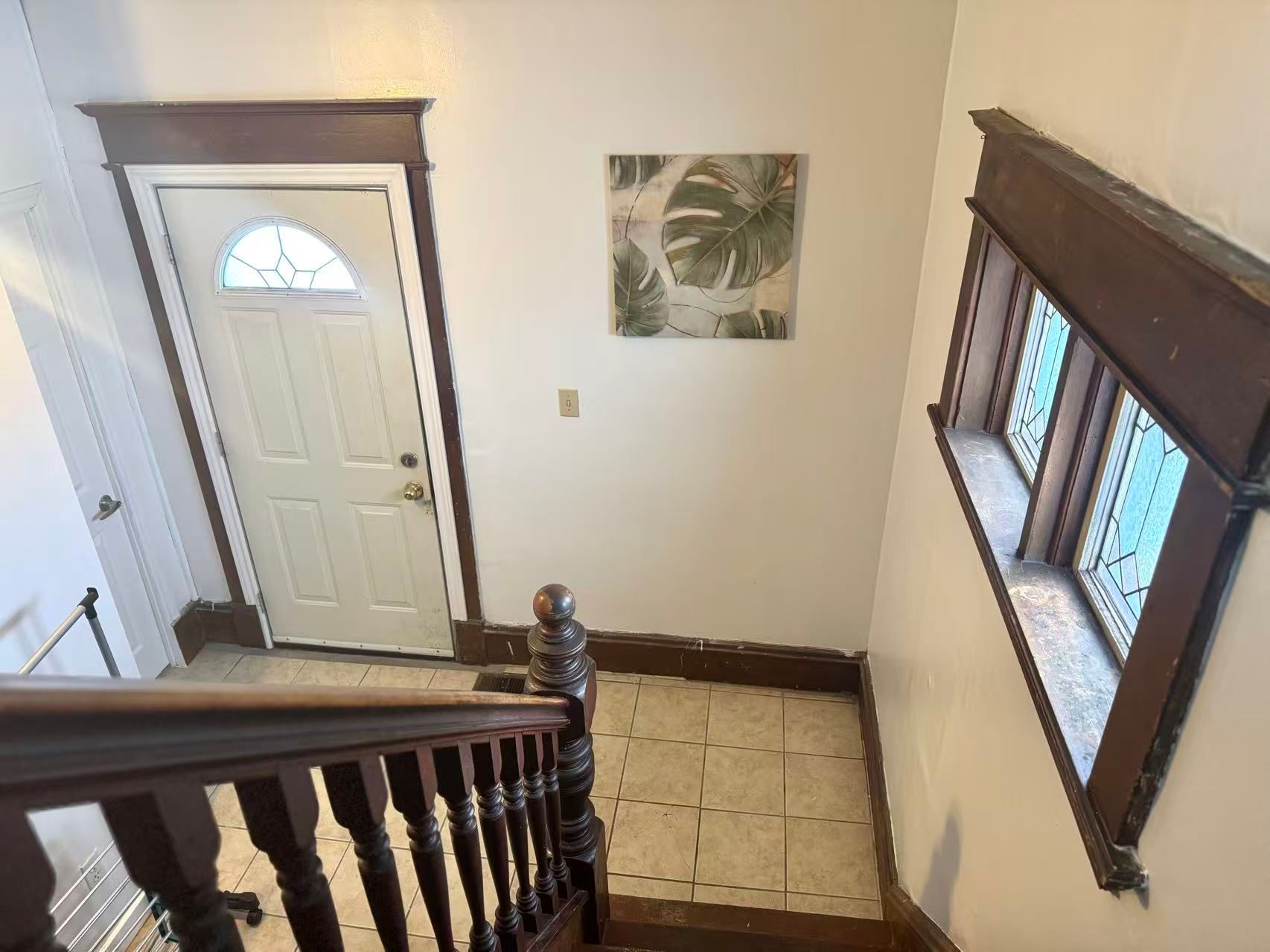 • Freshly painted with high ceilings and a classic wood staircase.