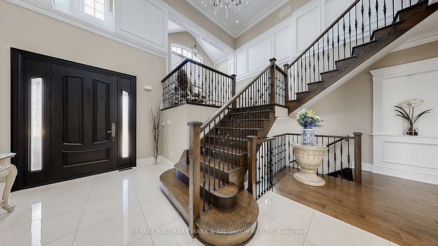 A luxurious custom estate in prestigious upper west thornhill. This architectural masterpiece built by regal crest, offering over 6500 sf of refined living space where timeless elegance meets modern luxury. Every detail has been thoughtfully curated with premium finishes throughout. A breathtaking 20-ft soaring foyer sets the tone, complemented by a 14-ft living room, stunning coffered ceilings, crown mouldings, wainscoting, rich hardwood floors, grand oak staircase with modern iron pickets. Chef's dream gourmet kitchen is designed for both entertaining and everyday living, featuring a large centre island, granite countertops, top-of-the-line appliances with/ walk out to your private covered backyard oasis complete with a built-in bbq patio, pool tub,hot tub, and beautifully designed outdoor space perfect for year-round enjoyment. All bedrooms are very bright & specious, the primary bedroom offers a spa-inspired ensuite and spacious walk-in closet. Finished basement is an entertainer's dream with a full kitchen, pool table area, hot tub, sauna, home gym, and 200-amp electrical panel and much more... Everything within reach, steps to parks and one of the largest walking trail systems in the city, shopping, transit,go train, major highways, golf courses, hospital, medical centres, zoned for top-rated schools including st. Theresa catholic hs, st. Charles garnier catholic es,viola desmond p. S, alexander mackenzie hs (ib program). This property perfectly blends luxury & comfort! A must see!