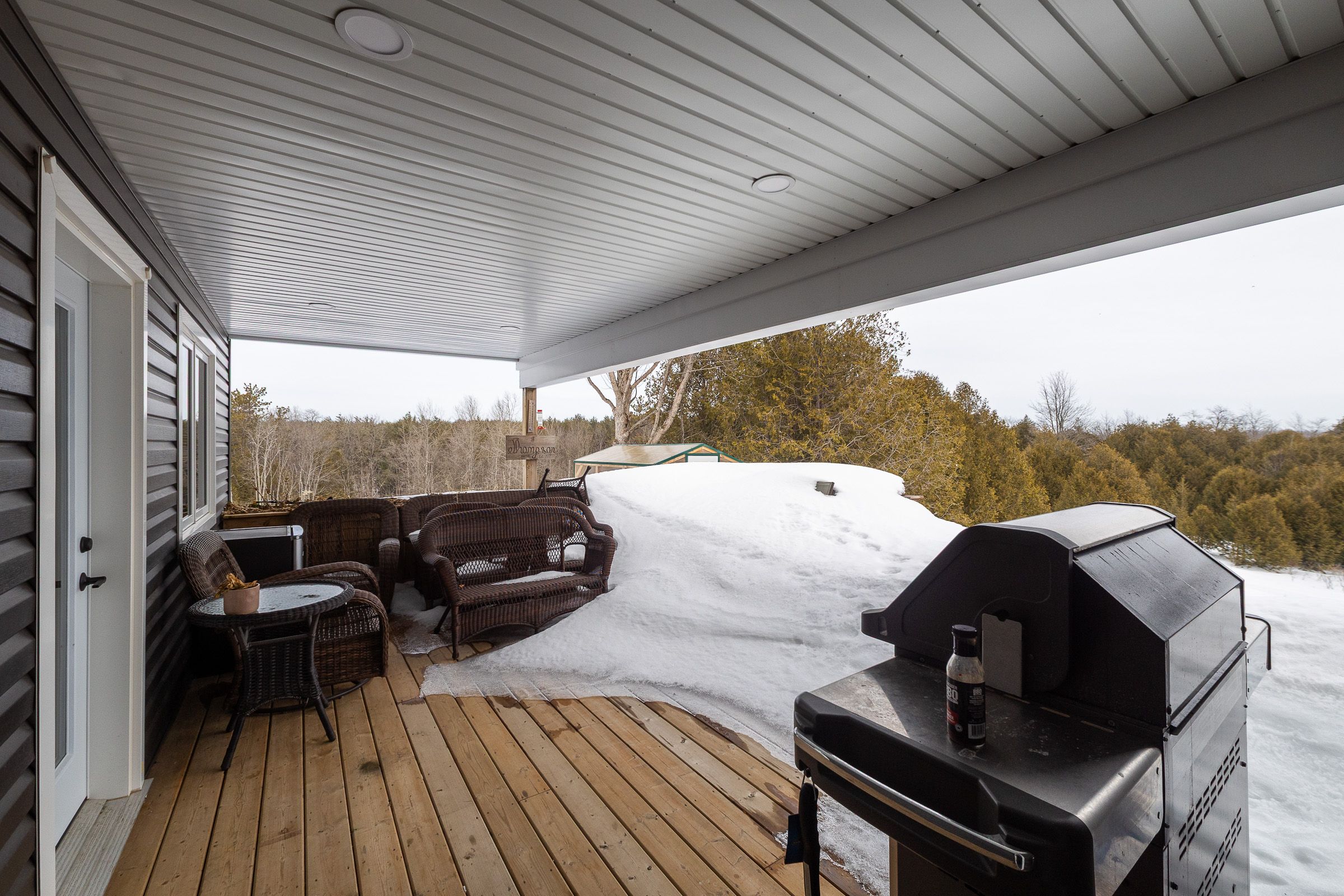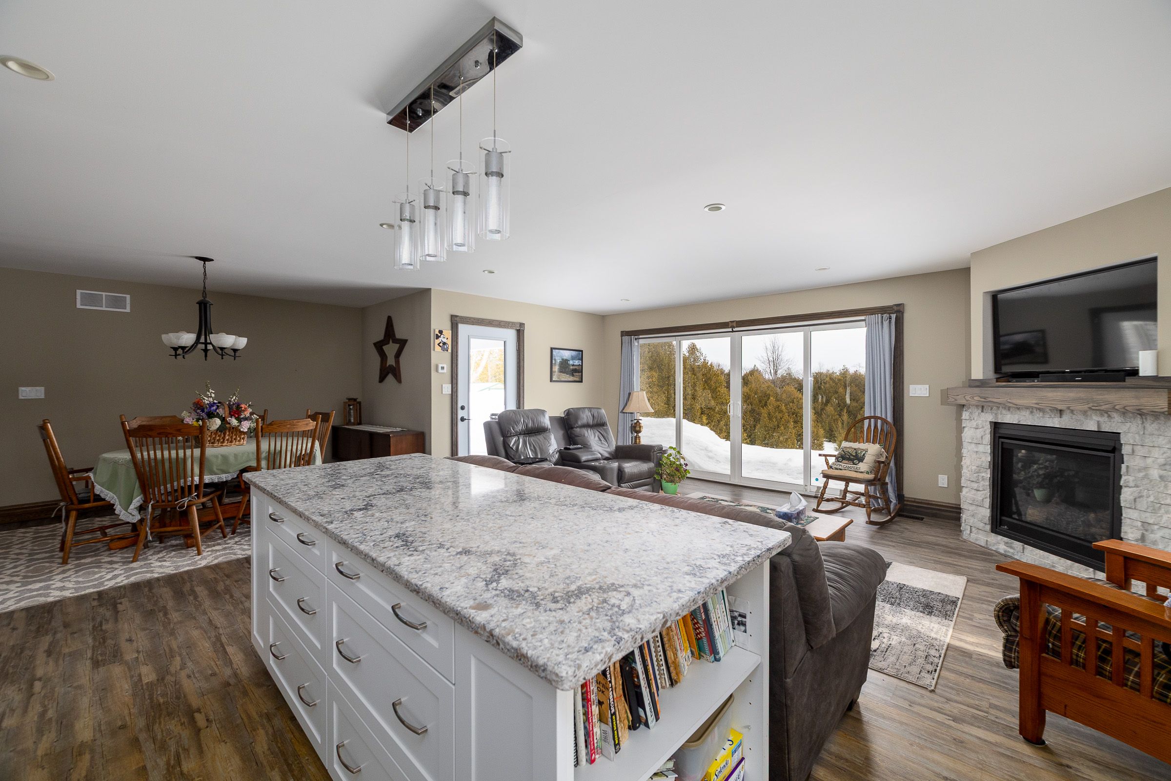 1440 square foot bungalow on 2. 1 acres (two separate lots) in glenelg estates. Overlooking a valley and lake, the home was designed for accessibility and to take in great country views. Built in 2022 with open concept living areas including dining area, kitchen with oversized island, living room with propane fireplace and walkout to the partially covered deck. Main floor bedroom features a spacious ensuite and walk-in closet. Laundry room, front foyer, 2 piece bath and access to the garage complete the main level. The lower level is finished with family room, 3 piece bathroom and 2 additional bedrooms. Extra features include icf foundation, accessible doors, back up generator, on demand hot water and so much more. Attached double garage with propane heater and a detached 16x32 insulated garage, steel lined with 2 roll up doors. The home sits on a 1 acre lot with the adjoining, separate 1. 1 acre lot included. This desirable neighbourhood is well-established with nice homes and a sense of community. Minutes away from markdale, flesherton and durham with lakes, trails and recreational activities at your doorstep.