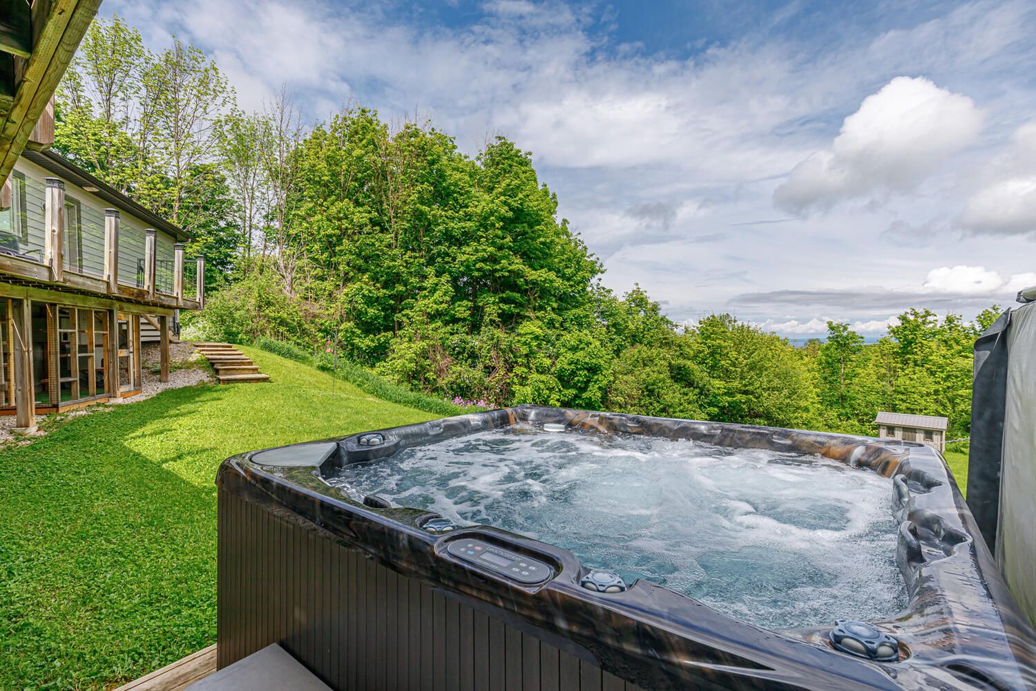 Known as the sunshine chalet and the house with the best views in all of castle glen! Immerse yourself in the stunning, panoramic views of osler bluffs, niagara escarpment and georgian bay from this one-of-a-kind bungalow. The wrap-around 75-ft deck with glass panels provides unobstructed sights. Every window in this home has a breathtaking look of natural beauty from season to season. Castle glen is a one-of-a-kind community that sits amidst an outdoor enthusiast's heaven, surrounded by scenic hiking trails with cascading rivers, the bruce trail, 3-stage mountain biking trails, cyclists' routes, snowshoeing and cross-country ski trails. The location of this home offers the perfect balance of nature and convenience with downtown collingwood and blue mountain village just 10 minutes away. This four bed, 3 bath open-concept home is truly an entertainer's delight throughout and has too many features to include! Main level has a chef's kitchen w/ high-end appliances, dining room designed for gathering, great room anchored by a wood-burning fireplace and vaulted ceilings, master suite in separate wing from guest suite, mudroom and laundry w/ access to a large two-car, insulated garage w/ storage loft for all your outdoor gear. The lower-level walk-out is a man-cave dream w/ a bar to rival any fine pub. Enjoy the wet sauna and hot tub. Even the walk-out level guest bedrooms have a view! This remarkable home has been meticulously cared for and must be seen!