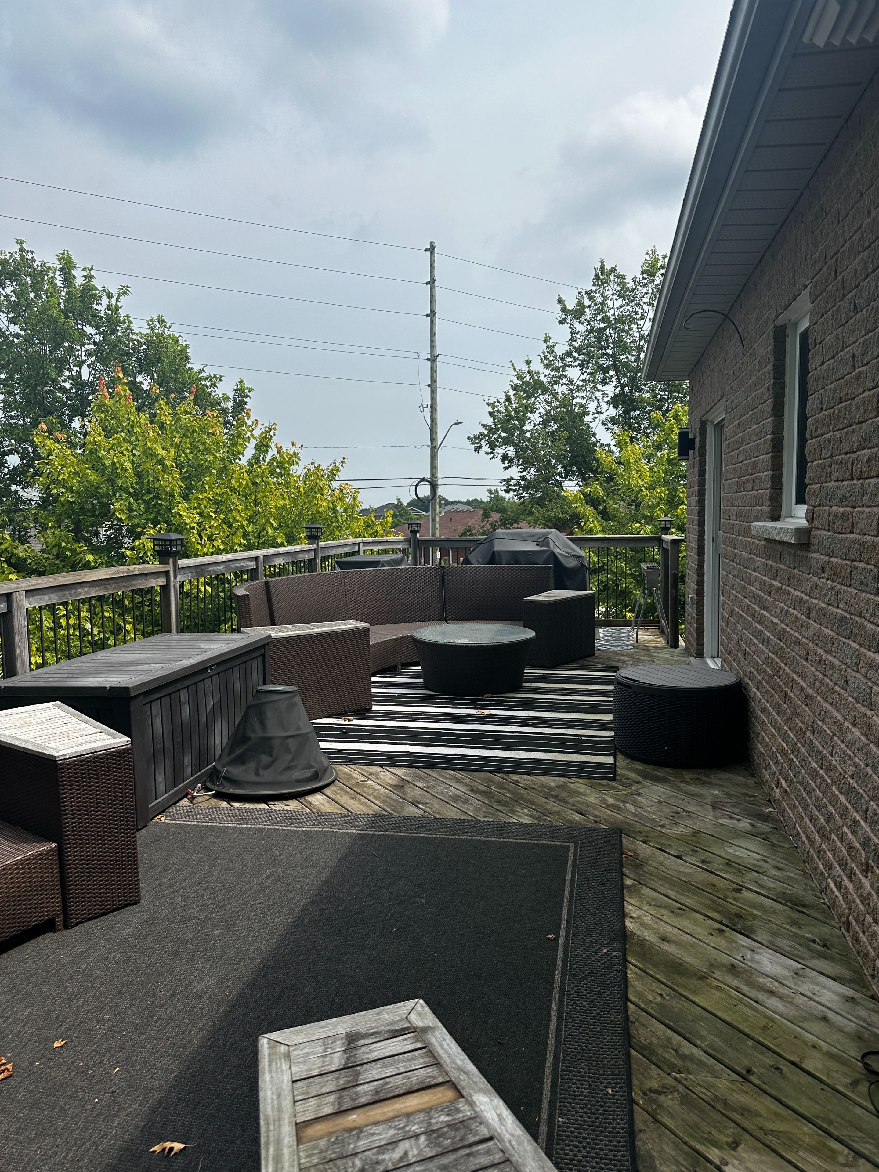 Enjoy peaceful living in this privately situated top-floor unit of a bungalow, offering approximately 1,500 sq. Ft. Of beautifully finished living space. The spacious primary bedroom features a private en-suite and a walkout to a large deck spanning the entire back of the home-perfect for relaxing evenings overlooking the escarpment. A second oversized bedroom is equally impressive, complete with two full closets and ample additional space. The kitchen is equipped with professional-series stainless steel appliances, including a dishwasher and garbage disposal, along with quartz countertops. The dining area easily accommodates a full-size dining table and offers an additional walkout to the outdoor space. The main living area showcases gleaming hardwood floors, 10-foot ceilings, crown moulding, pot lights, and quality finishes throughout. A separate pantry room provides generous storage, and the unit includes private in-suite laundry for added convenience. Additional features include air conditioning, central vacuum, and parking for two large vehicles. The beautifully landscaped grounds feature mature trees, uni-stone, and armour stone. Rent plus 50% of utilities. Immediate availability