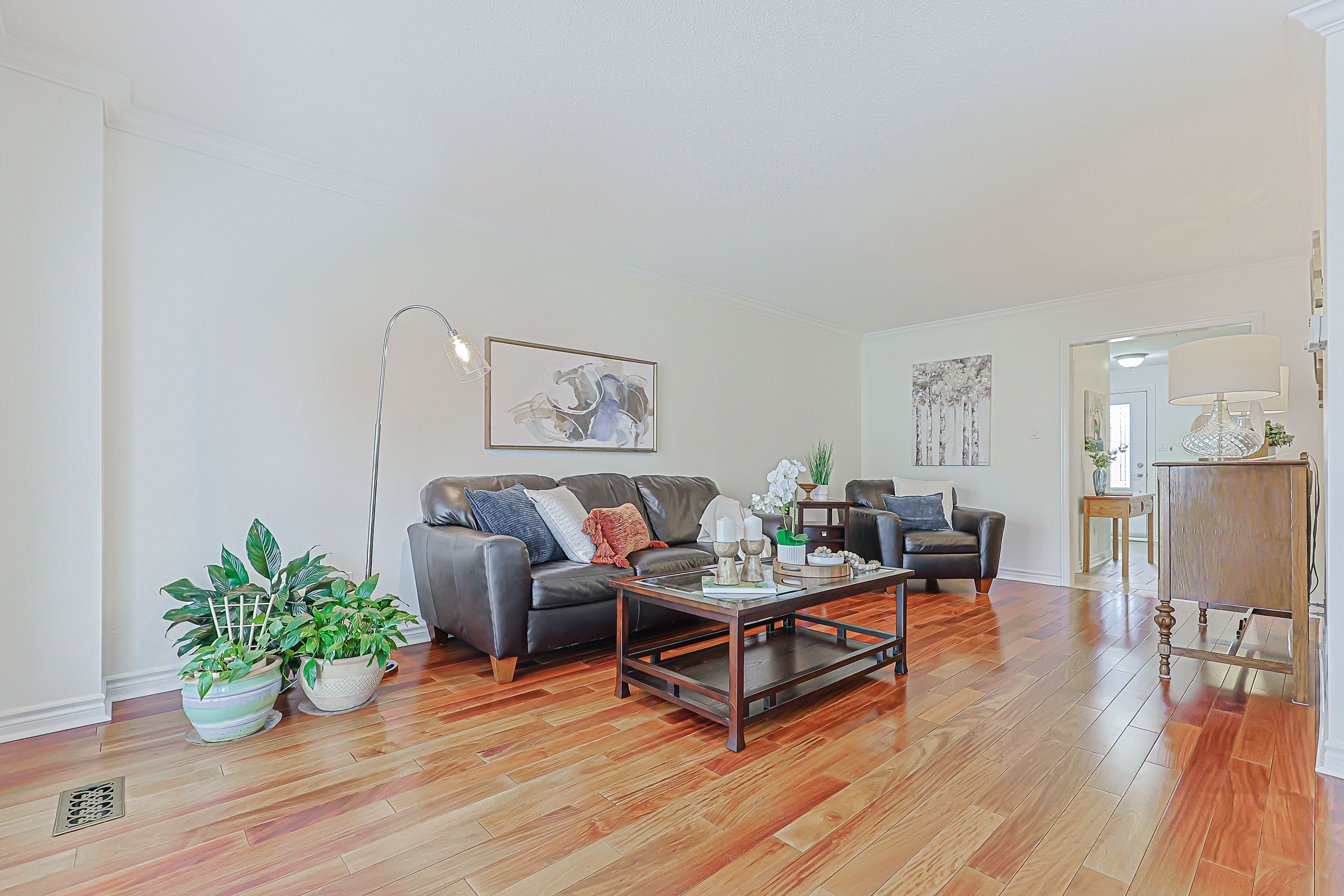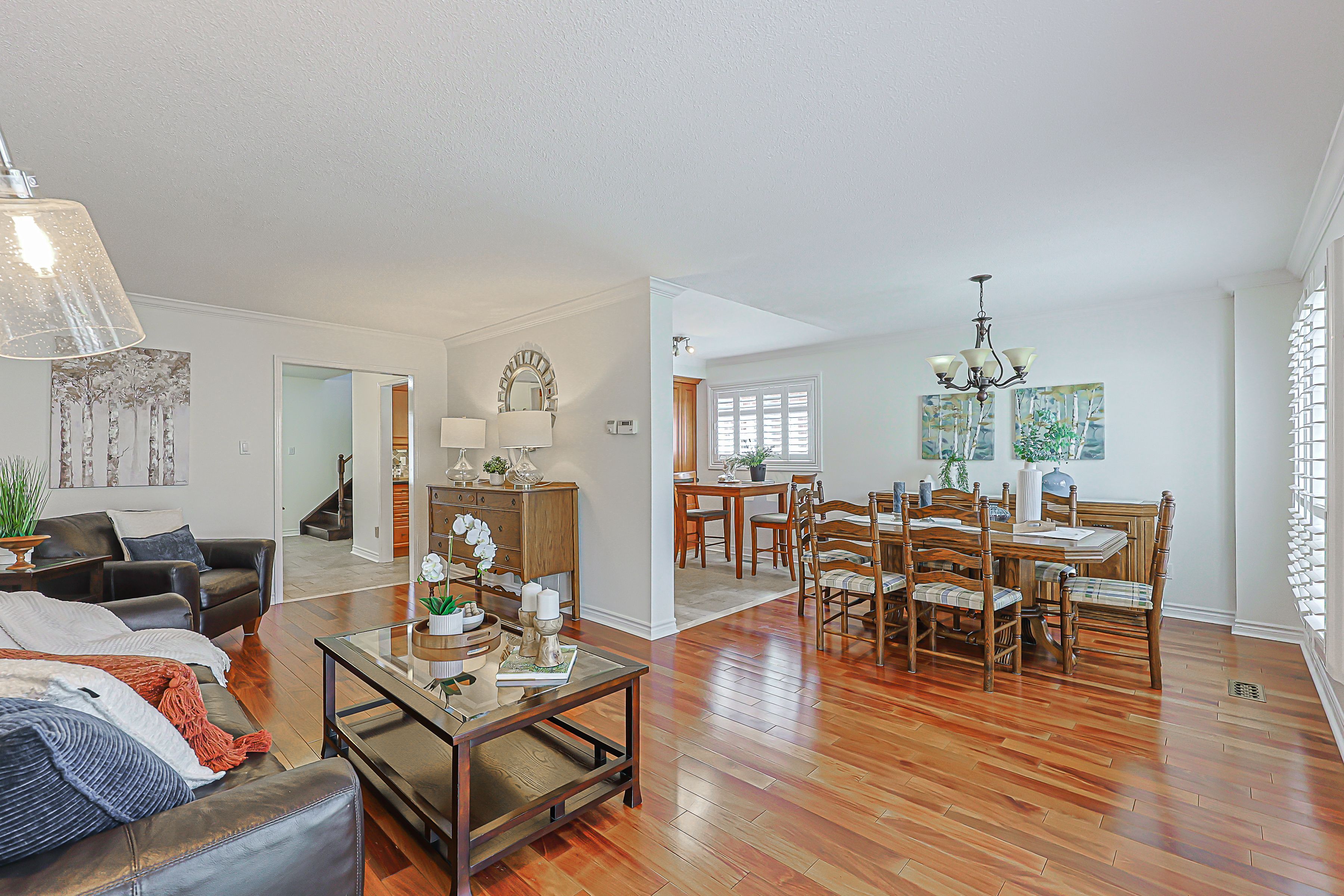 • Open concept layout with a newly renovated kitchen and hardwood flooring.