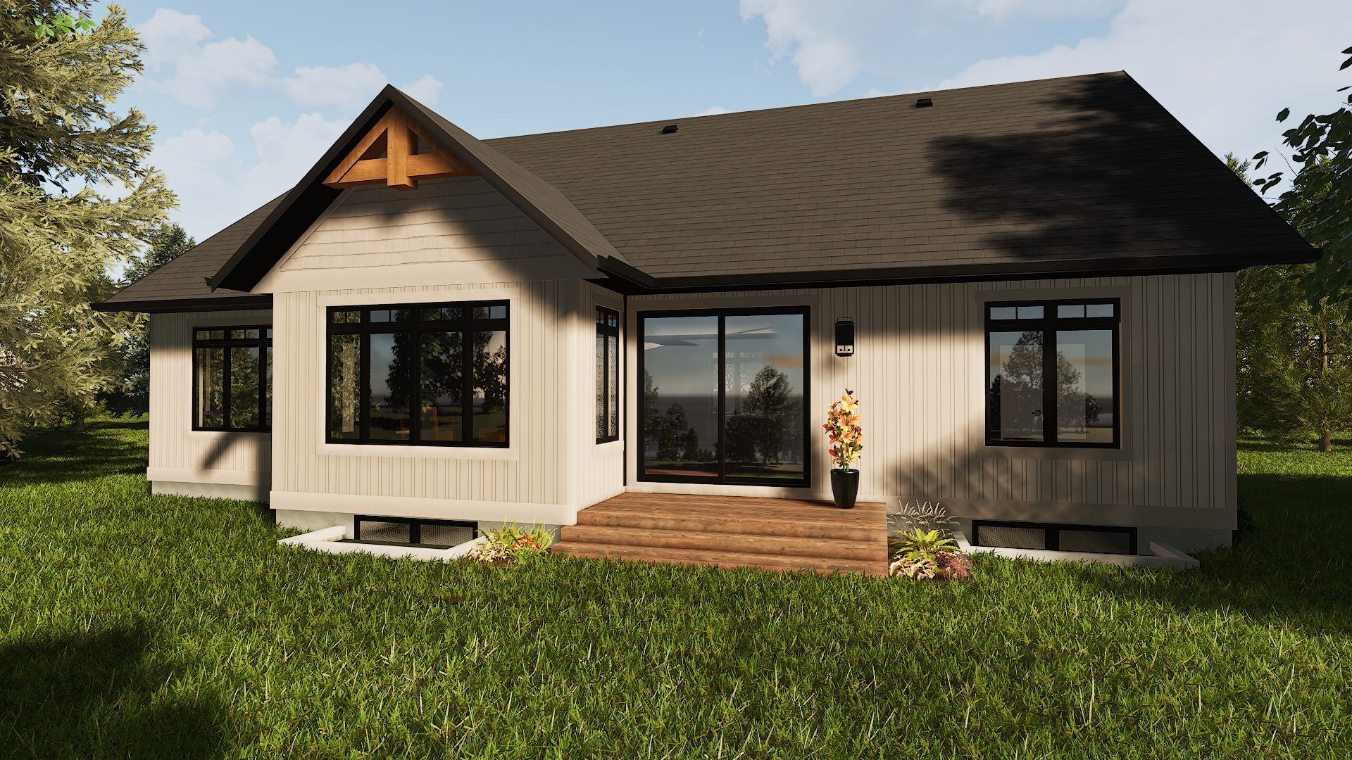 • Craftsman style home with natural materials and exposed beams for visual appeal.