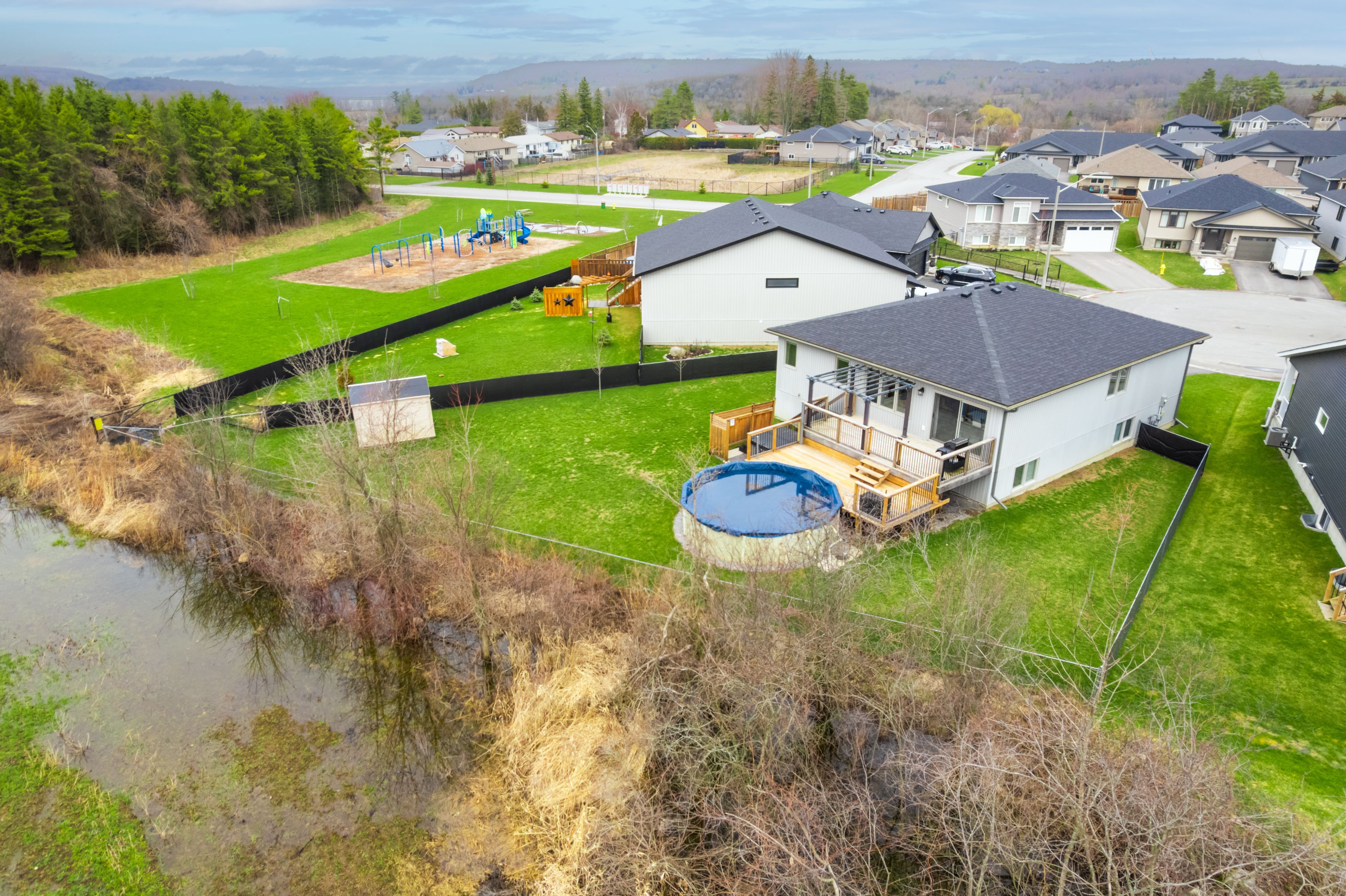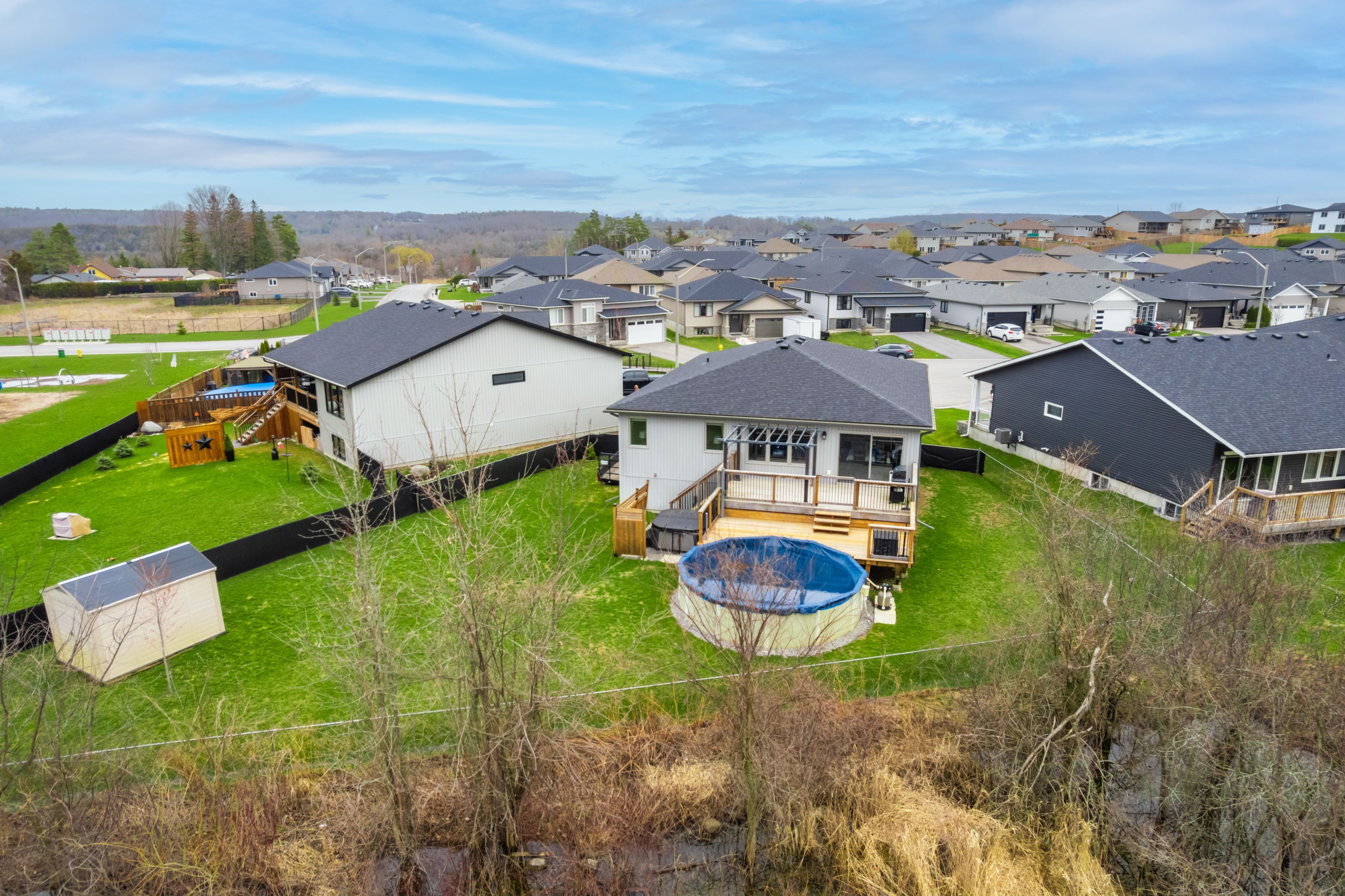 This beauty sits on an extra large lot on a quiet cul de sac in the quaint town of frankford. This 3+2 bedroom, 2+1 bathroom home is just 5 years young and has so much to offer. The main floor has 3 bedrooms, 2 bathrooms and laundry. The open floor plan living space has a beautiful chef's kitchen with quartz countertops and lots of storage space. Split design means that the private, primary suite with ensuite bath and walk in closet is at the back of the house. The finished basement is the perfect spot to get away from the rest of the house. Just past the family room are 2 bedrooms, a bathroom and a bonus space to have your own home gym! Enjoy beautiful sunsets from the large, 2 tier deck. Step through the 8 foot sliders and get access to the oversized backyard which has a pool with partial surround, a hot tub and is fully fenced for the dogs to play. Double car garage has 20 foot ceilings and lots of room for vehicles, toys and extra storage. Pool has new liner, pump, filter, stairs and comes with all covers - solar and winter and vacuum and remaining chemicals. New hot tub 2023. 8 x 10' sling top pergola 2025. Close to trails, conservation area, amazing walking, beach, skiing, shops, schools, churches, restaurants, boat launches and much more. 15 minutes to the 401 at trenton, 20 minutes to cfb trenton and less than 2 hours to the gta. Close to prince edward county and 40 minutes to sandbanks provincial park. Don't miss the chance to own a gorgeous home in a lovely rural setting yet so close to many amenities!