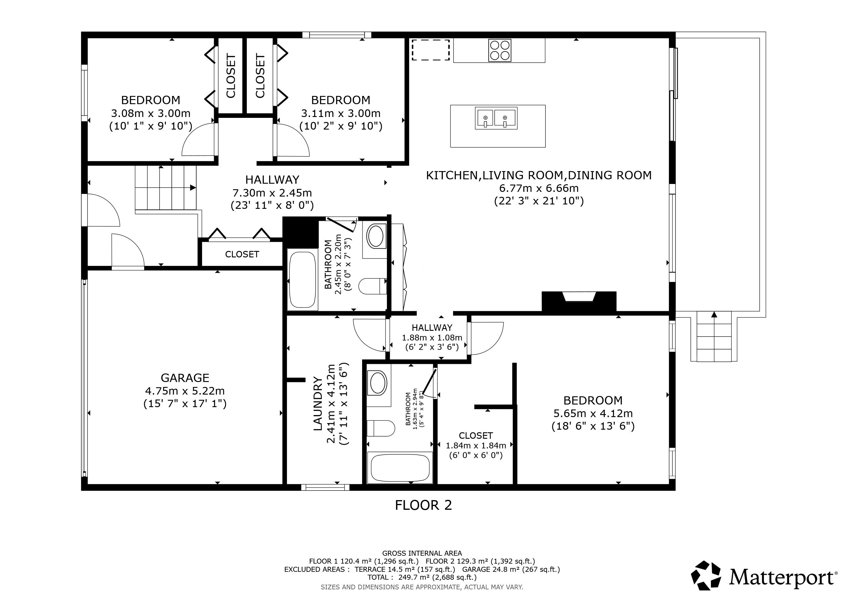 • Finished basement with two bedrooms, bathroom, and bonus gym space.