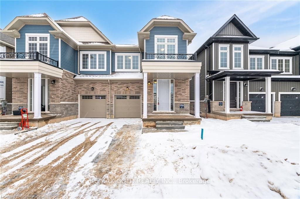 Brand-new huge 1910 sqft, semi-detached gem at county road 124 and line 10 (9648 county road 124). Premium/branded stainless steel appliances. Chamberlain 3/4 hp ultra-quiet belt drive smart garage door opener with battery backup and led light. This beautifully crafted 4-bedroom home offers an open-concept main floor with a gourmet kitchen featuring granite countertops and custom cabinetry. Upstairs, enjoy four spacious bedrooms, including a luxurious master suite with a designer ensuite. Laundry on second floor. The unfinished basement provides endless customization potential, while the exterior impresses with low-maintenance stone, brick, and premium vinyl siding, plus a fully sodded lawn. Located in a family-friendly neighborhood with top-rated schools, parks, and amenities nearby, perfectly blends modern living with small-town charm.