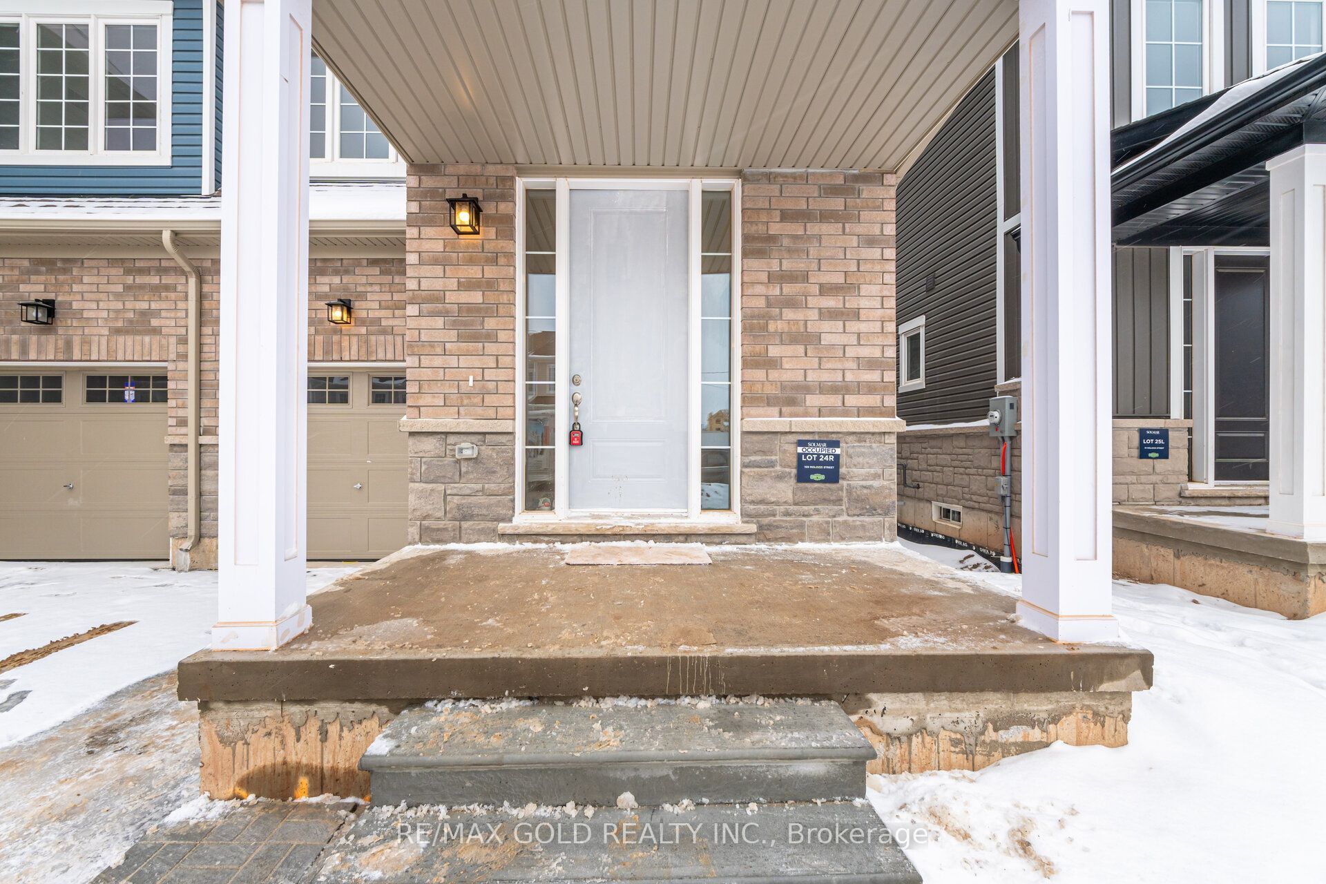 Brand-new huge 1910 sqft, semi-detached gem at county road 124 and line 10 (9648 county road 124). Premium/branded stainless steel appliances. Chamberlain 3/4 hp ultra-quiet belt drive smart garage door opener with battery backup and led light. This beautifully crafted 4-bedroom home offers an open-concept main floor with a gourmet kitchen featuring granite countertops and custom cabinetry. Upstairs, enjoy four spacious bedrooms, including a luxurious master suite with a designer ensuite. Laundry on second floor. The unfinished basement provides endless customization potential, while the exterior impresses with low-maintenance stone, brick, and premium vinyl siding, plus a fully sodded lawn. Located in a family-friendly neighborhood with top-rated schools, parks, and amenities nearby, perfectly blends modern living with small-town charm.