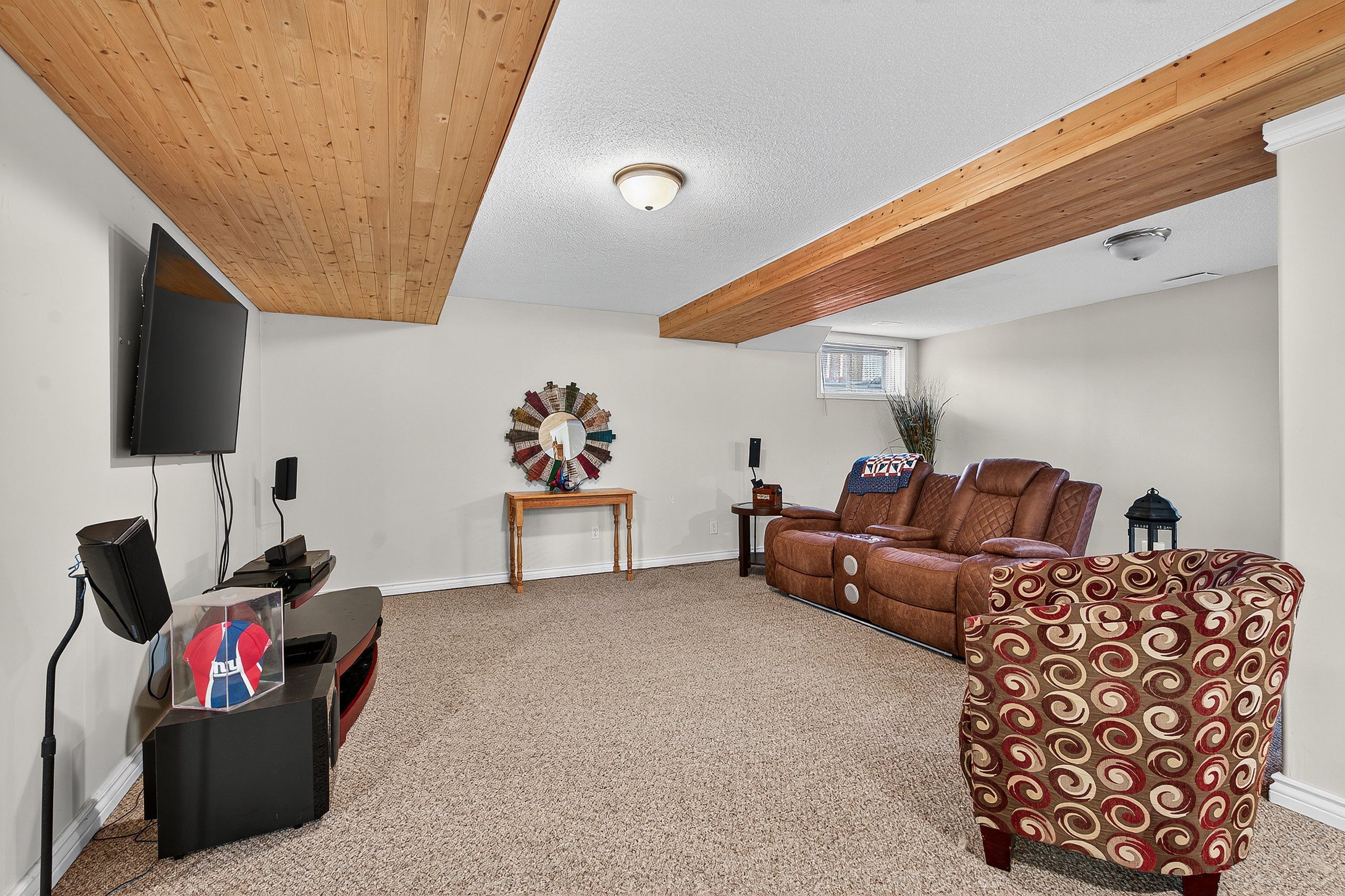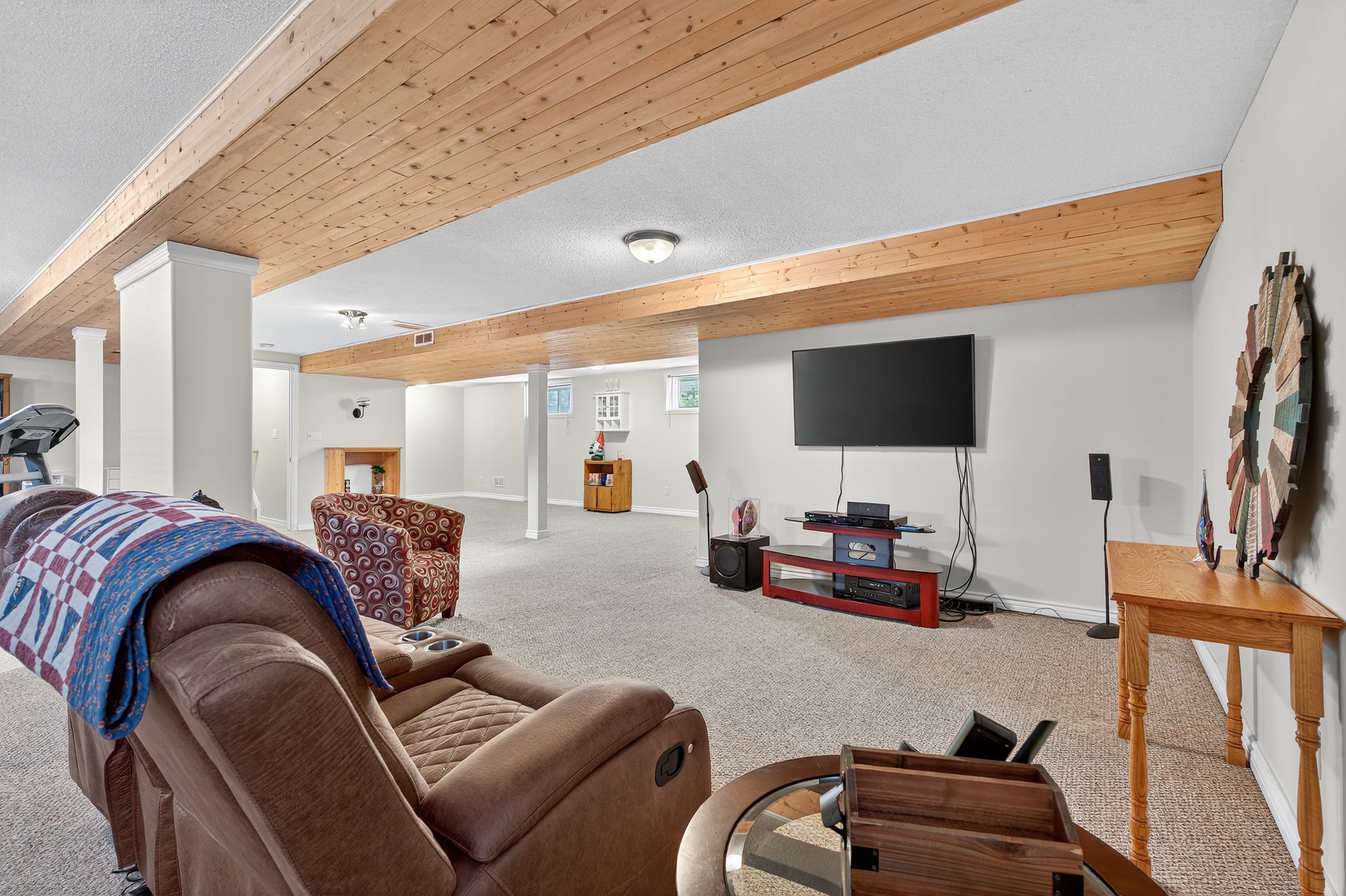 • Spacious lower level with a rec room and games area.