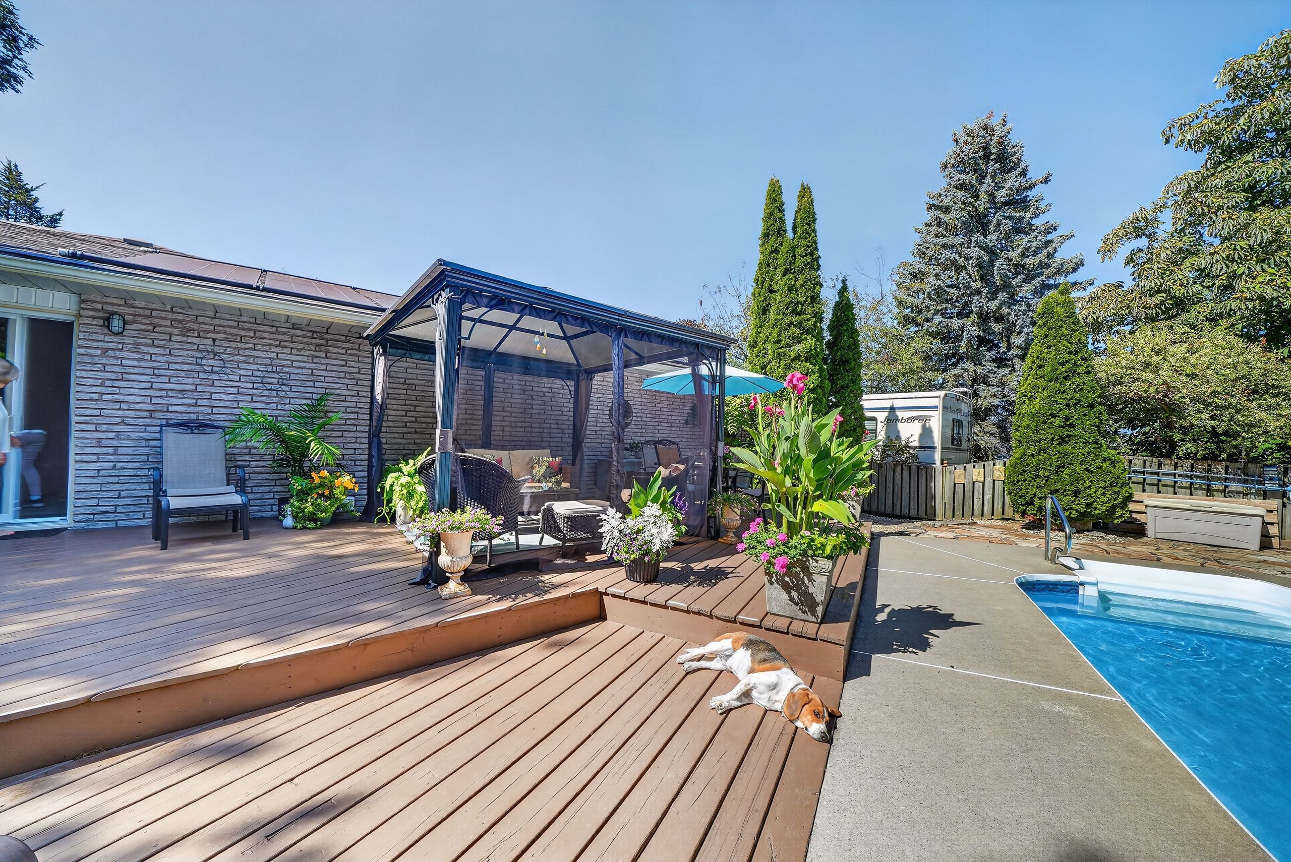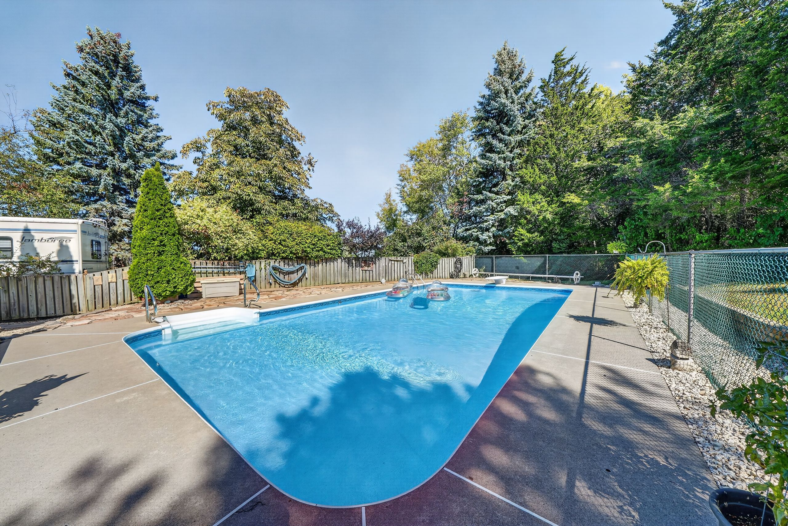 • In-ground solar heated pool and patio perfect for summer relaxation.
