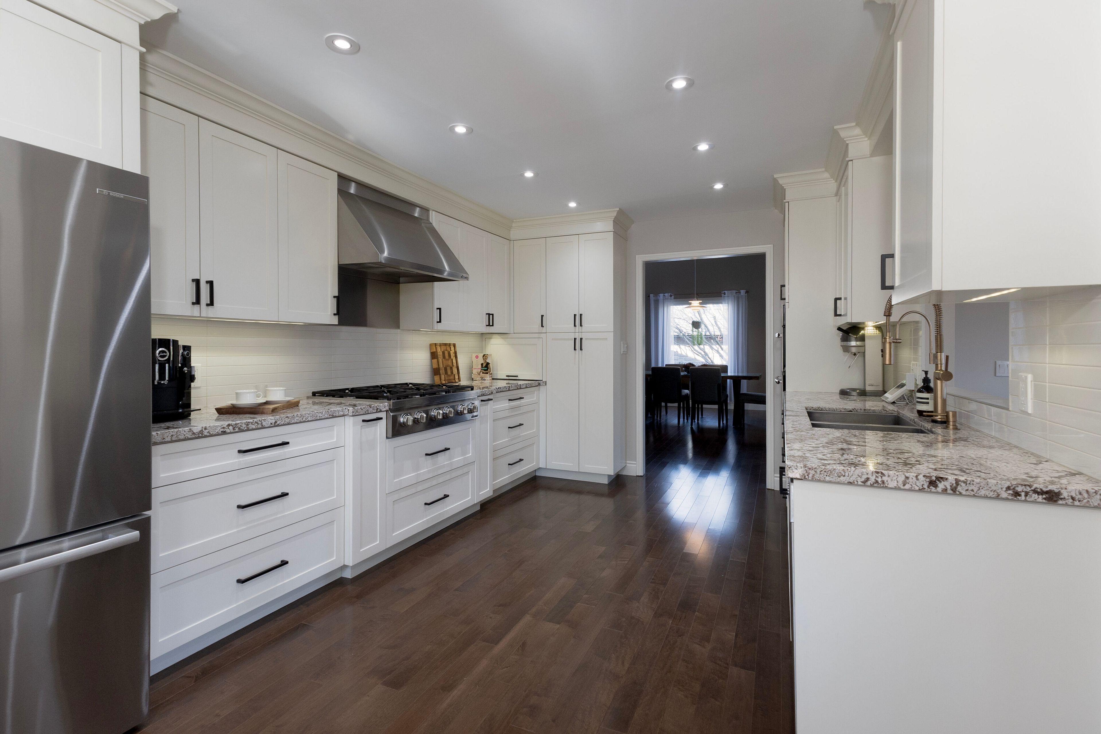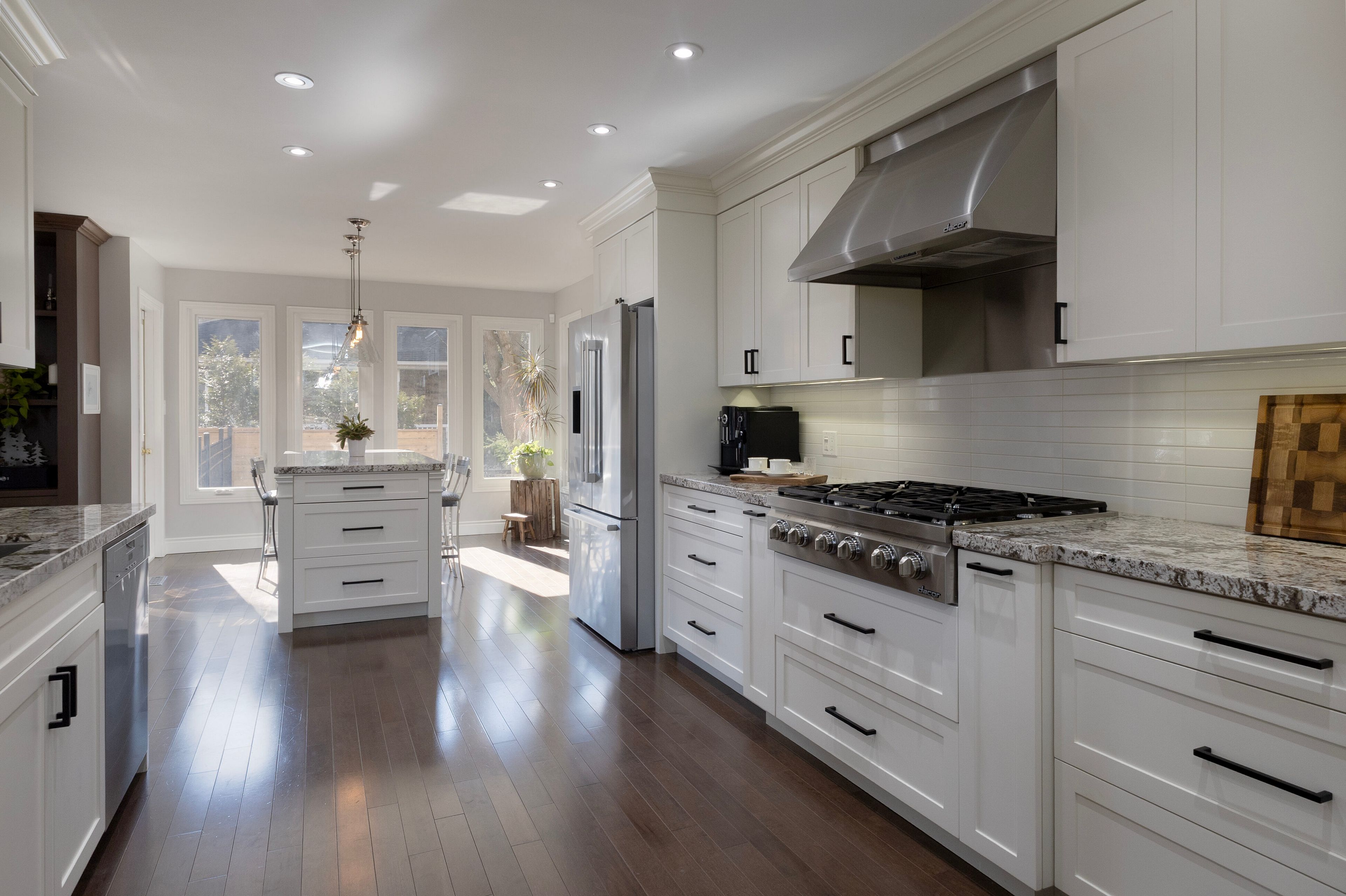• Custom chef's kitchen with high-end appliances and large island for entertaining.