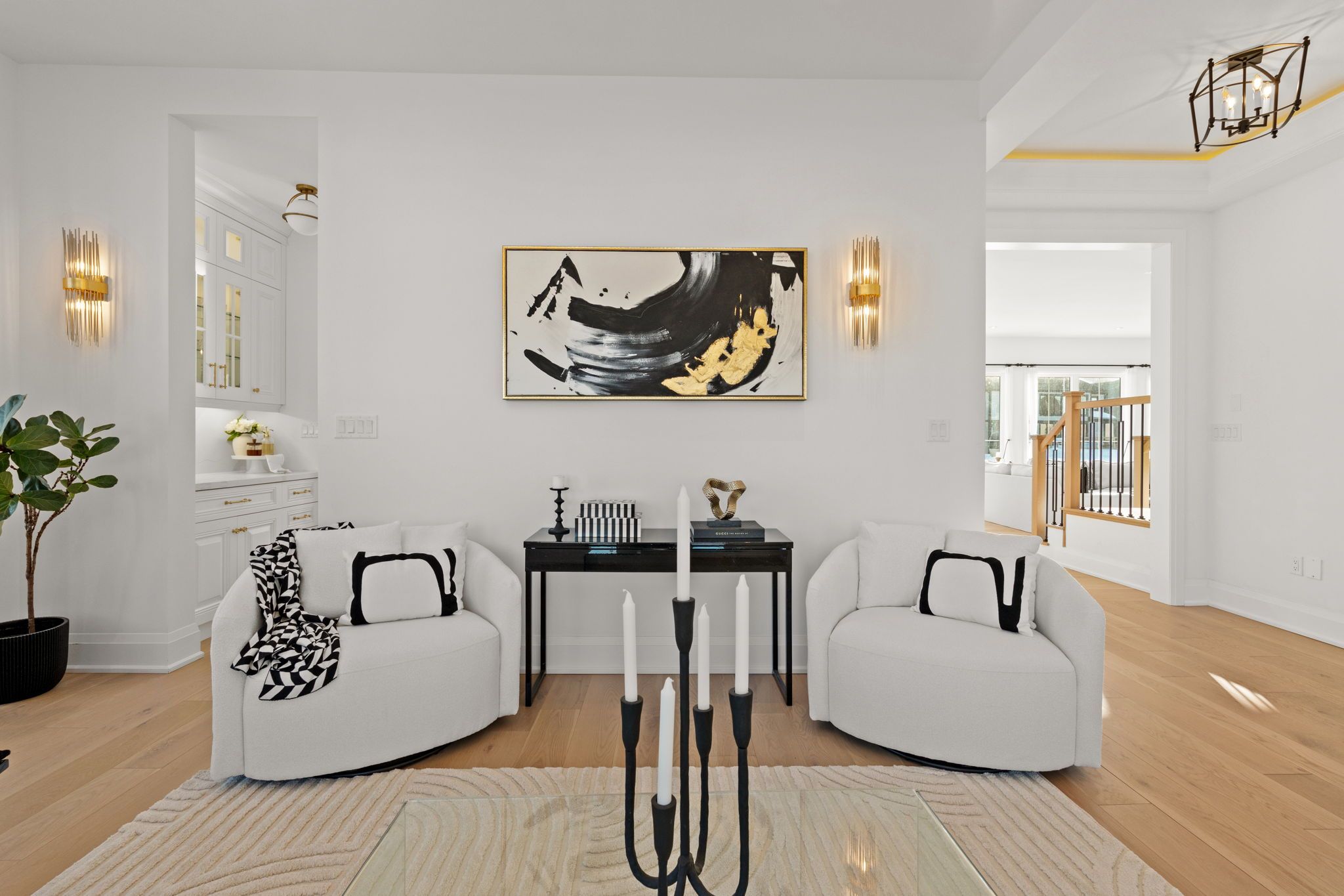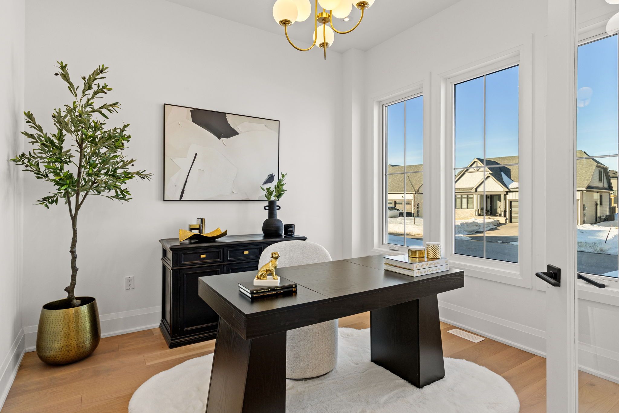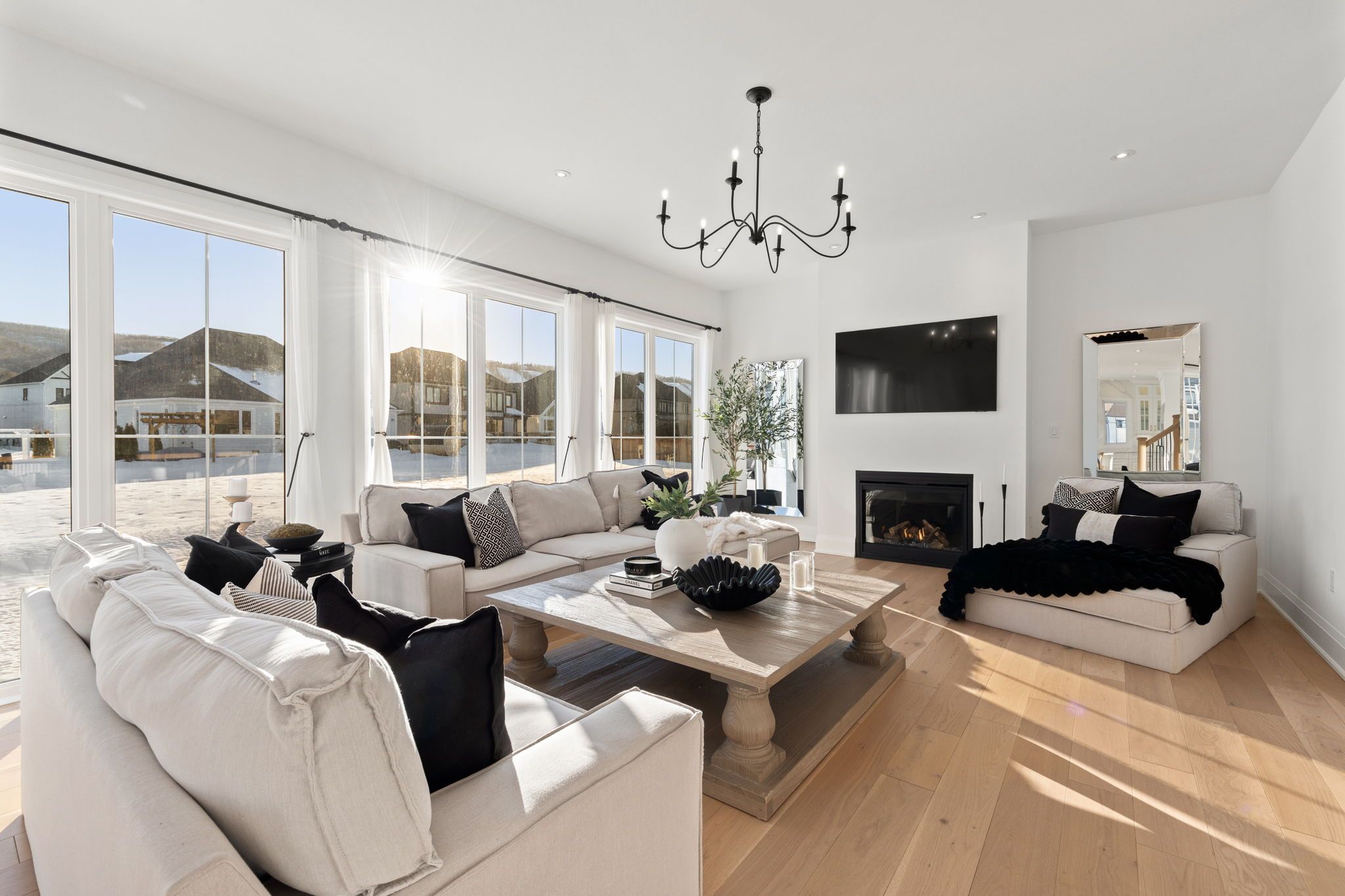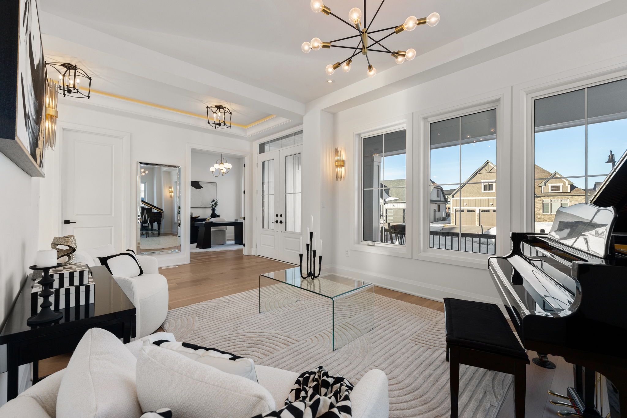 • Light-filled interior with oversized windows and soaring ceilings.