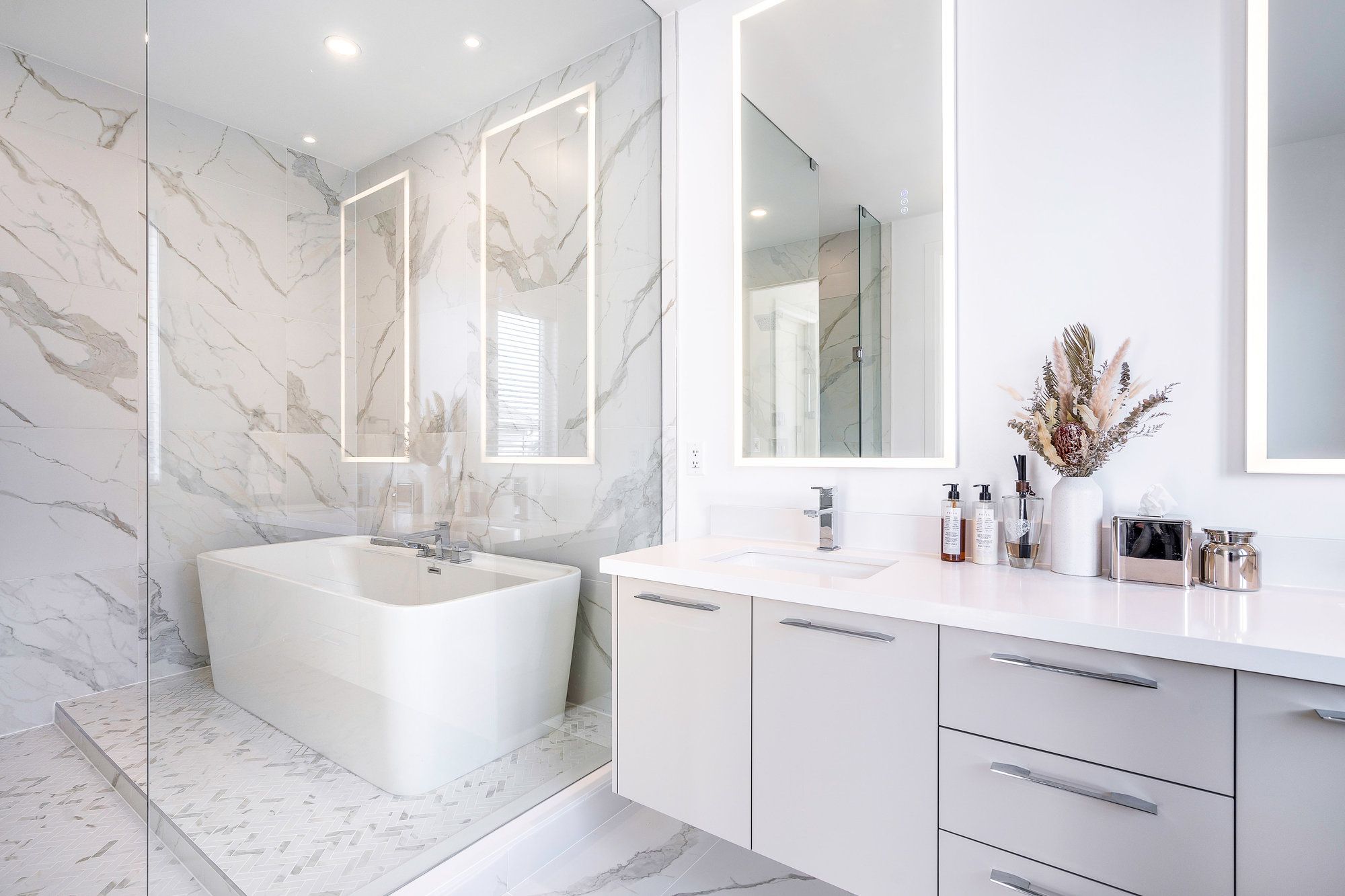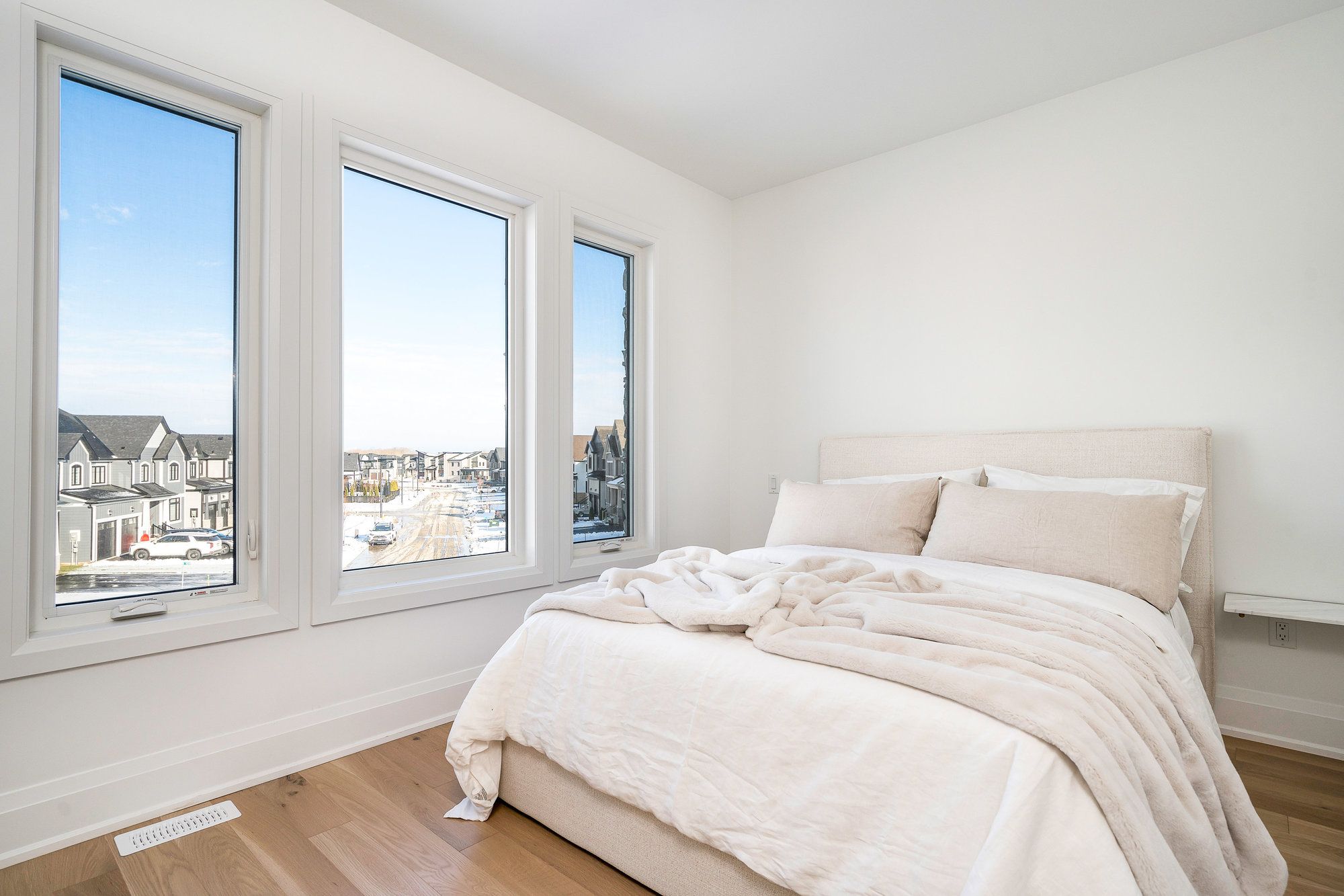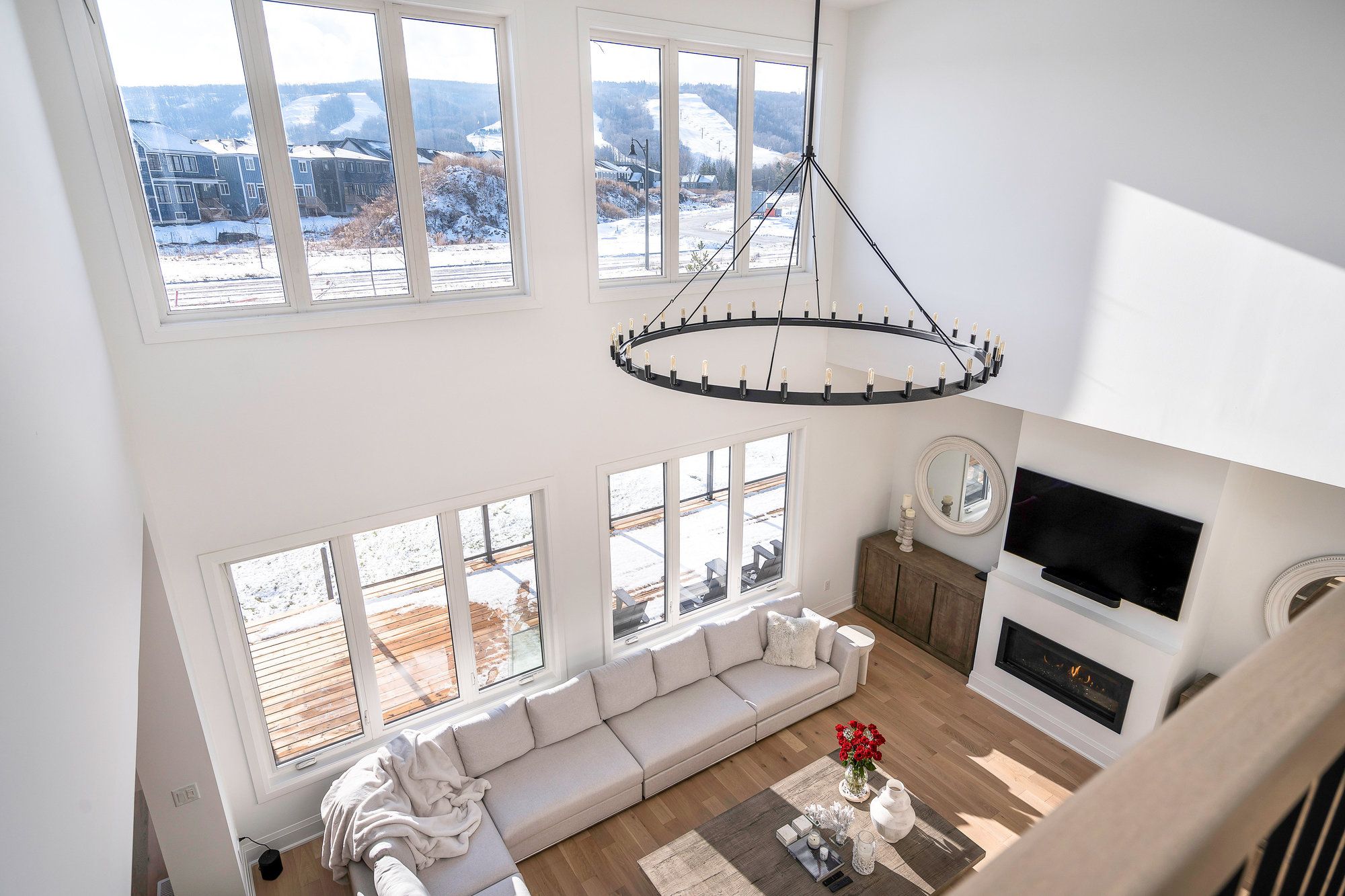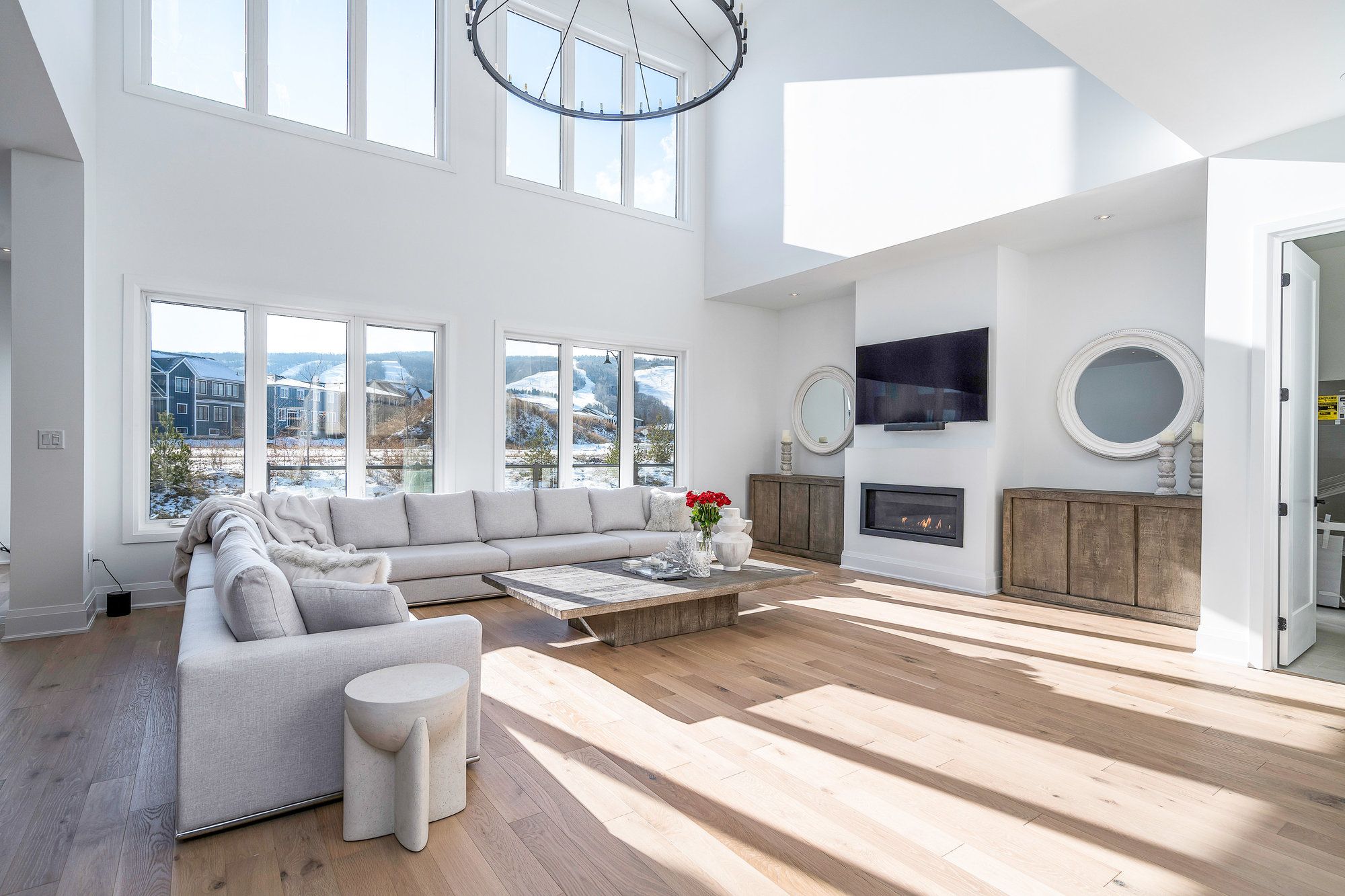 This designer executive home offers over 3,000 sq. Ft. Of modern, open-concept living with panoramic mountain views in one of blue mountain's most sought-after communities. Featuring soaring ceilings and wide plank hardwood floors, the chef's kitchen includes thermador built in appliances, quartz countertops, an oversized island, and a bar fridge. The expansive great room with gas fireplace and floor-to-ceiling windows provides an inviting space to relax and entertain. Four spacious bedrooms each have private ensuites, including a primary suite with double glass-framed shower, deep soaker tub, and heated floors. Additional highlights include motorized blinds, a full laundry room with lg front-load washer and dryer, a private backyard with expansive deck, and parking for up to six vehicles. Just minutes from the village, ski lifts, shops, restaurants, and trails, this home combines modern elegance with the ultimate blue mountain lifestyle.