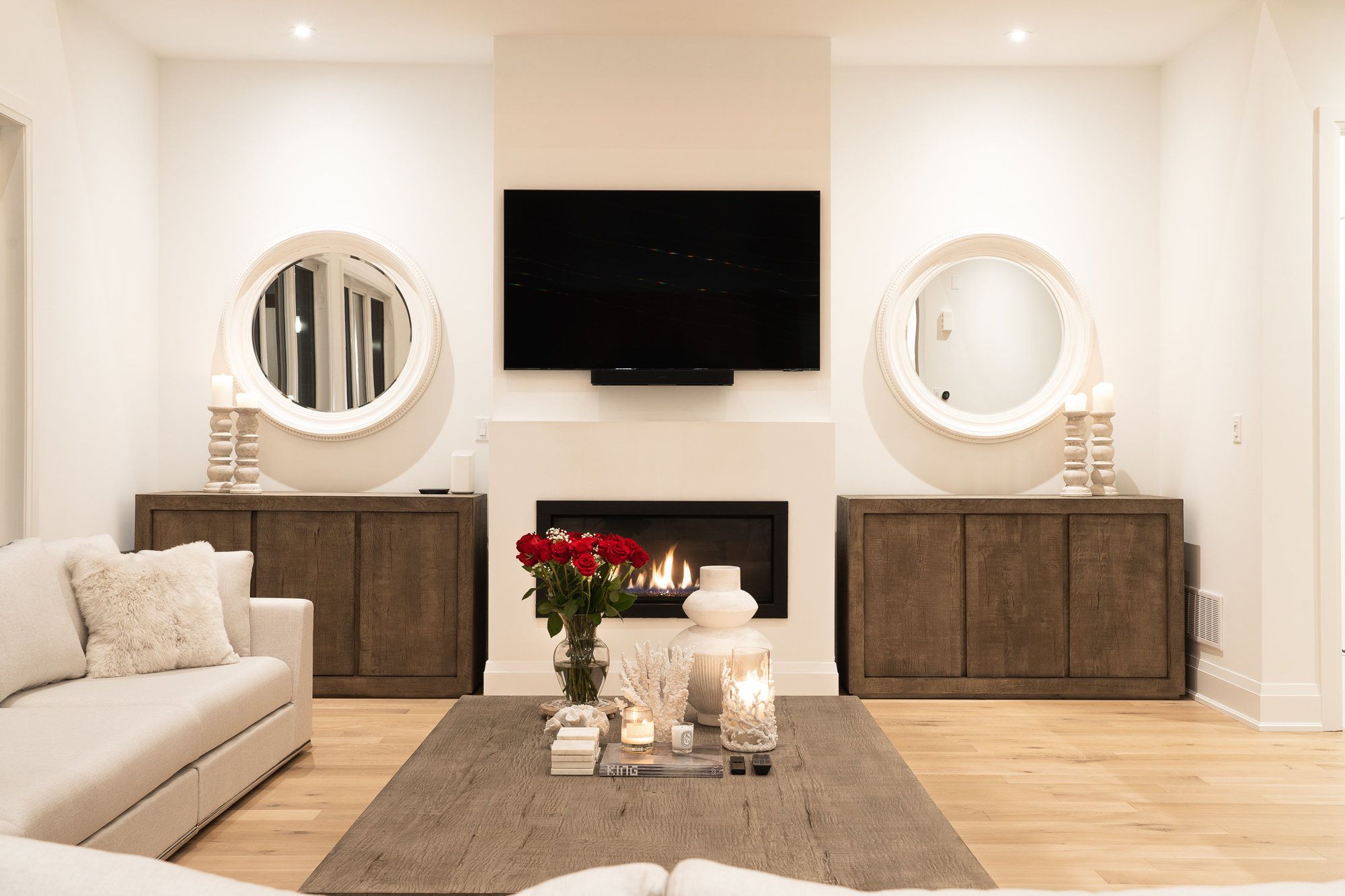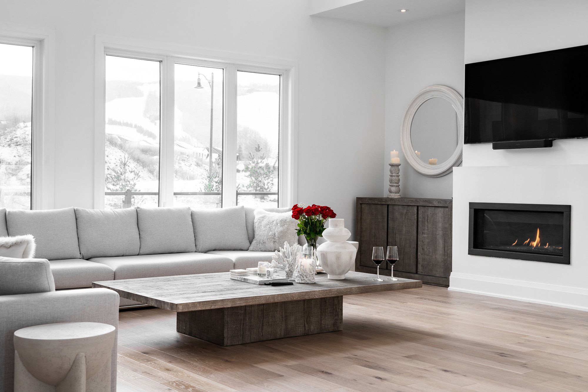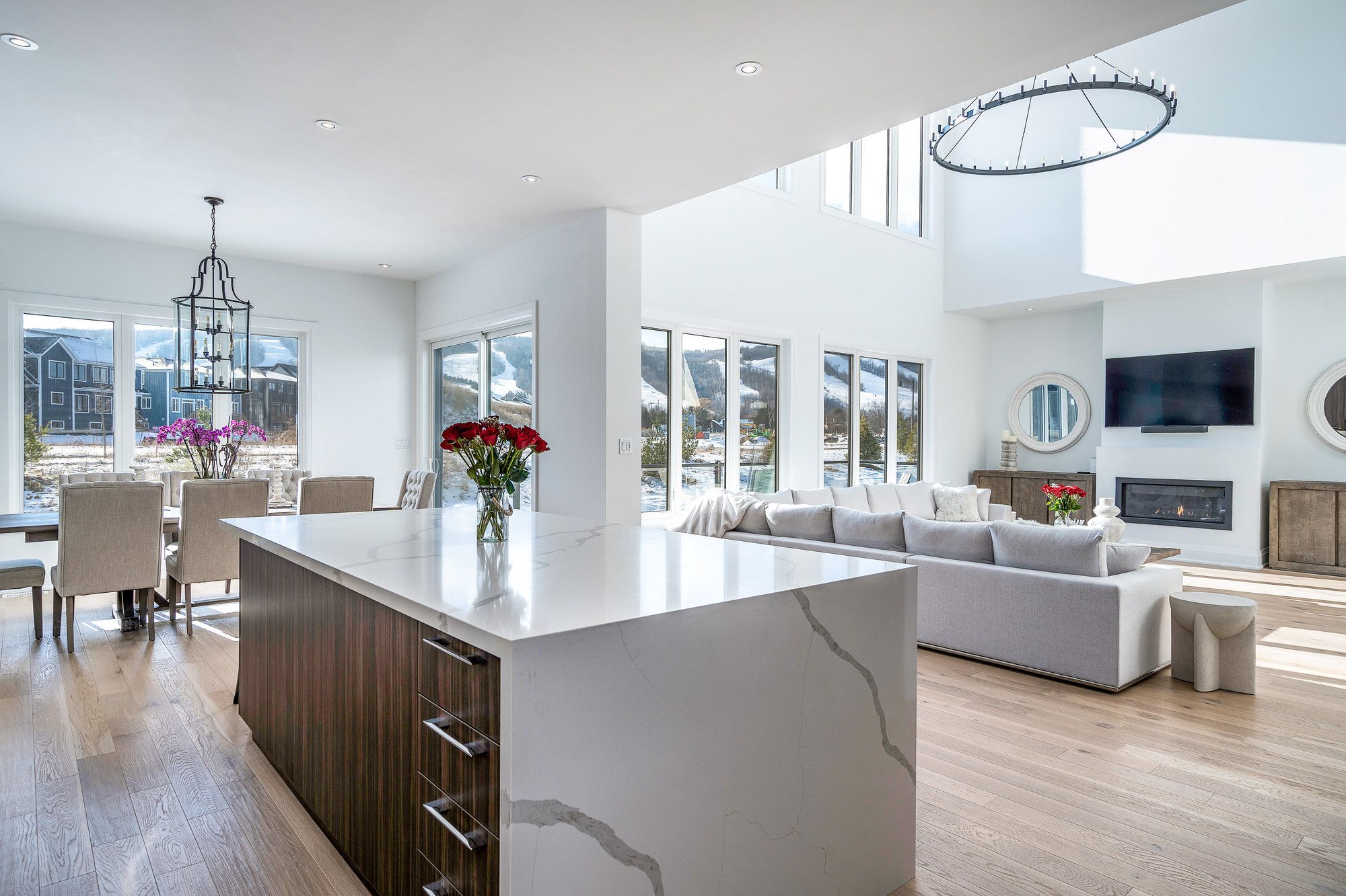 • Expansive great room includes gas fireplace and floor-to-ceiling windows.