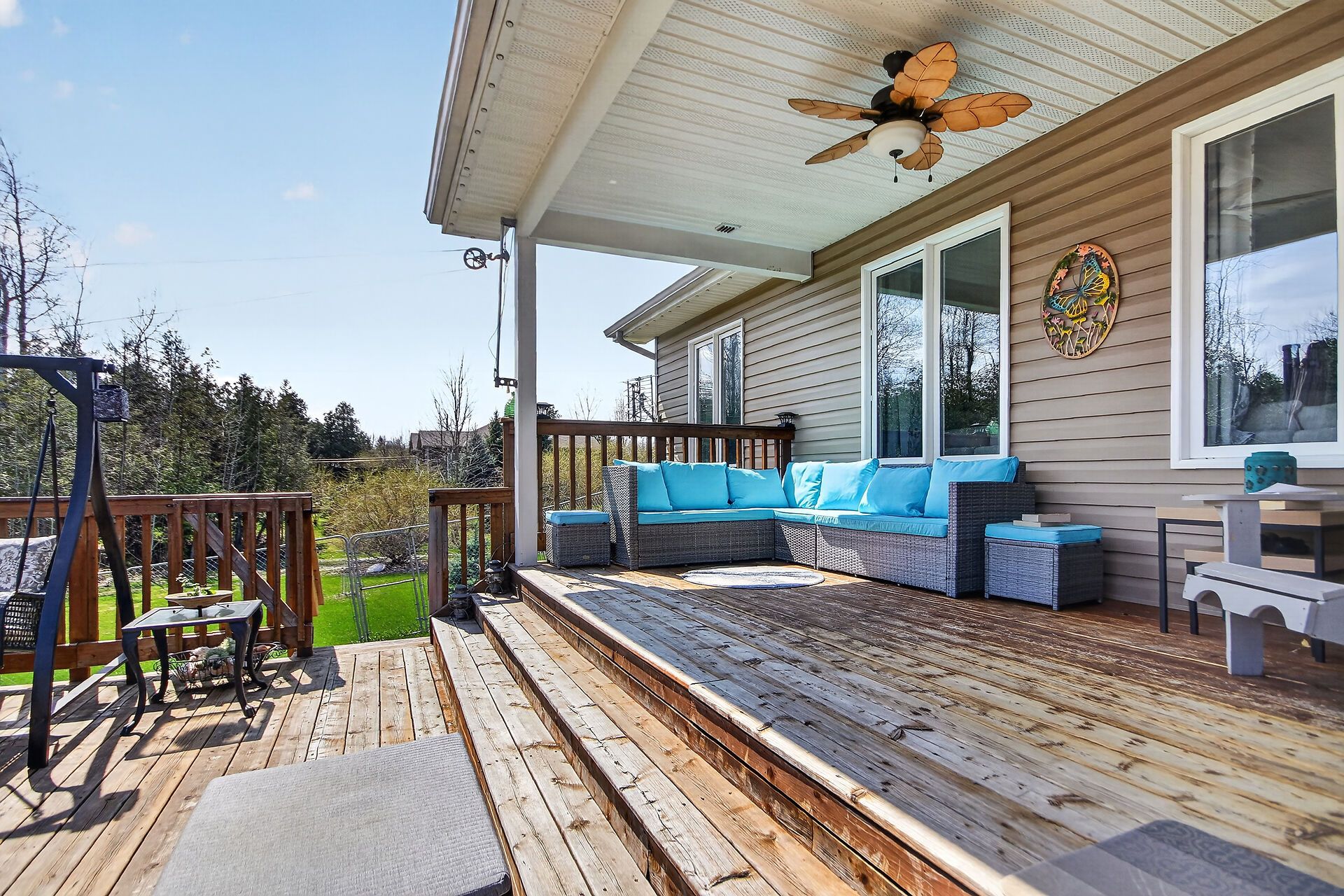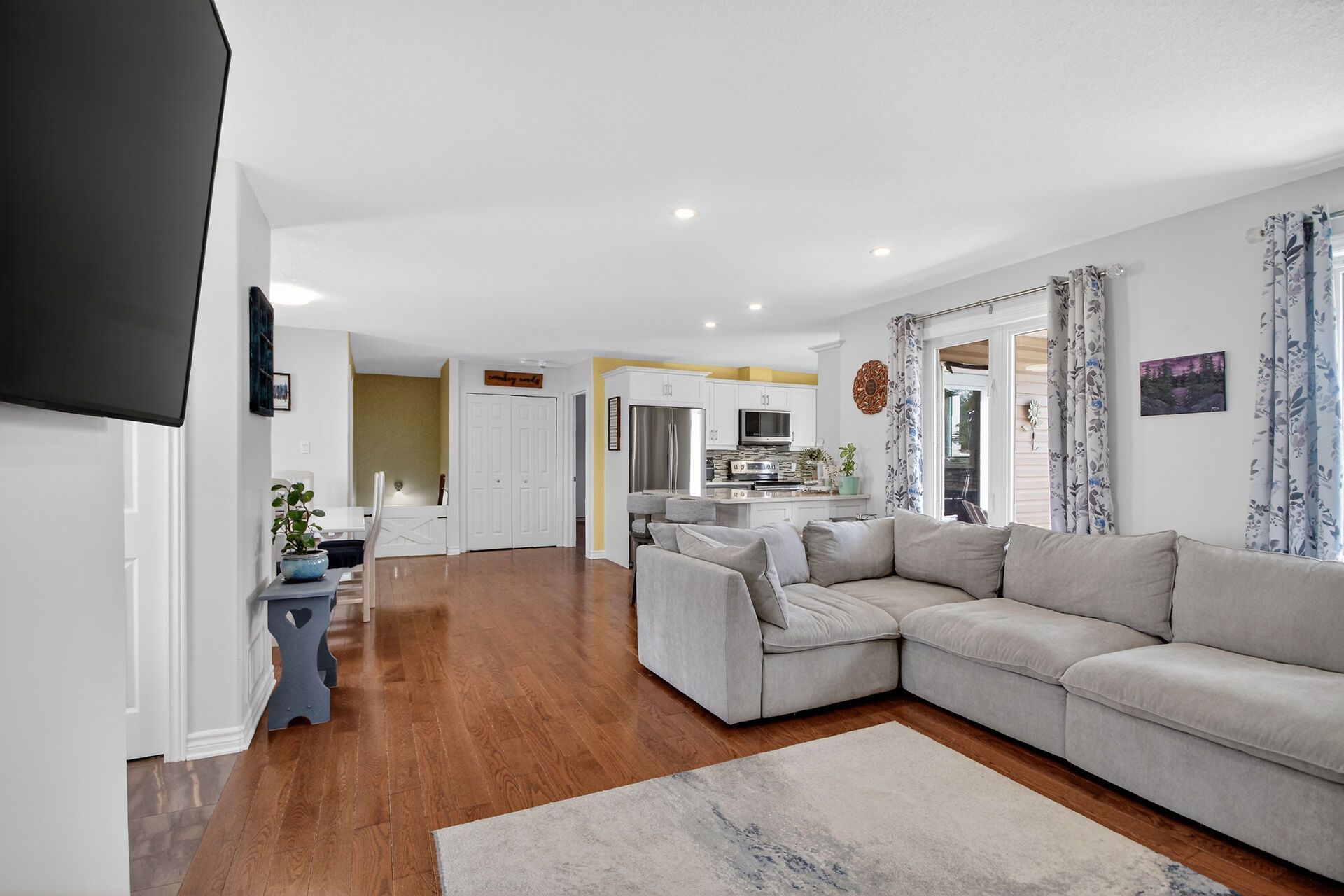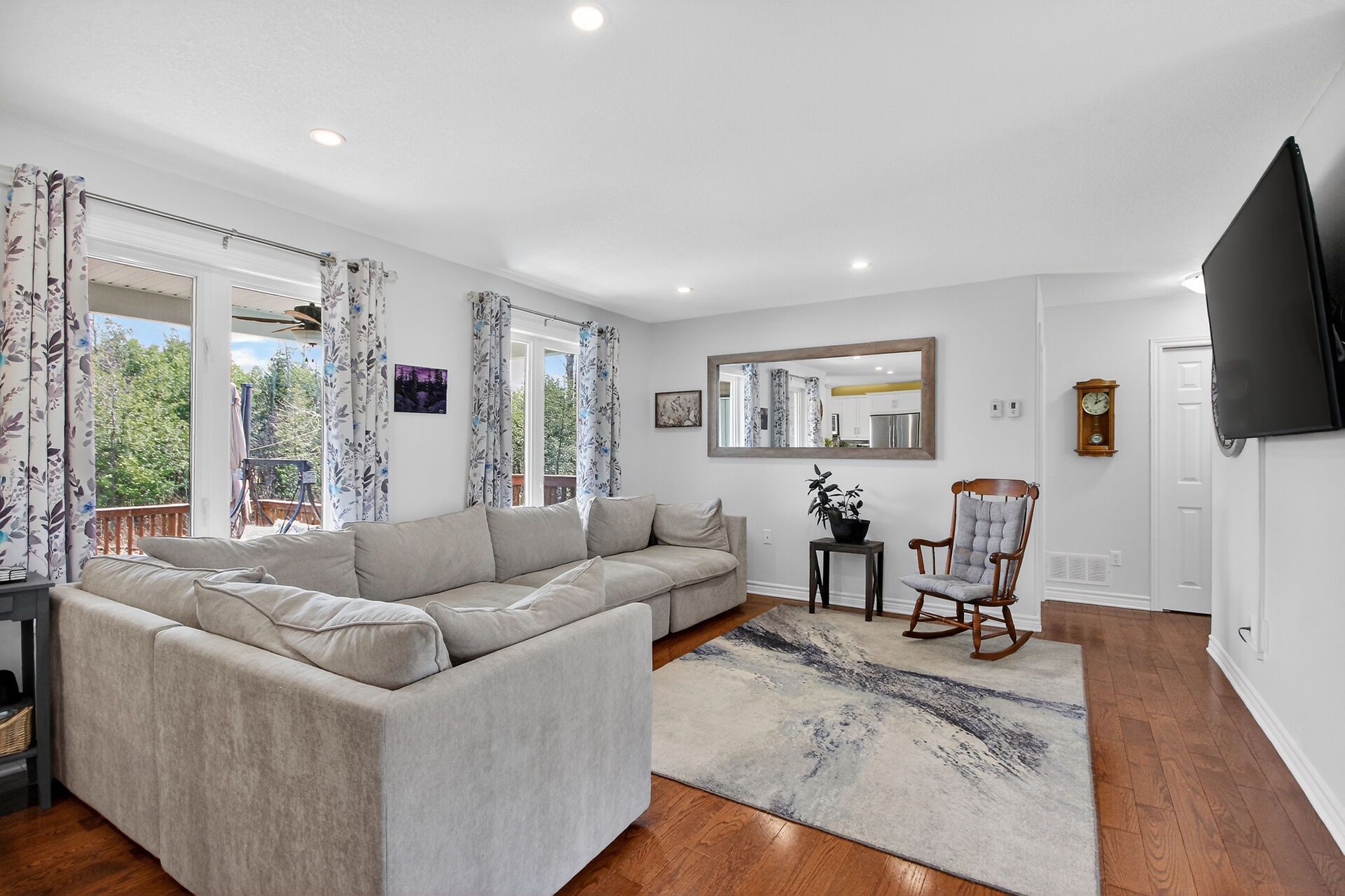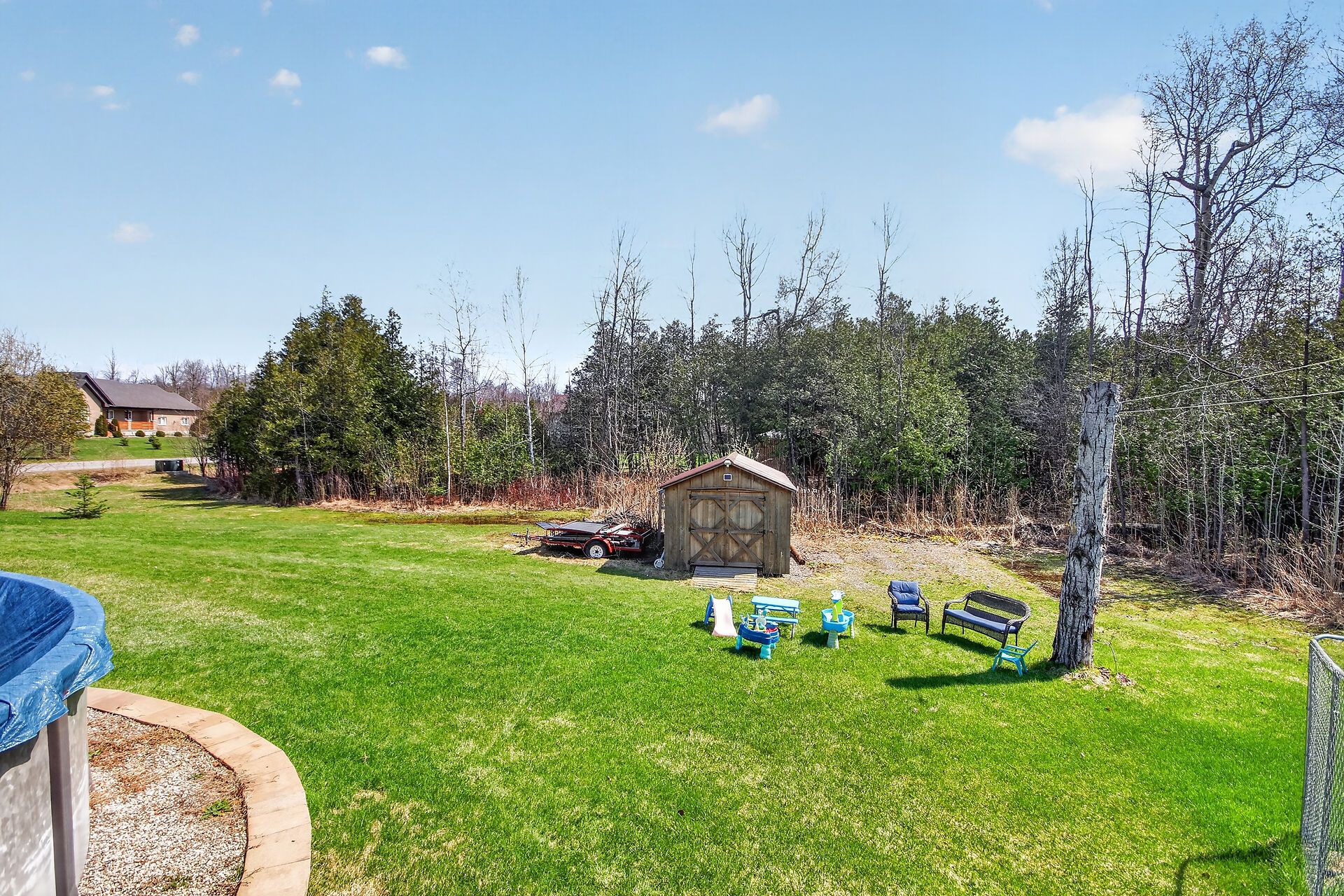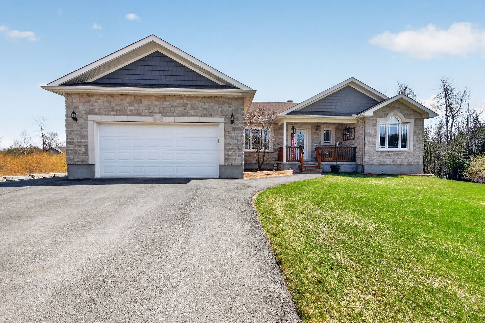 Welcome to 109 stonewalk drive in stonehaven estates, a well maintained 2016 parkview homes bexley model set on a 1. 02-acre corner lot. Located just minutes from kemptville and the 416, this 1,438 sq. Ft. Move-in-ready home with a great layout for entertaining. The bright, open-concept main floor features hardwood and tile flooring, quartz countertops, and a kitchen with extended cabinetry and newer appliances leading to a multi-level deck. The primary suite includes a walk-in closet with custom cabinetry and an ensuite and a glass shower. Two additional bedrooms, a full bathroom, and a laundry mudroom complete the level. The fully finished basement offers a large recreation area, custom bar, den, fourth bedroom, and full bathroom. The professionally landscaped exterior serves as a private oasis with a heated above-ground chlorine pool, irrigation system, and paved driveway. Perimeter willows provide summer privacy. Notable upgrades include bluetooth glo soffit lighting (2021), keyless entry (2021), and a newer washer and dryer (2022), pool heater 2025.
