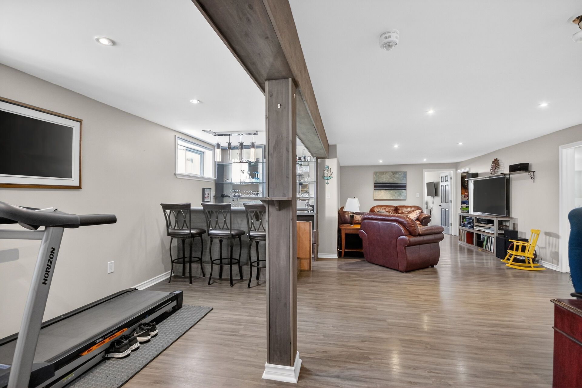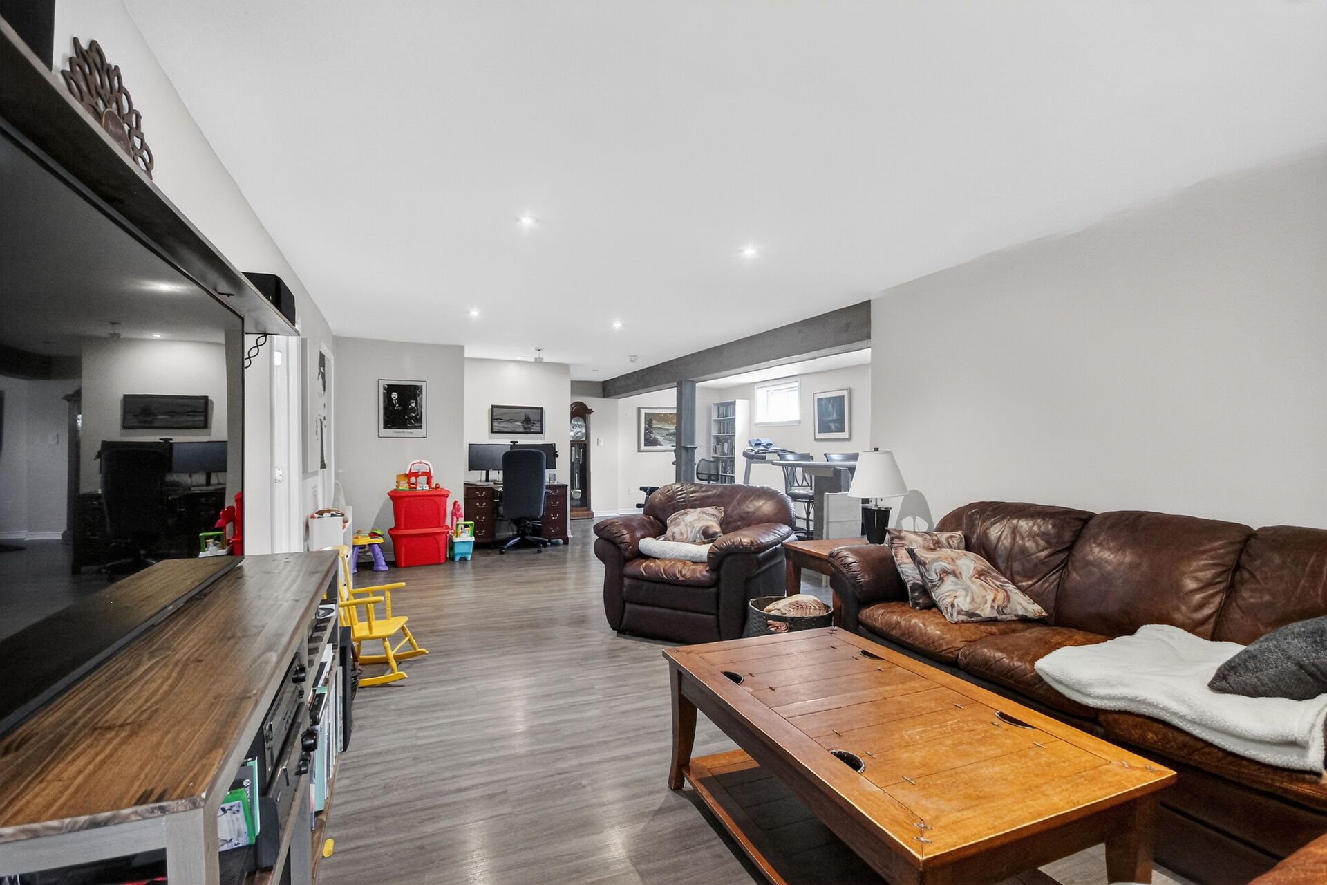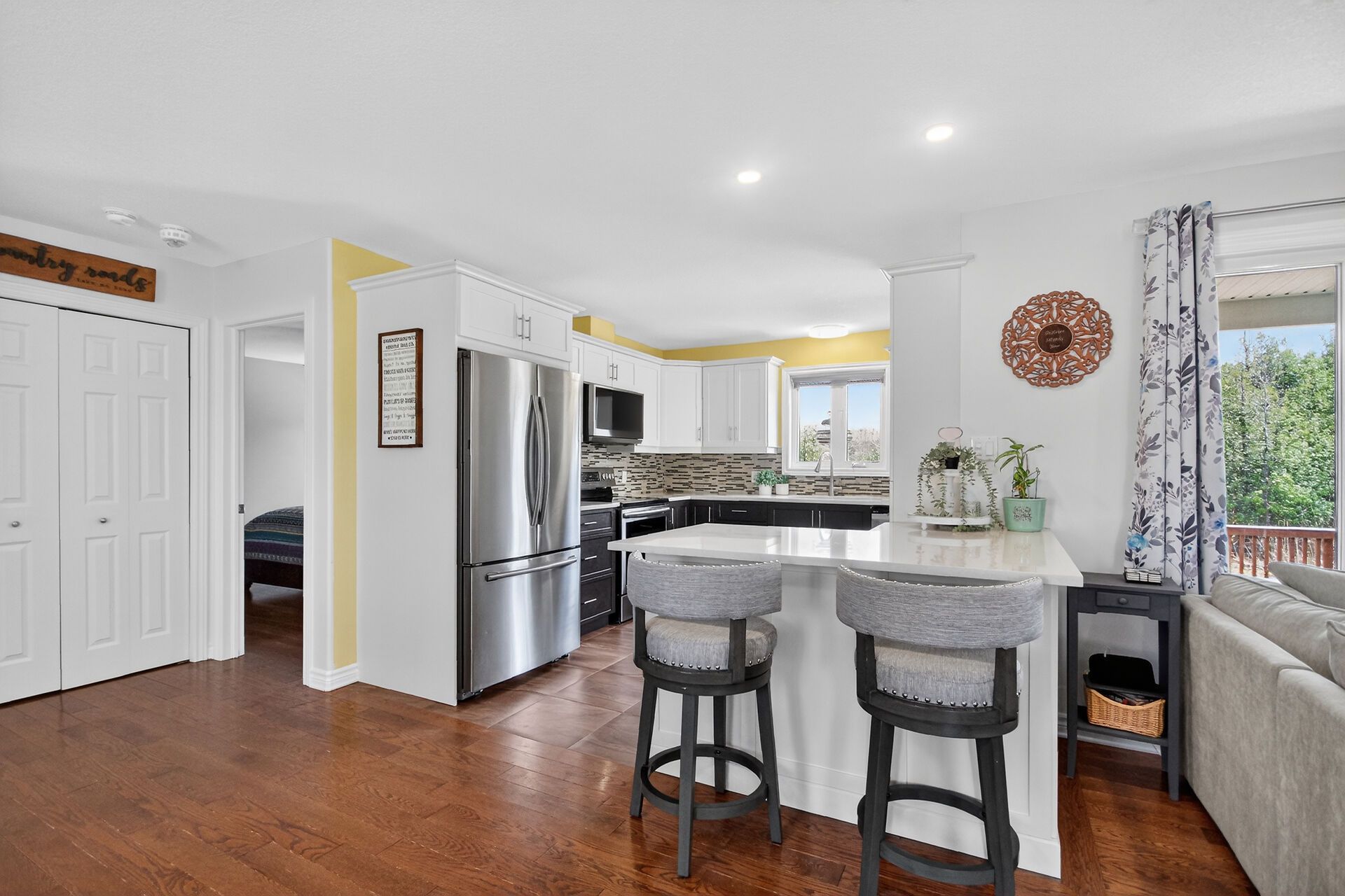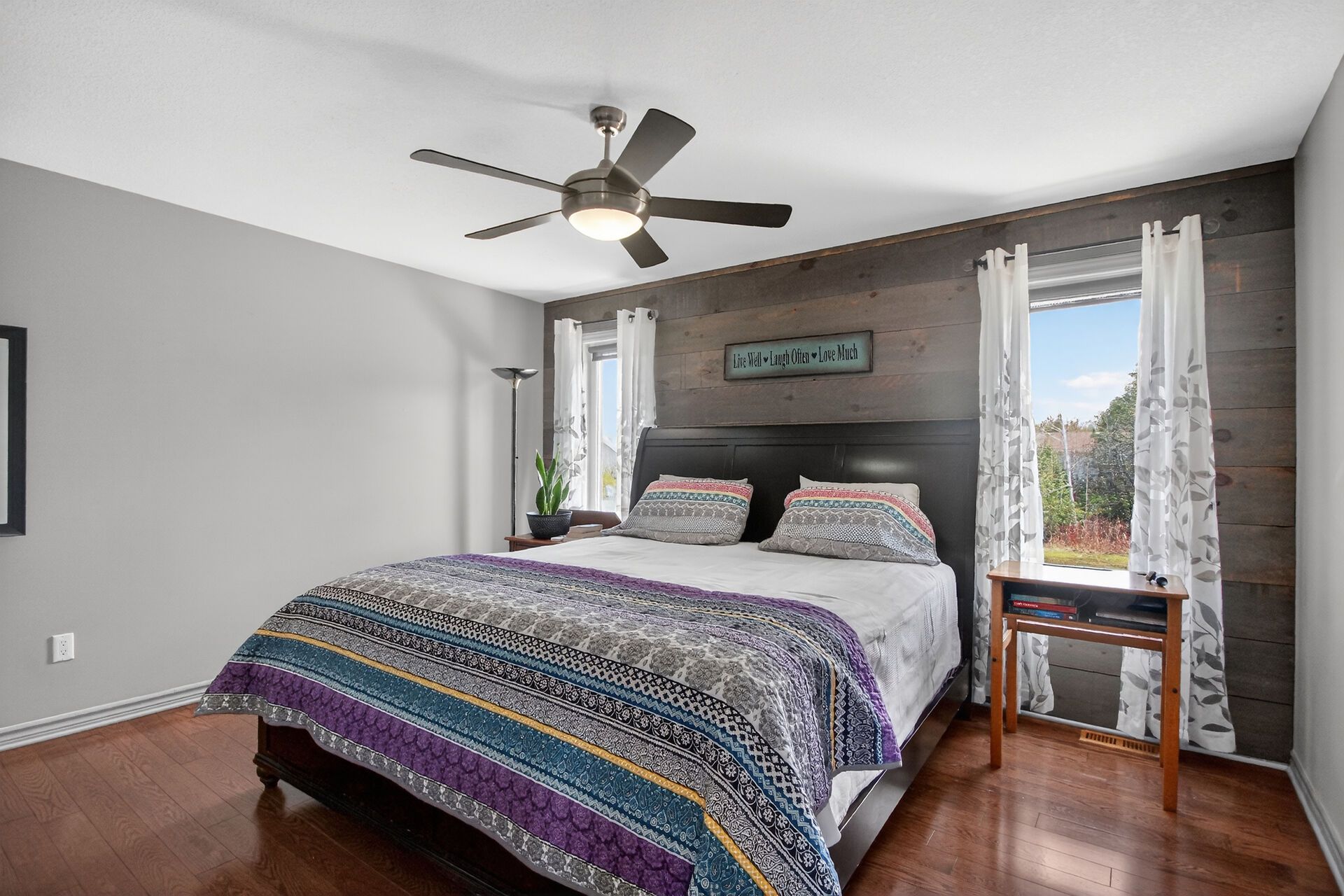Welcome to 109 stonewalk drive in stonehaven estates, a well maintained 2016 parkview homes bexley model set on a 1. 02-acre corner lot. Located just minutes from kemptville and the 416, this 1,438 sq. Ft. Move-in-ready home with a great layout for entertaining. The bright, open-concept main floor features hardwood and tile flooring, quartz countertops, and a kitchen with extended cabinetry and newer appliances leading to a multi-level deck. The primary suite includes a walk-in closet with custom cabinetry and an ensuite and a glass shower. Two additional bedrooms, a full bathroom, and a laundry mudroom complete the level. The fully finished basement offers a large recreation area, custom bar, den, fourth bedroom, and full bathroom. The professionally landscaped exterior serves as a private oasis with a heated above-ground chlorine pool, irrigation system, and paved driveway. Perimeter willows provide summer privacy. Notable upgrades include bluetooth glo soffit lighting (2021), keyless entry (2021), and a newer washer and dryer (2022), pool heater 2025.
