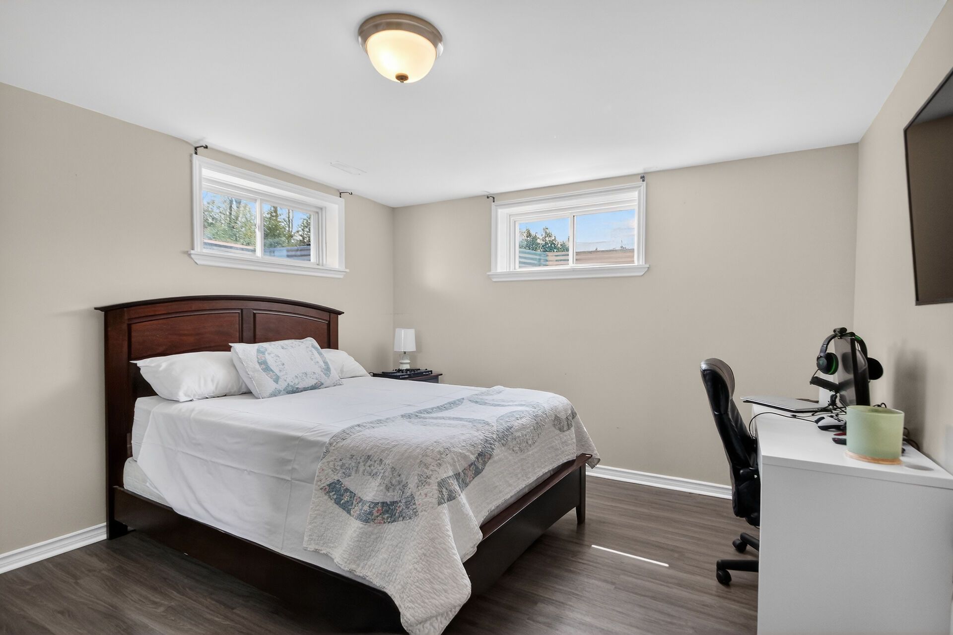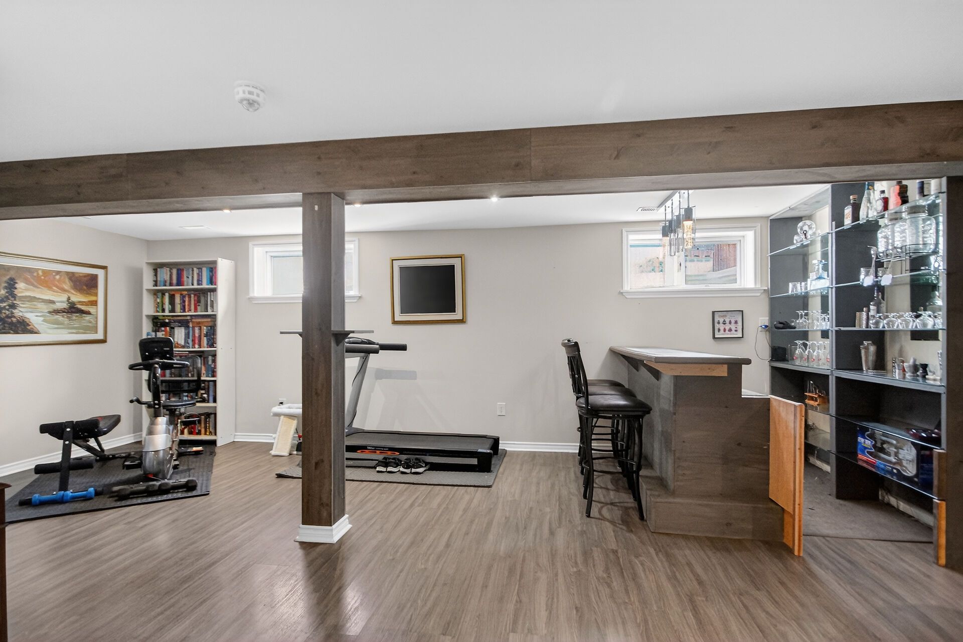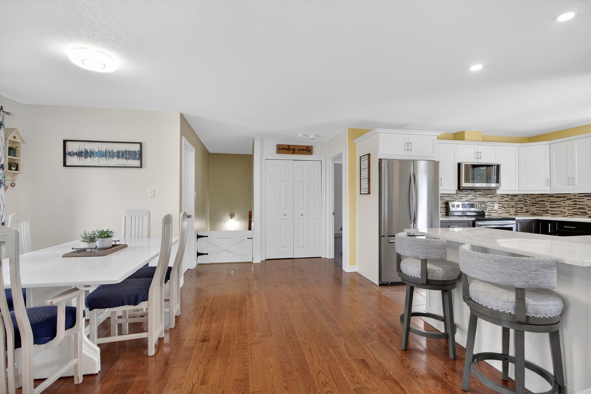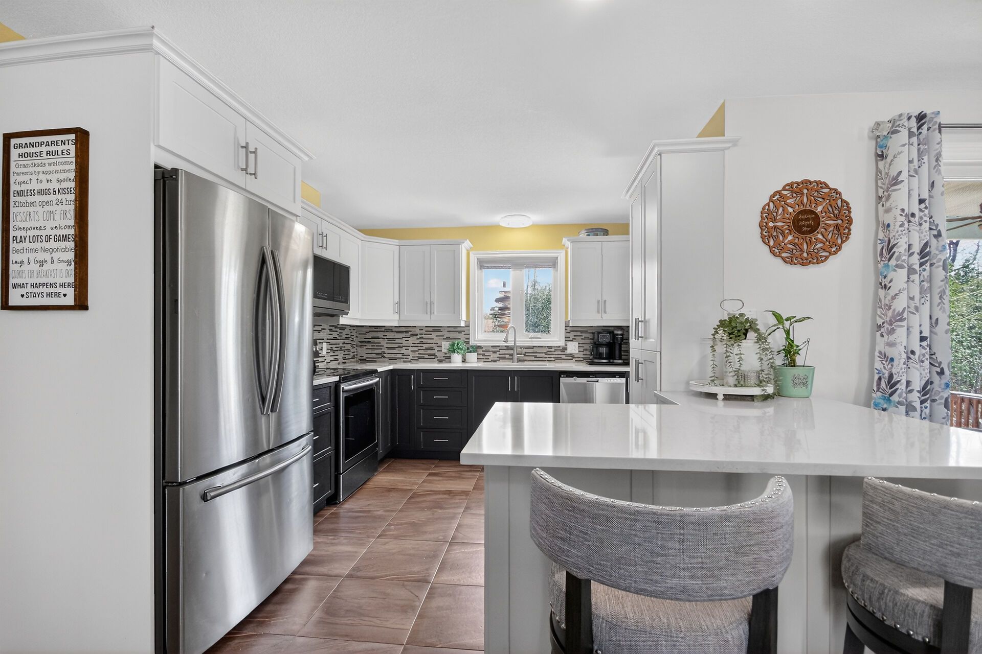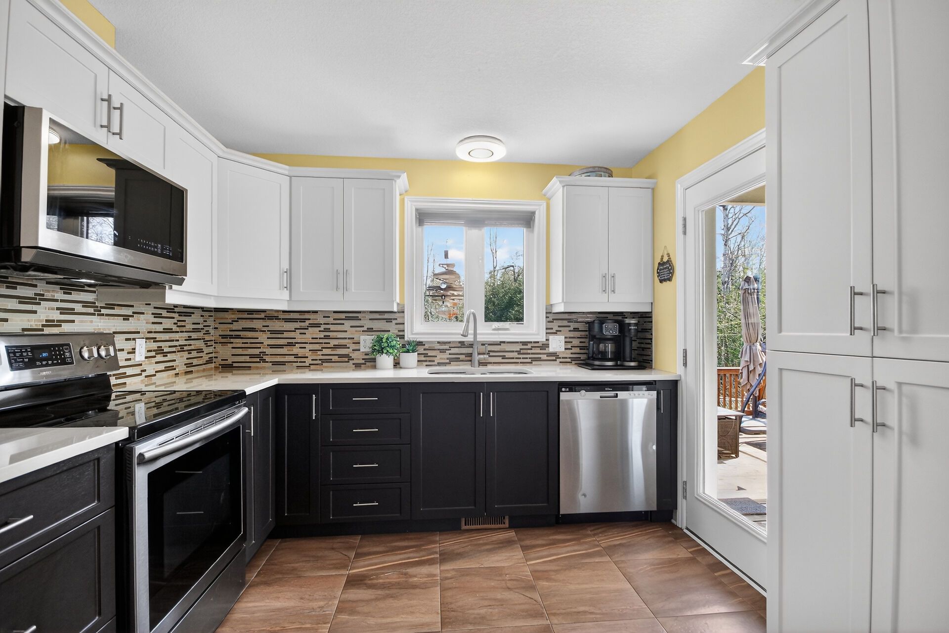 Welcome to 109 stonewalk drive in stonehaven estates, a well maintained 2016 parkview homes bexley model set on a 1. 02-acre corner lot. Located just minutes from kemptville and the 416, this 1,438 sq. Ft. Move-in-ready home with a great layout for entertaining. The bright, open-concept main floor features hardwood and tile flooring, quartz countertops, and a kitchen with extended cabinetry and newer appliances leading to a multi-level deck. The primary suite includes a walk-in closet with custom cabinetry and an ensuite and a glass shower. Two additional bedrooms, a full bathroom, and a laundry mudroom complete the level. The fully finished basement offers a large recreation area, custom bar, den, fourth bedroom, and full bathroom. The professionally landscaped exterior serves as a private oasis with a heated above-ground chlorine pool, irrigation system, and paved driveway. Perimeter willows provide summer privacy. Notable upgrades include bluetooth glo soffit lighting (2021), keyless entry (2021), and a newer washer and dryer (2022), pool heater 2025.