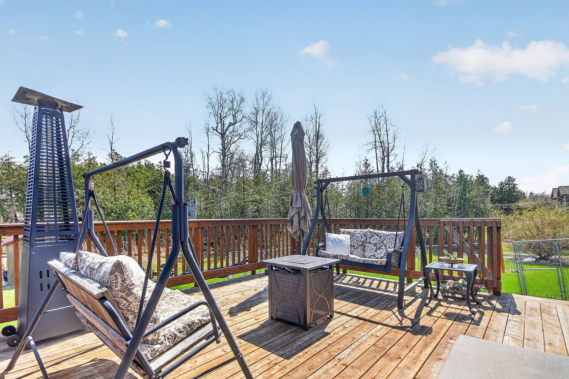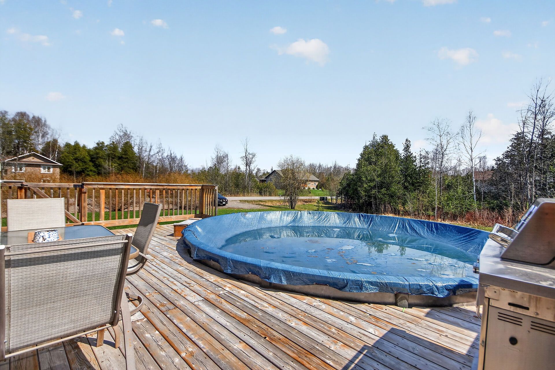 • Multi-level deck and heated above-ground pool for outdoor enjoyment.