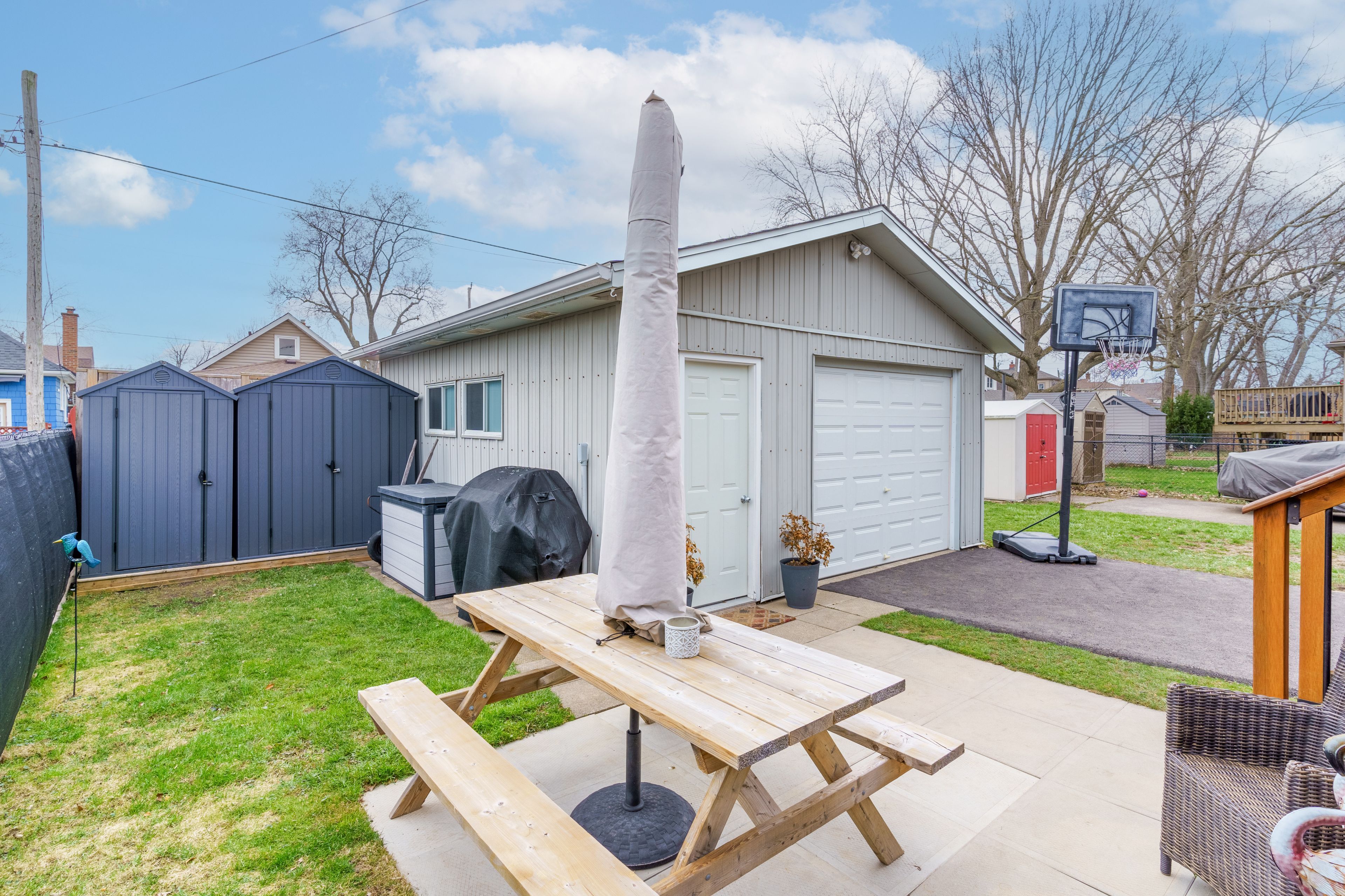 • Heated 1.5 car garage with hydro, perfect for hobbyists and car enthusiasts.