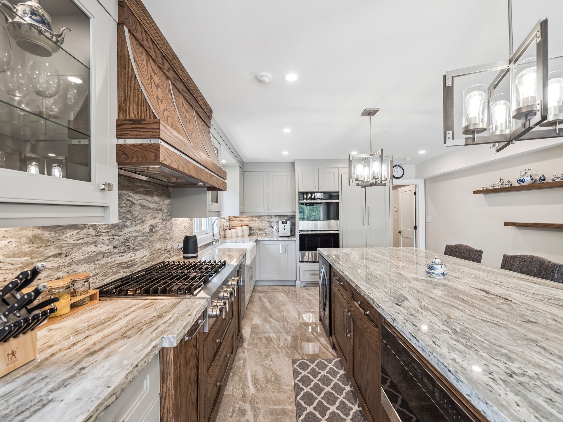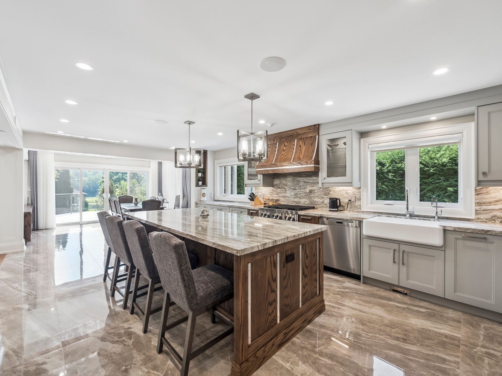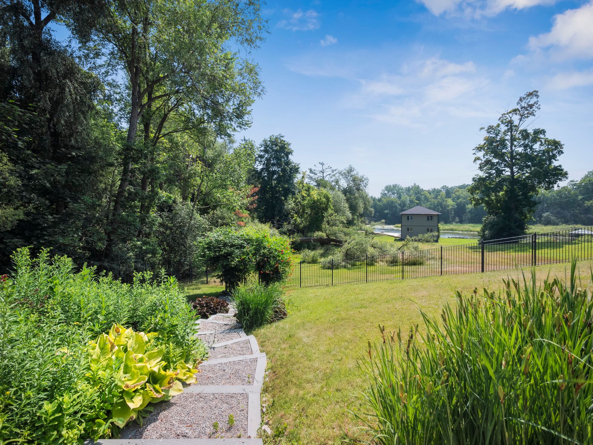 • Custom stone and wood home with three levels and abundant natural light.