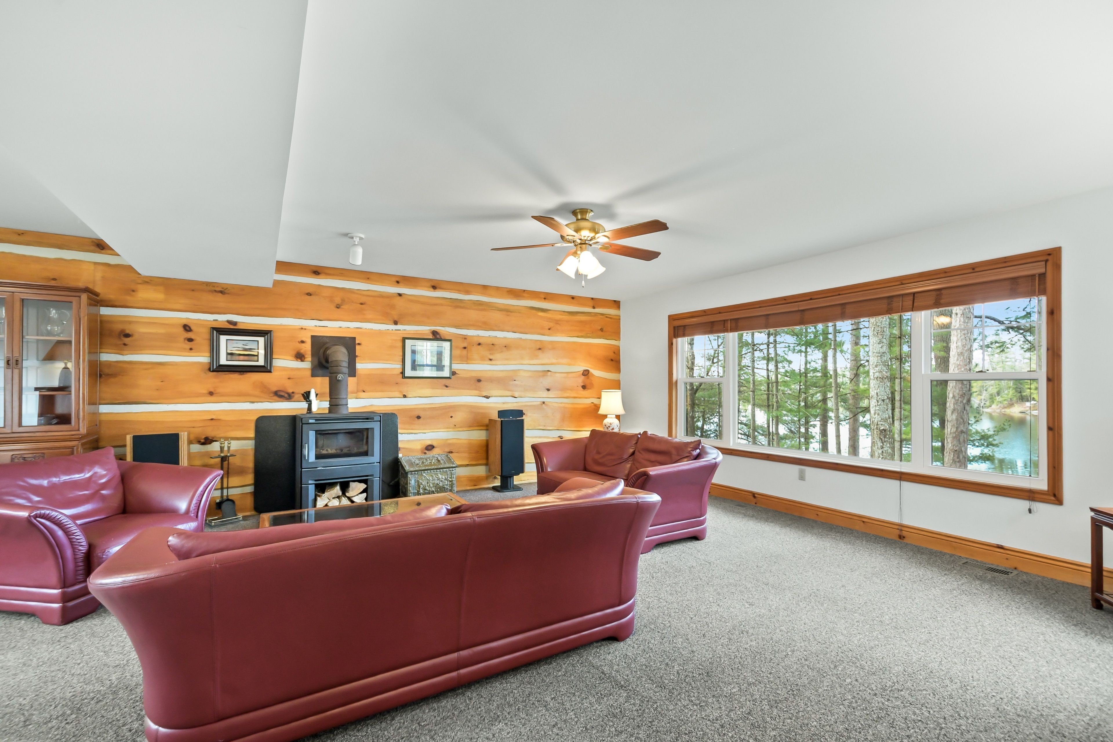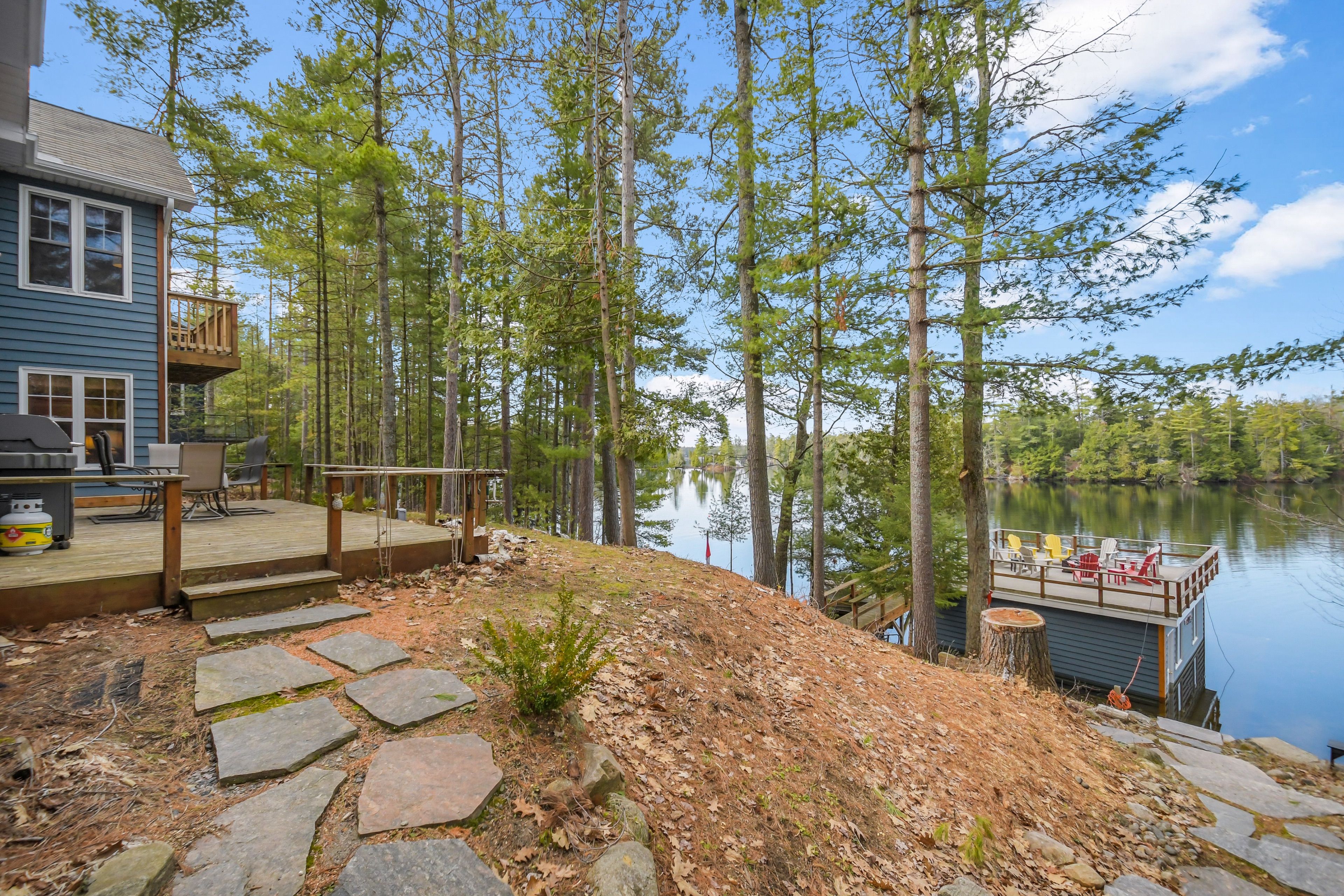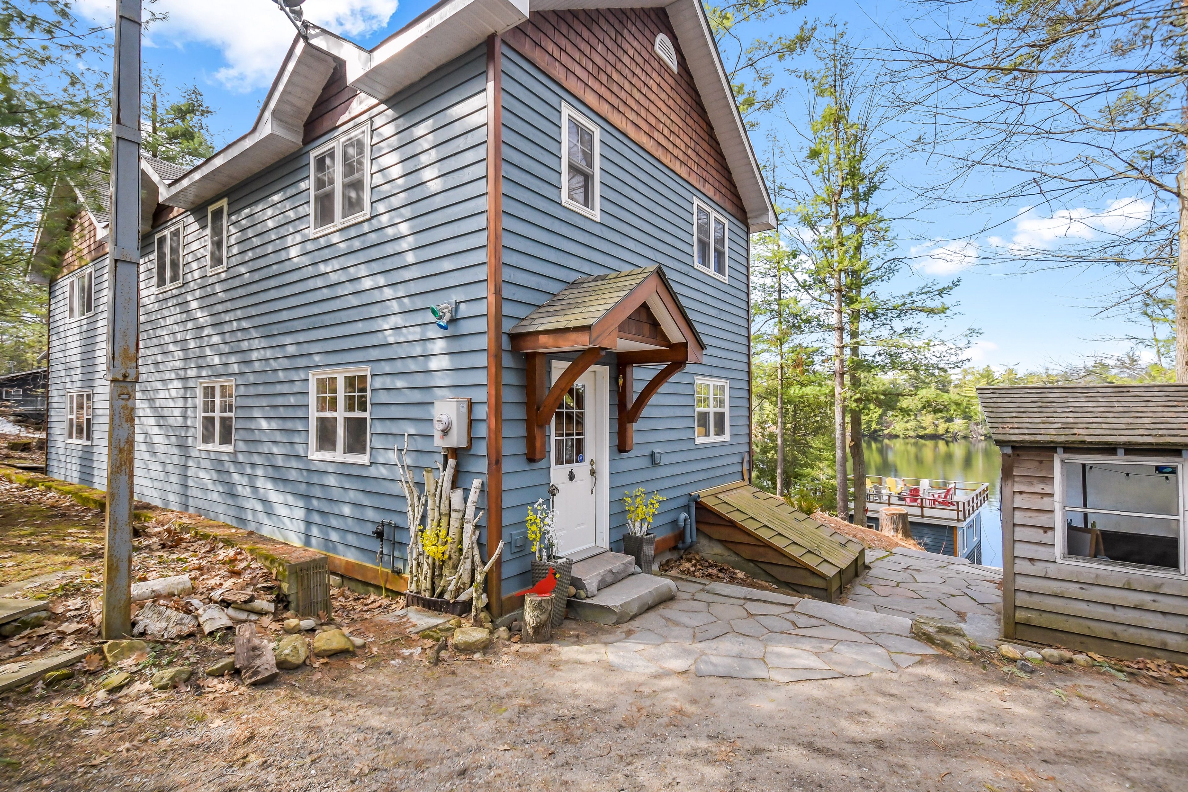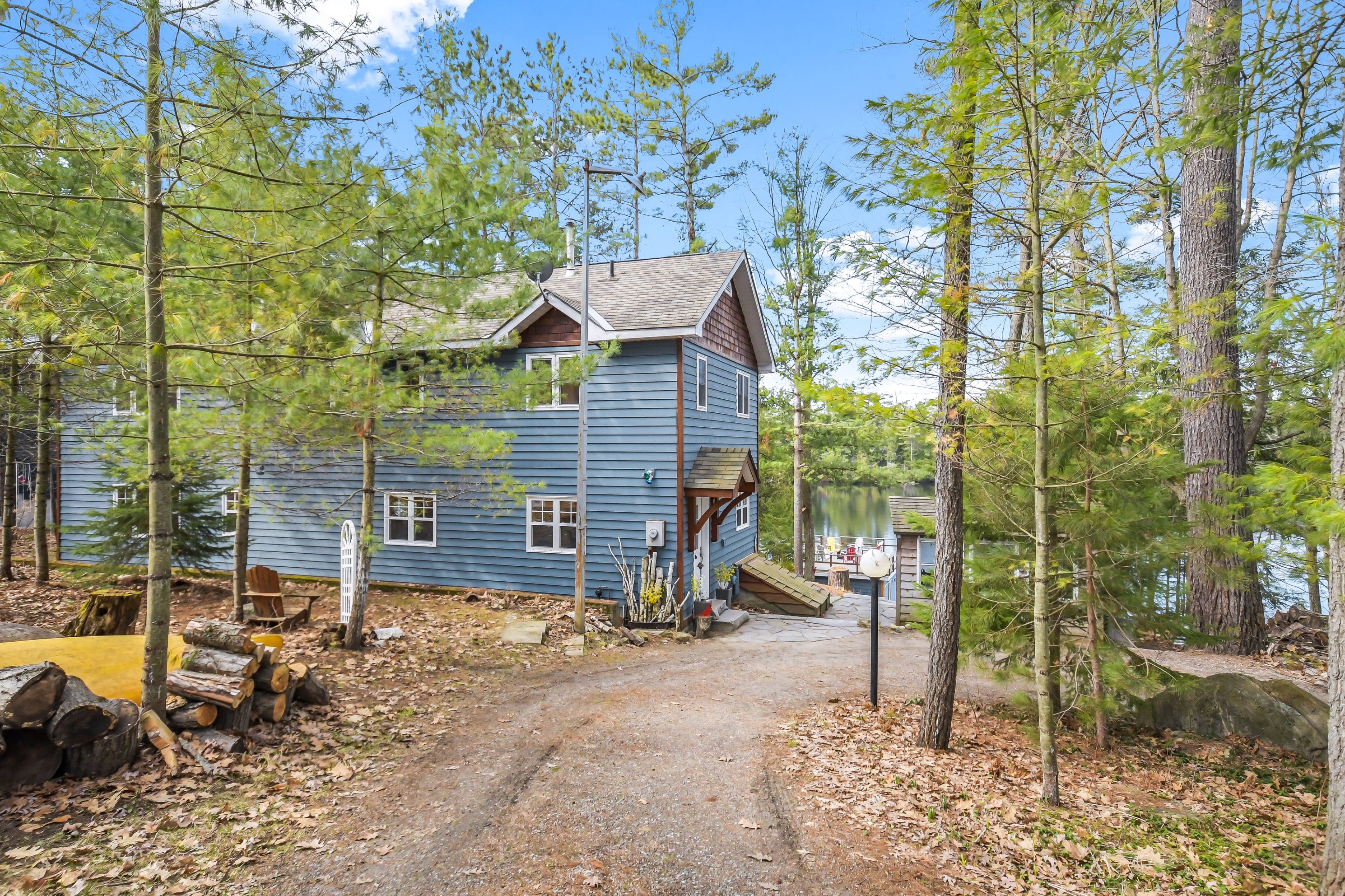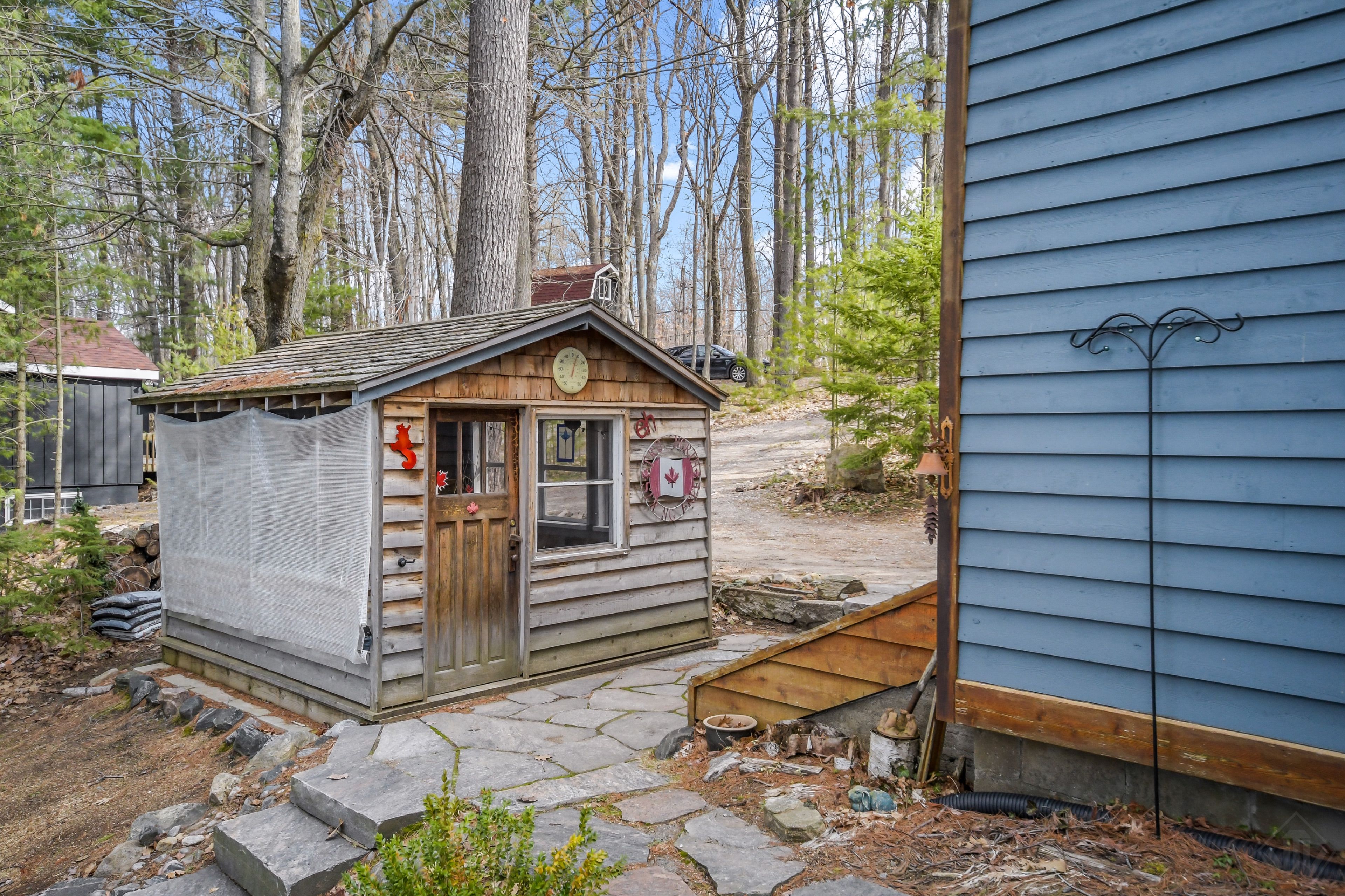 Nestled on 0. 51 acres of gently sloping terrain with 102 feet of coveted south-west facing waterfront, this beautifully maintained 2,400 sq ft fully winterized cottage offers the perfect blend of comfort, charm, and four-season enjoyment. With 4 bedrooms and 3 bathrooms, there is ample room for family and guests to relax and unwind. Enjoy a peaceful setting on a quiet private road with a picturesque island-dotted view and breathtaking sunsets across the water. The shoreline features an oversized single boathouse with sundeck, ideal for lakeside lounging and sunbathing, plus a shallow sandy entry that is perfect for kids and retirees alike. Inside, the cottage offers warm and inviting living spaces designed for all seasons, highlighted by an authentic wett certified woodstove that adds classic cottage charm. The home is equipped for year-round use with forced air furnace and a heated waterline with uv system. Enjoy being bug free in your own gazebo/artist studio surrounded by forest and water great for kids and grandkids. A detached double-car garage provides excellent storage for boats, vehicles, tools, and recreational gear. A 17kw generac generator provides winter security for the harshest storms. Whether you're seeking a serene family retreat, a year-round waterfront home, or the ultimate place to entertain, this exceptional property delivers privacy, functionality, and timeless cottage appeal in a highly desirable setting.