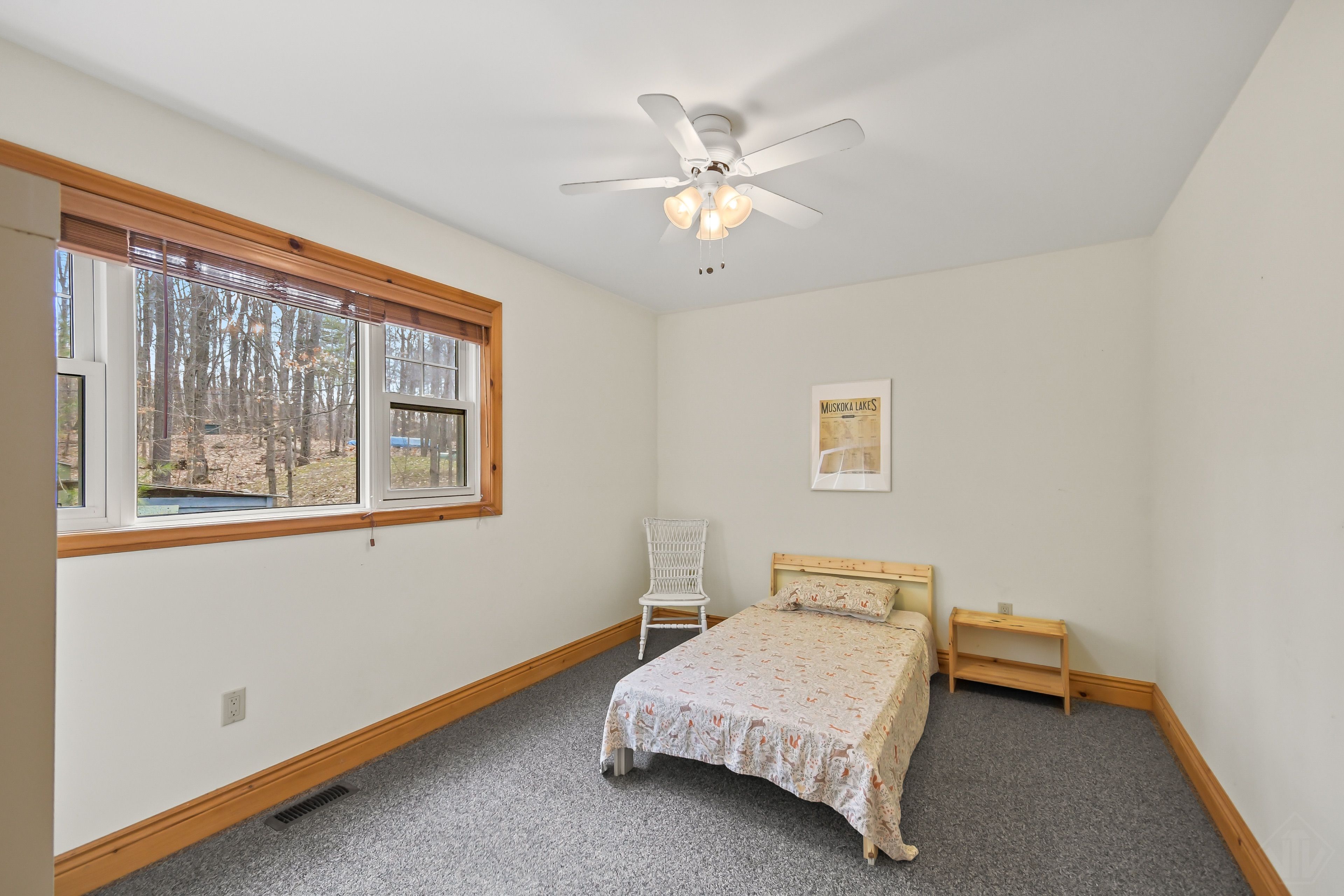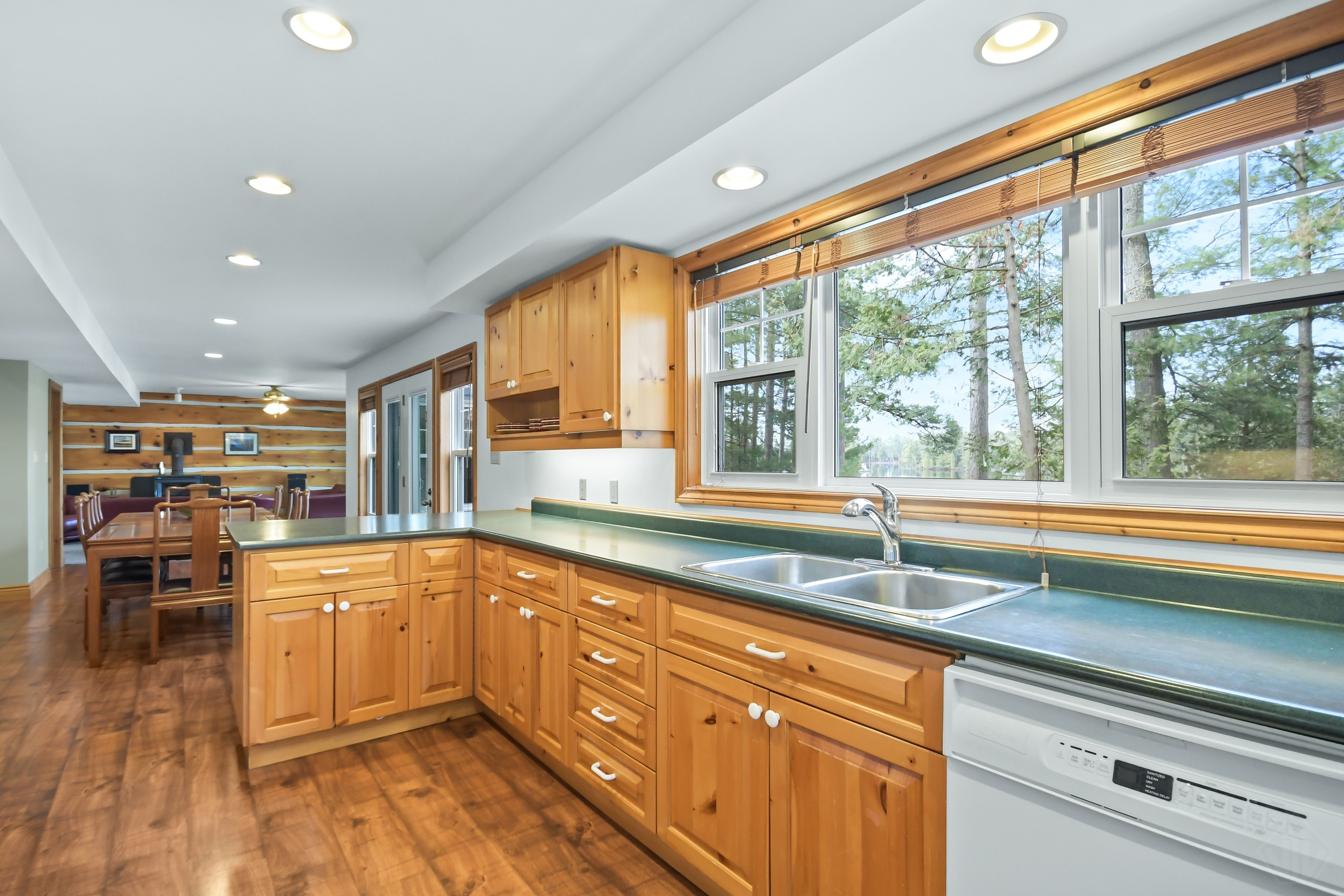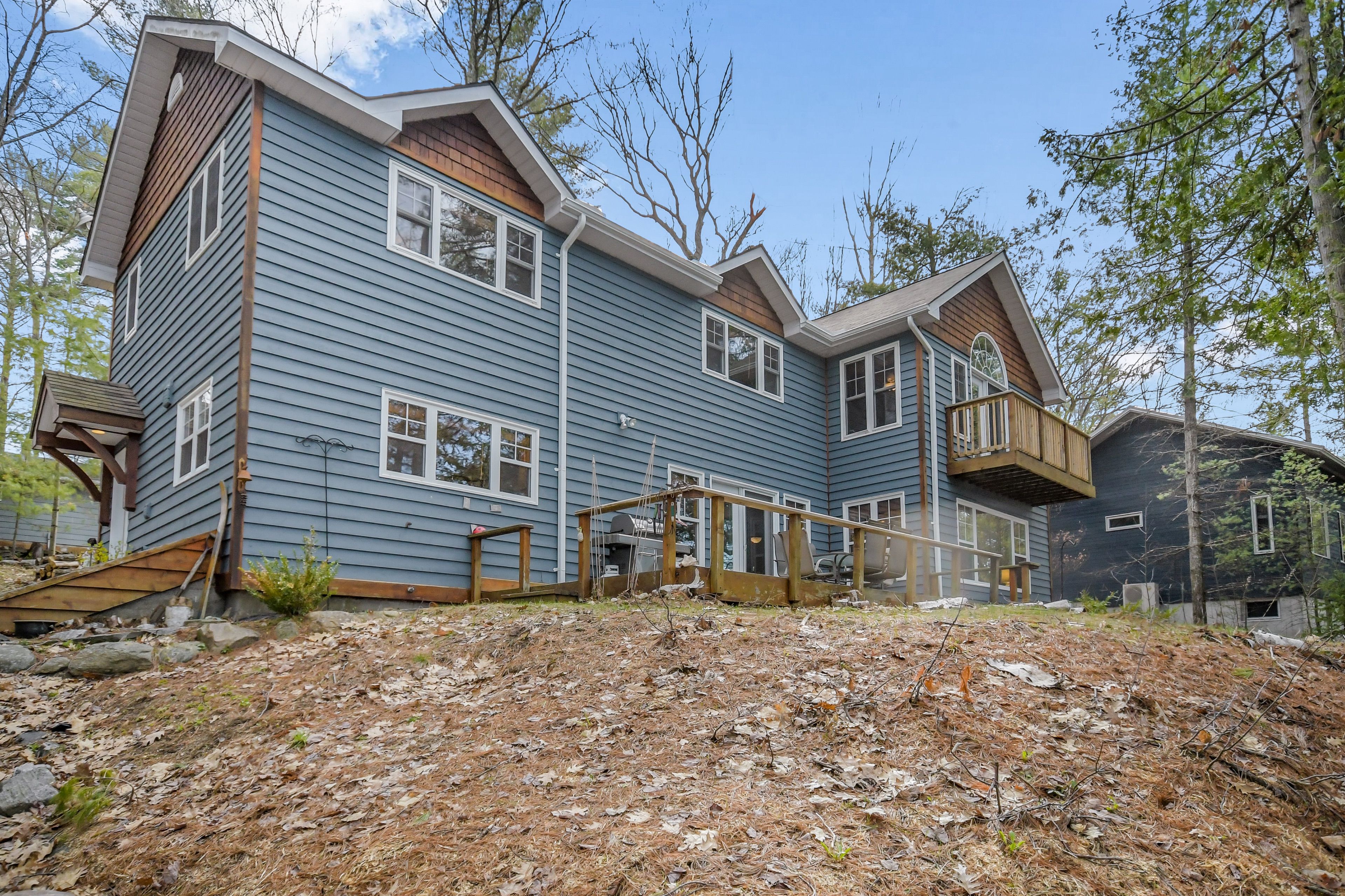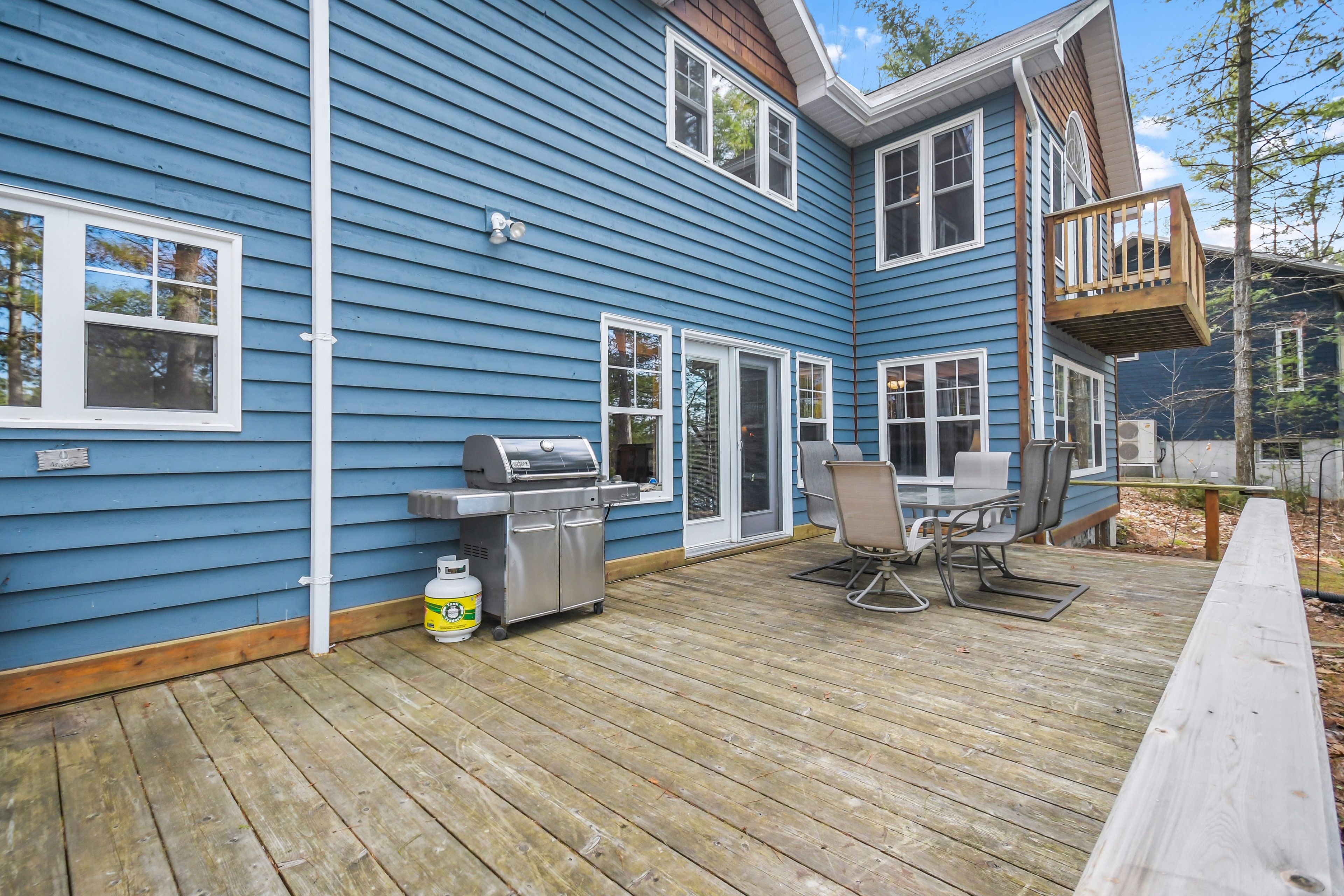 Nestled on 0. 51 acres of gently sloping terrain with 102 feet of coveted south-west facing waterfront, this beautifully maintained 2,400 sq ft fully winterized cottage offers the perfect blend of comfort, charm, and four-season enjoyment. With 4 bedrooms and 3 bathrooms, there is ample room for family and guests to relax and unwind. Enjoy a peaceful setting on a quiet private road with a picturesque island-dotted view and breathtaking sunsets across the water. The shoreline features an oversized single boathouse with sundeck, ideal for lakeside lounging and sunbathing, plus a shallow sandy entry that is perfect for kids and retirees alike. Inside, the cottage offers warm and inviting living spaces designed for all seasons, highlighted by an authentic wett certified woodstove that adds classic cottage charm. The home is equipped for year-round use with forced air furnace and a heated waterline with uv system. Enjoy being bug free in your own gazebo/artist studio surrounded by forest and water great for kids and grandkids. A detached double-car garage provides excellent storage for boats, vehicles, tools, and recreational gear. A 17kw generac generator provides winter security for the harshest storms. Whether you're seeking a serene family retreat, a year-round waterfront home, or the ultimate place to entertain, this exceptional property delivers privacy, functionality, and timeless cottage appeal in a highly desirable setting.