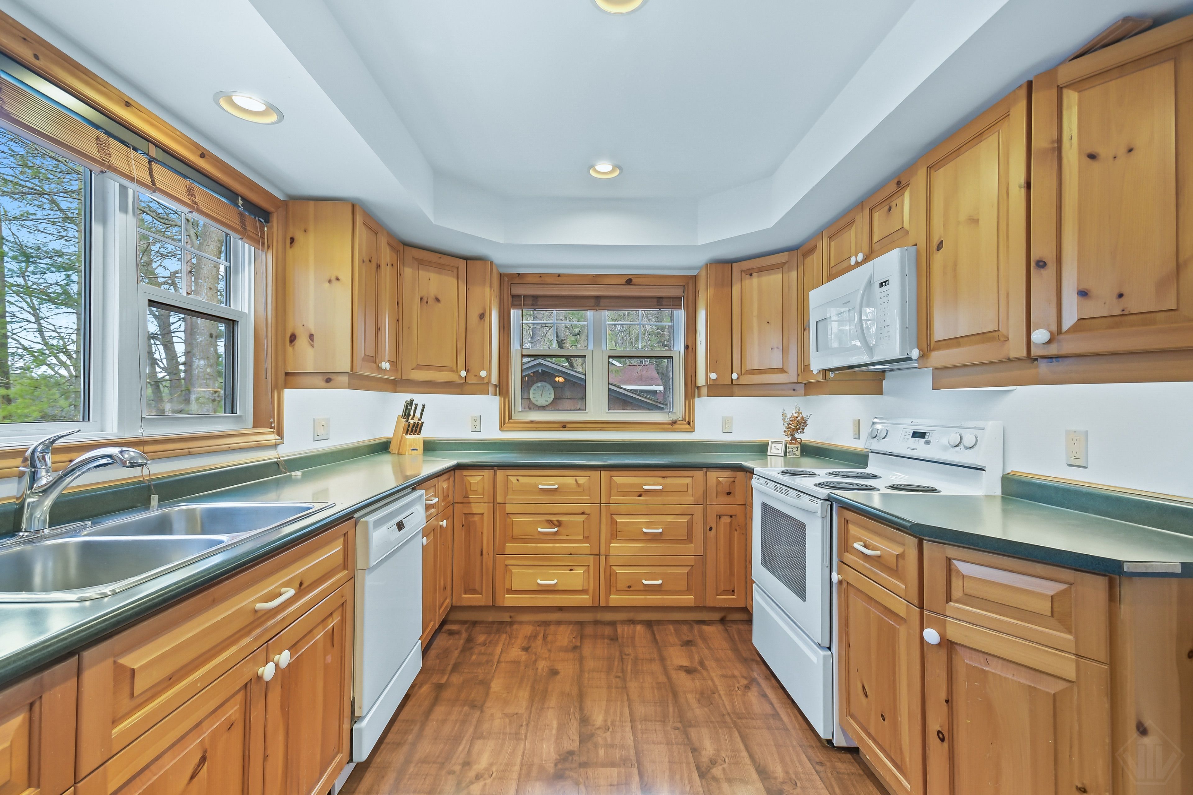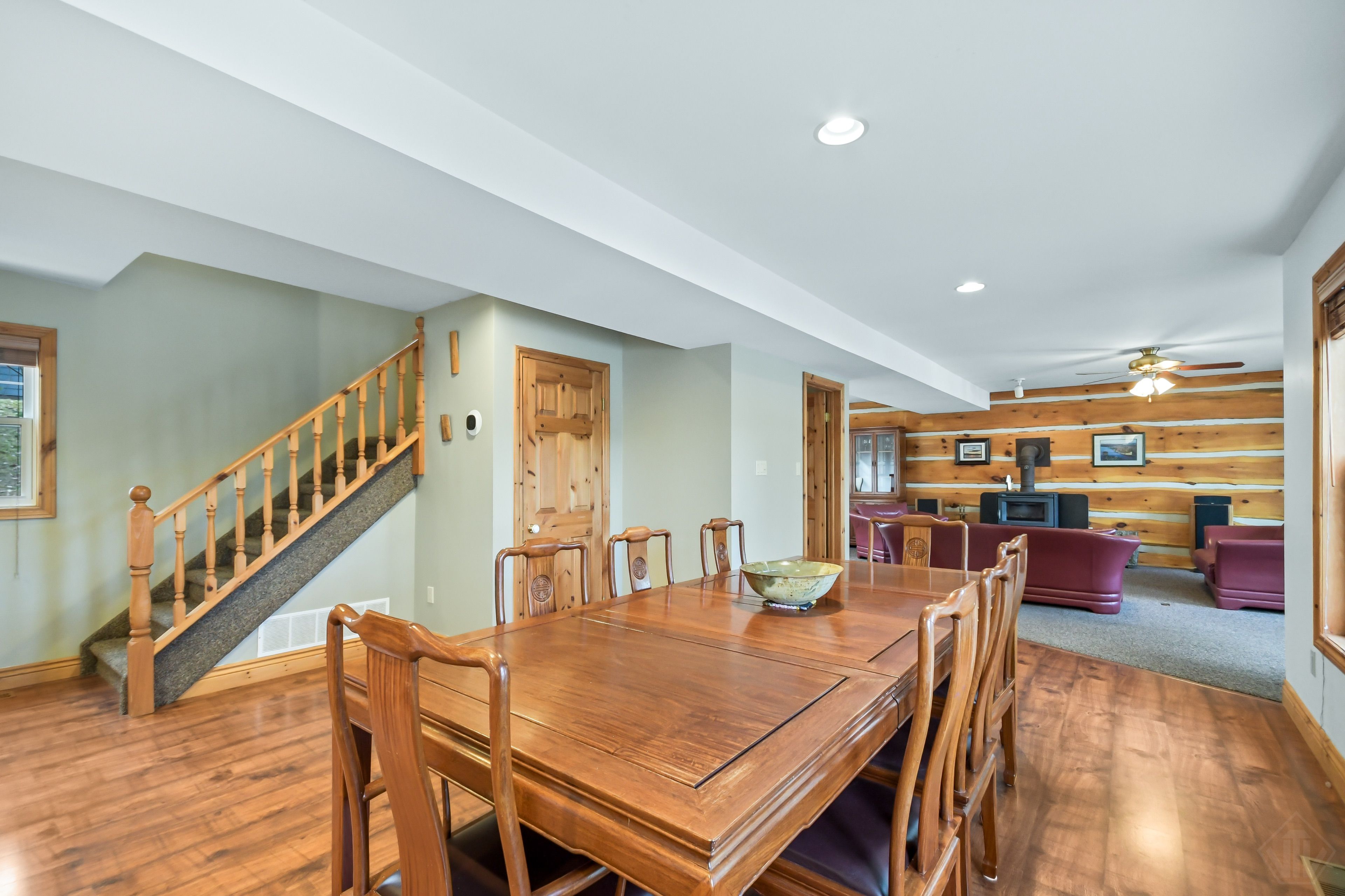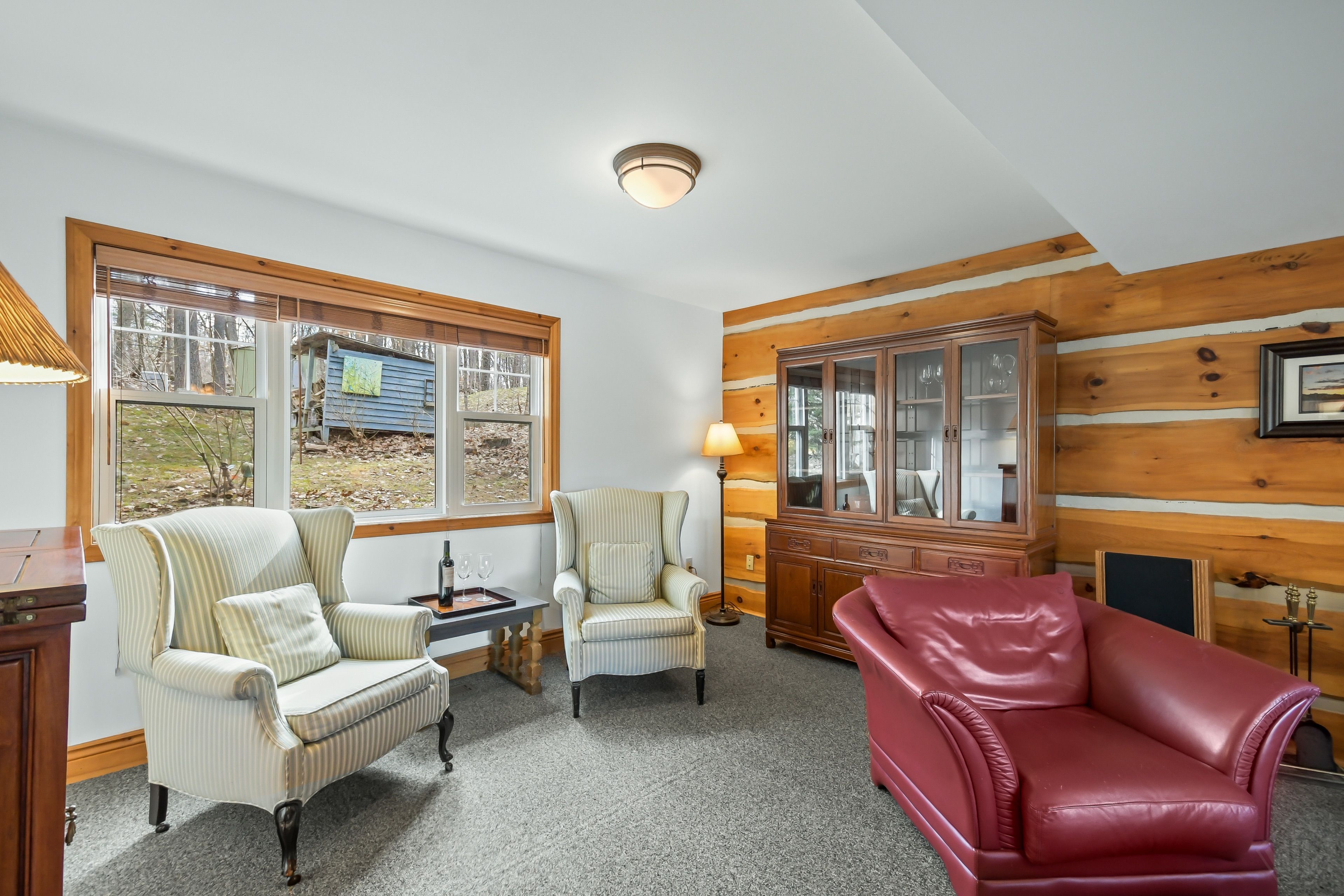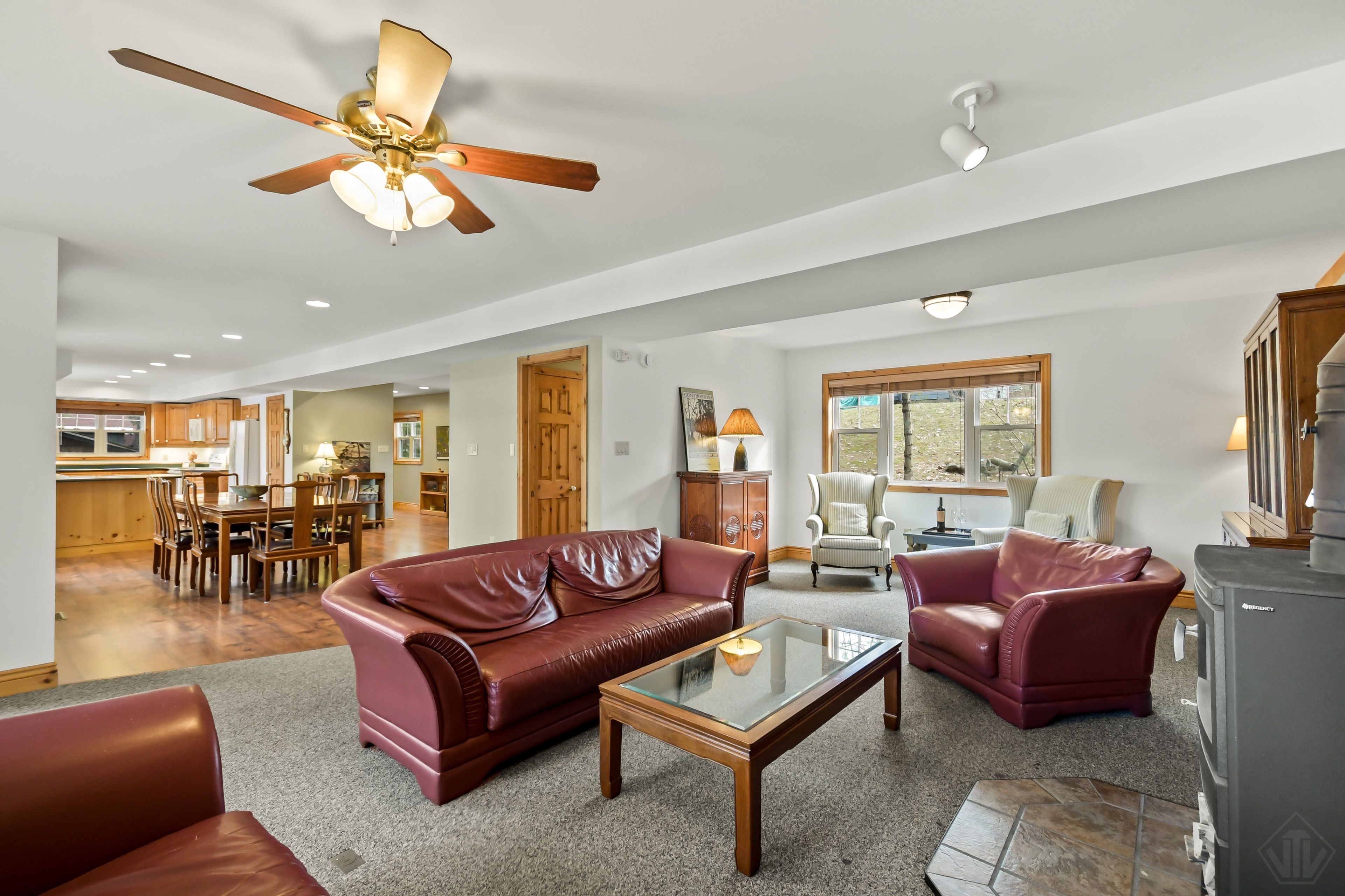 • Cozy living spaces, featuring a classic woodstove for comfort.