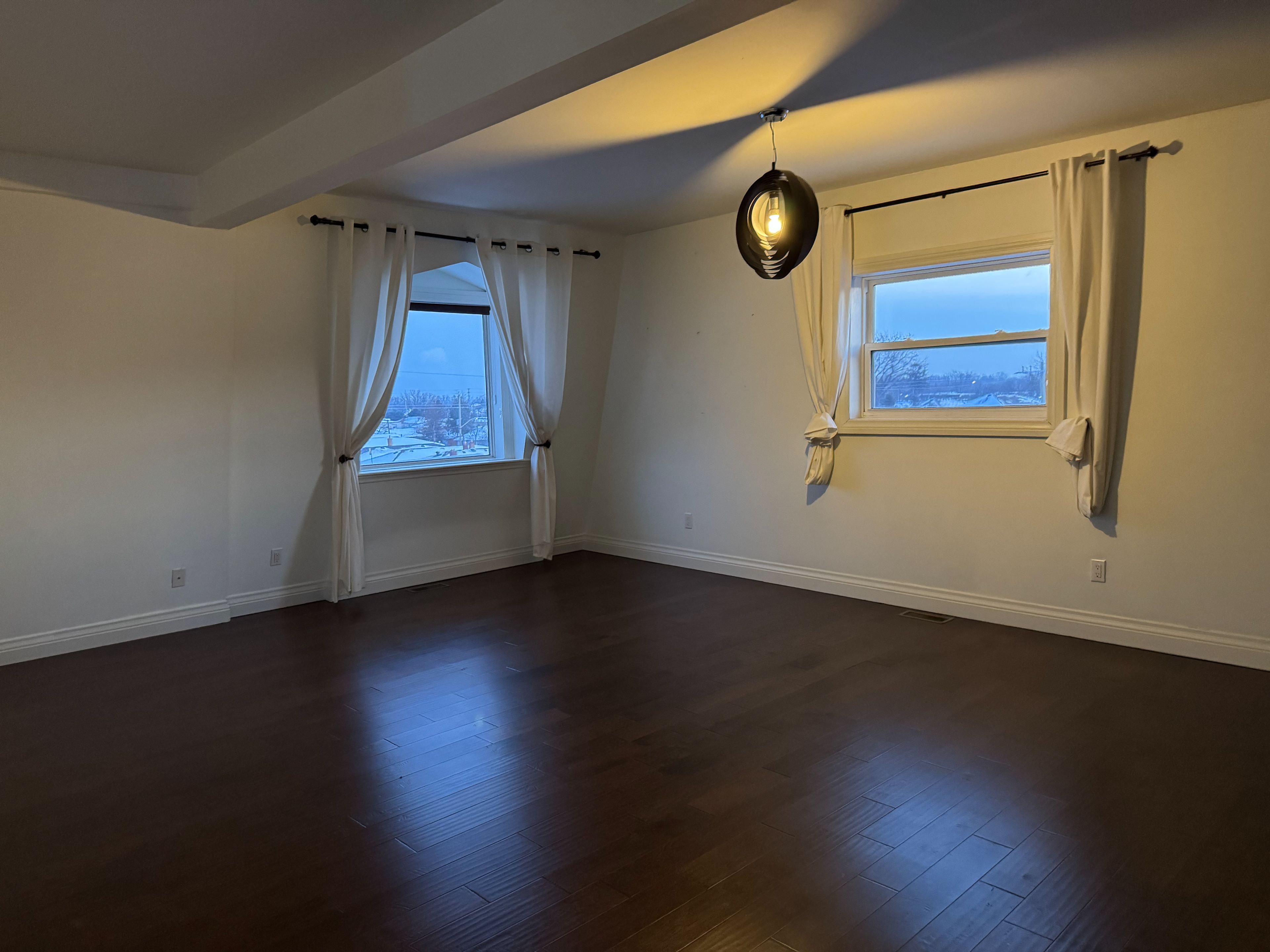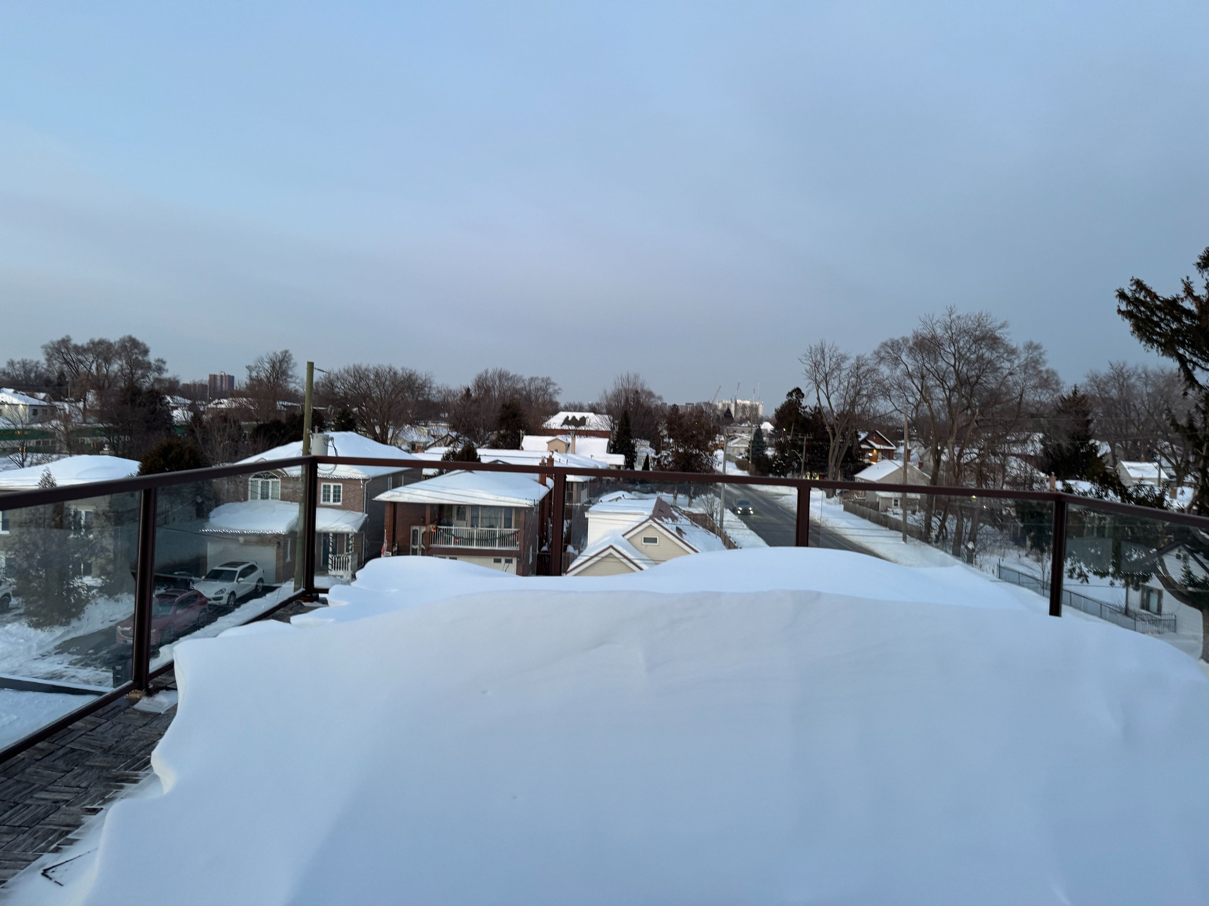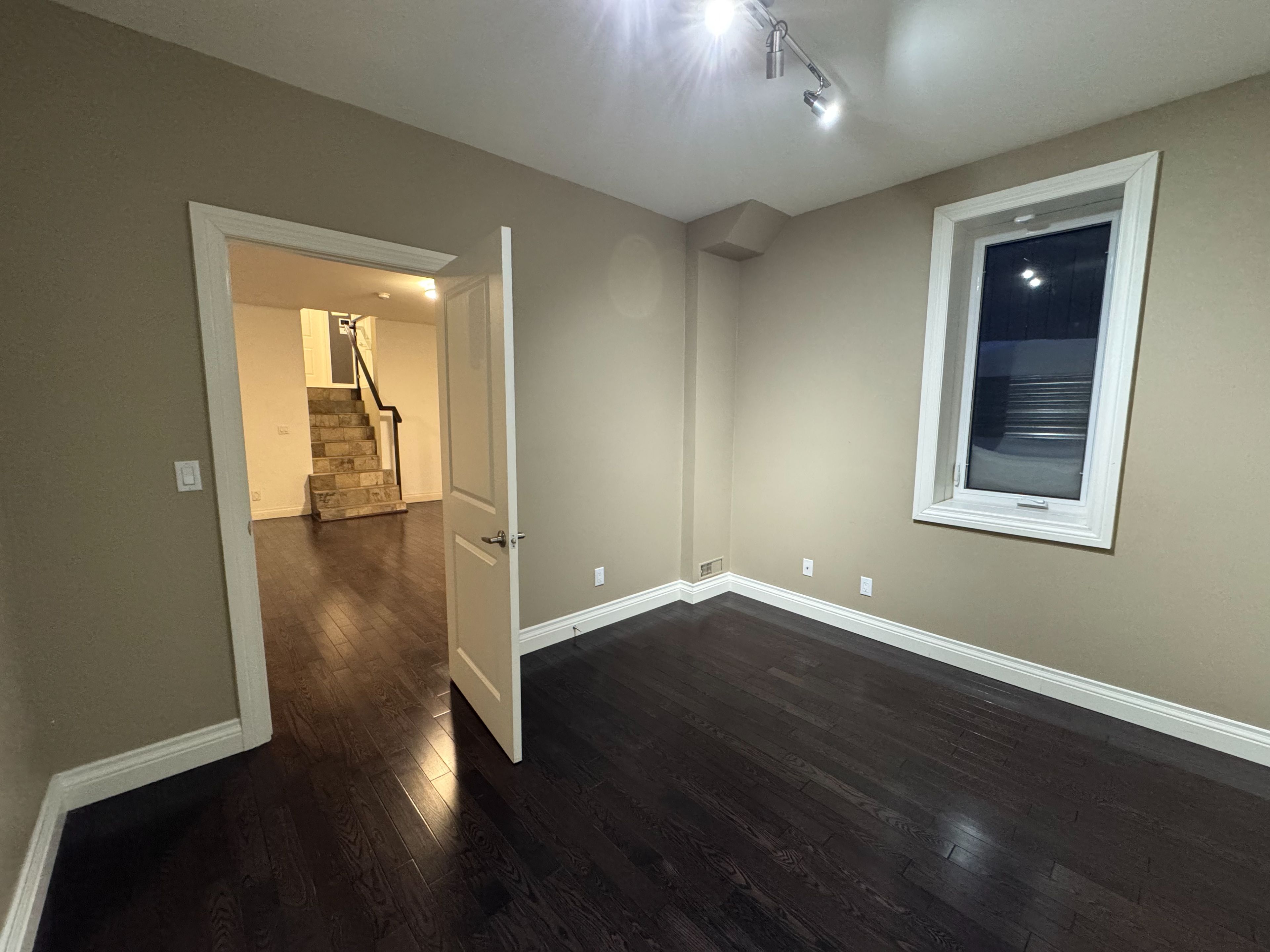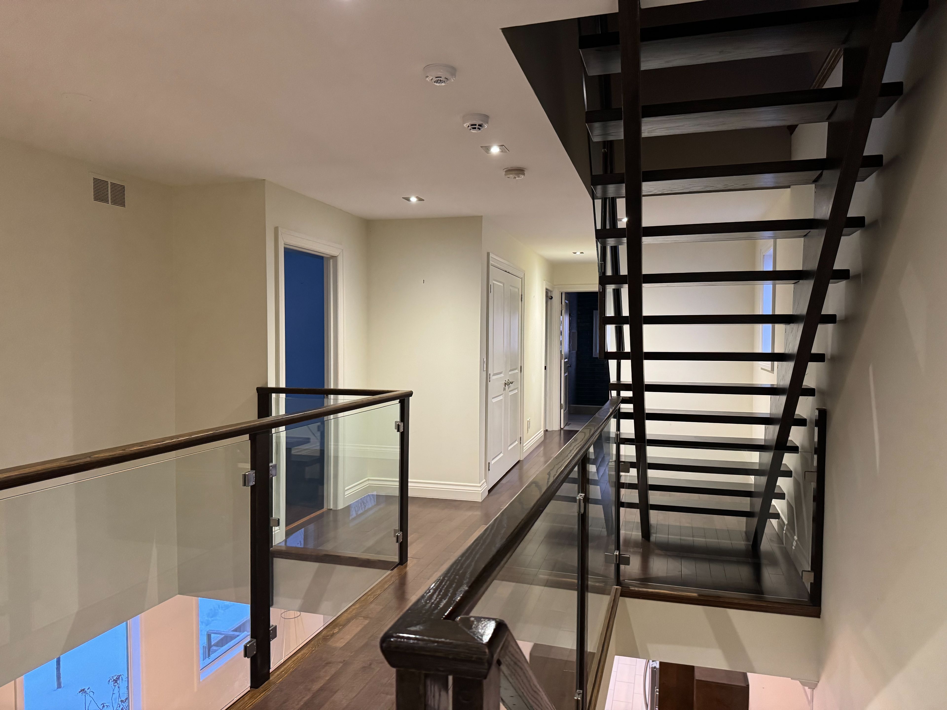 This residence offers approximately 4,785 sq ft of living space, including a bright lower level with above-grade windows and direct access to the garage. The open-concept main floor features generous ceiling heights, a centre-island kitchen with quartz countertops and integrated stainless steel appliances, and a living area with a linear fireplace. A glass and wood staircase with open risers leads to an elevated family room. The property also includes a private rooftop terrace. Conveniently located in mississauga's lakeview neighbourhood with easy access to highways.
