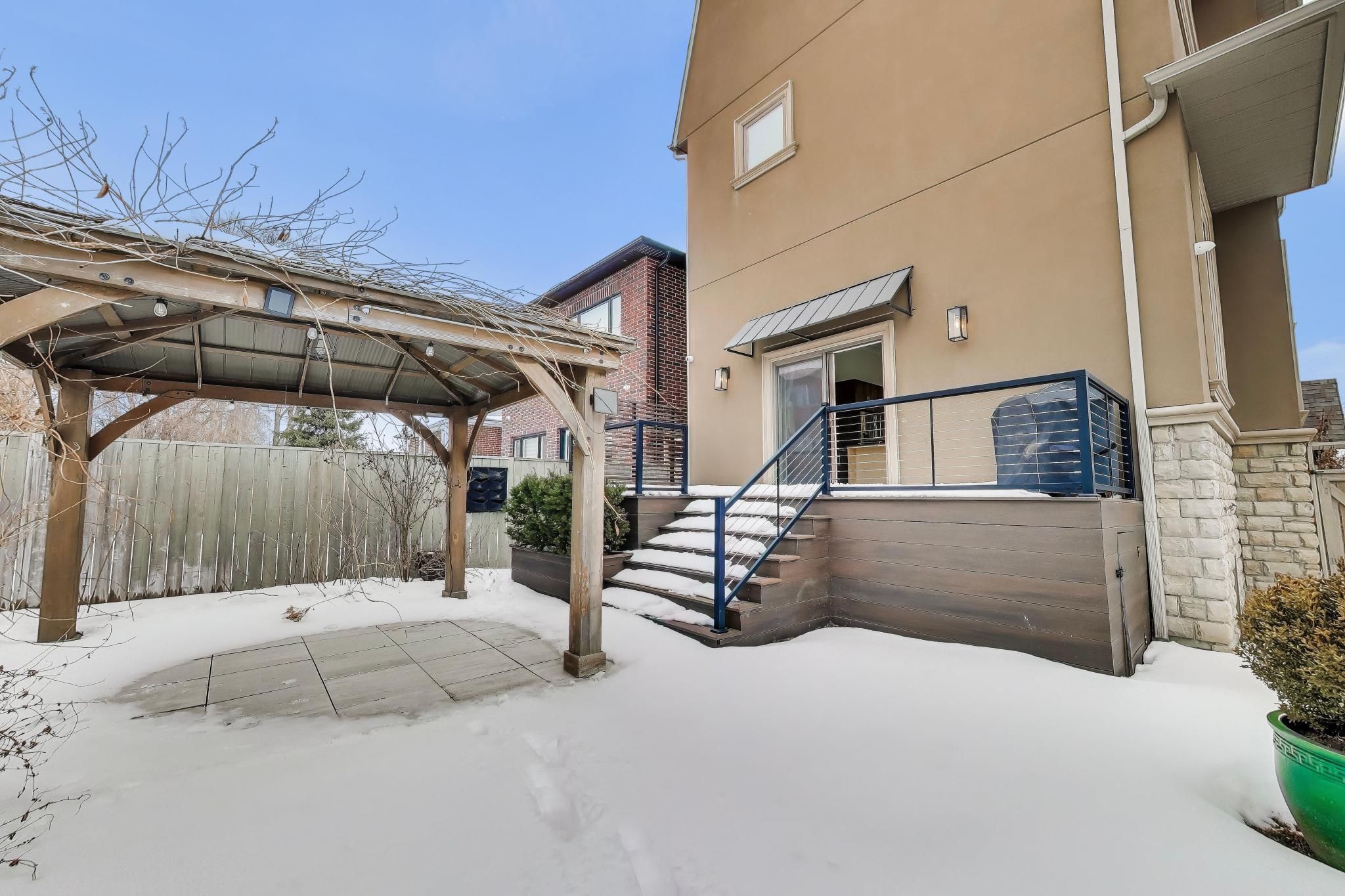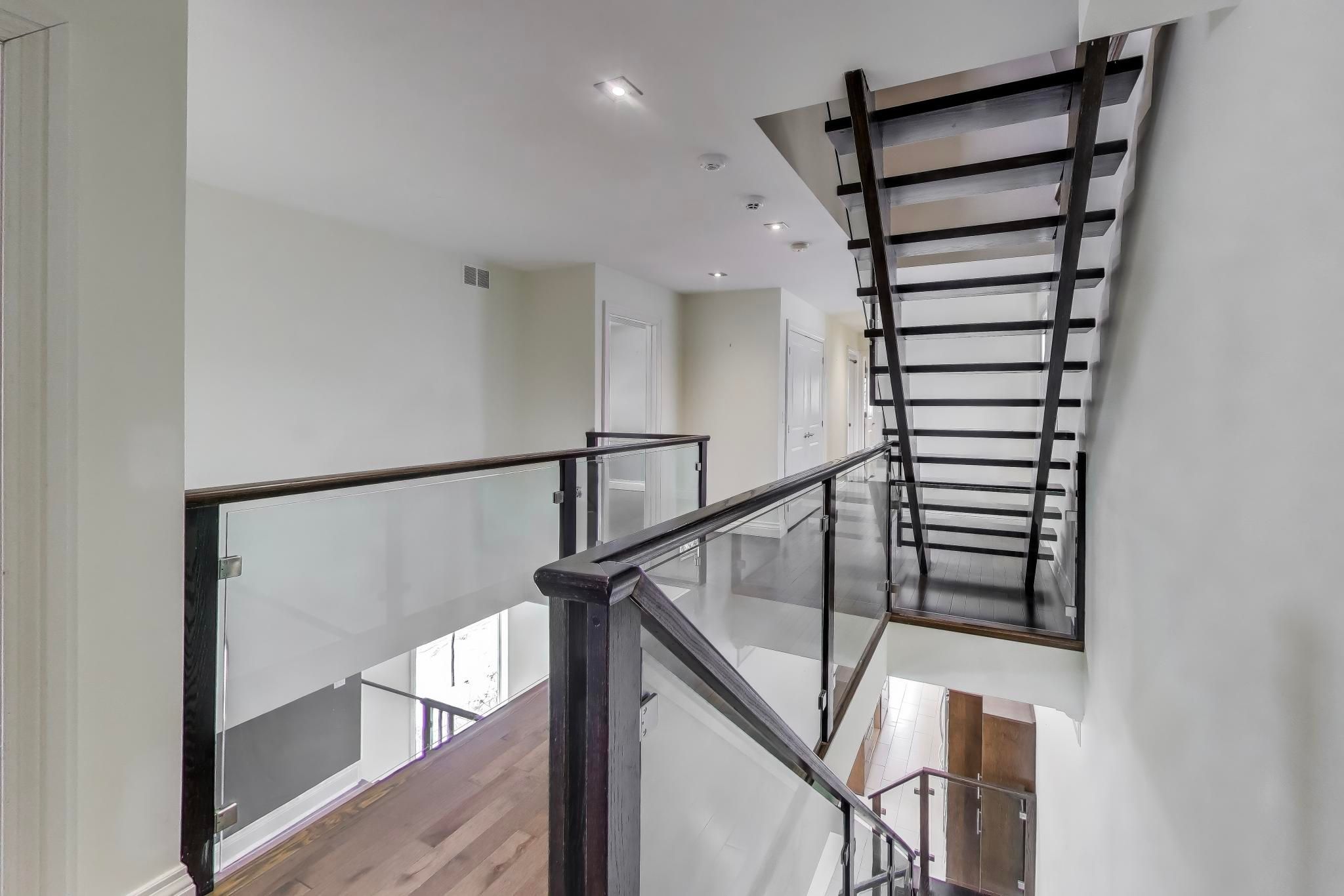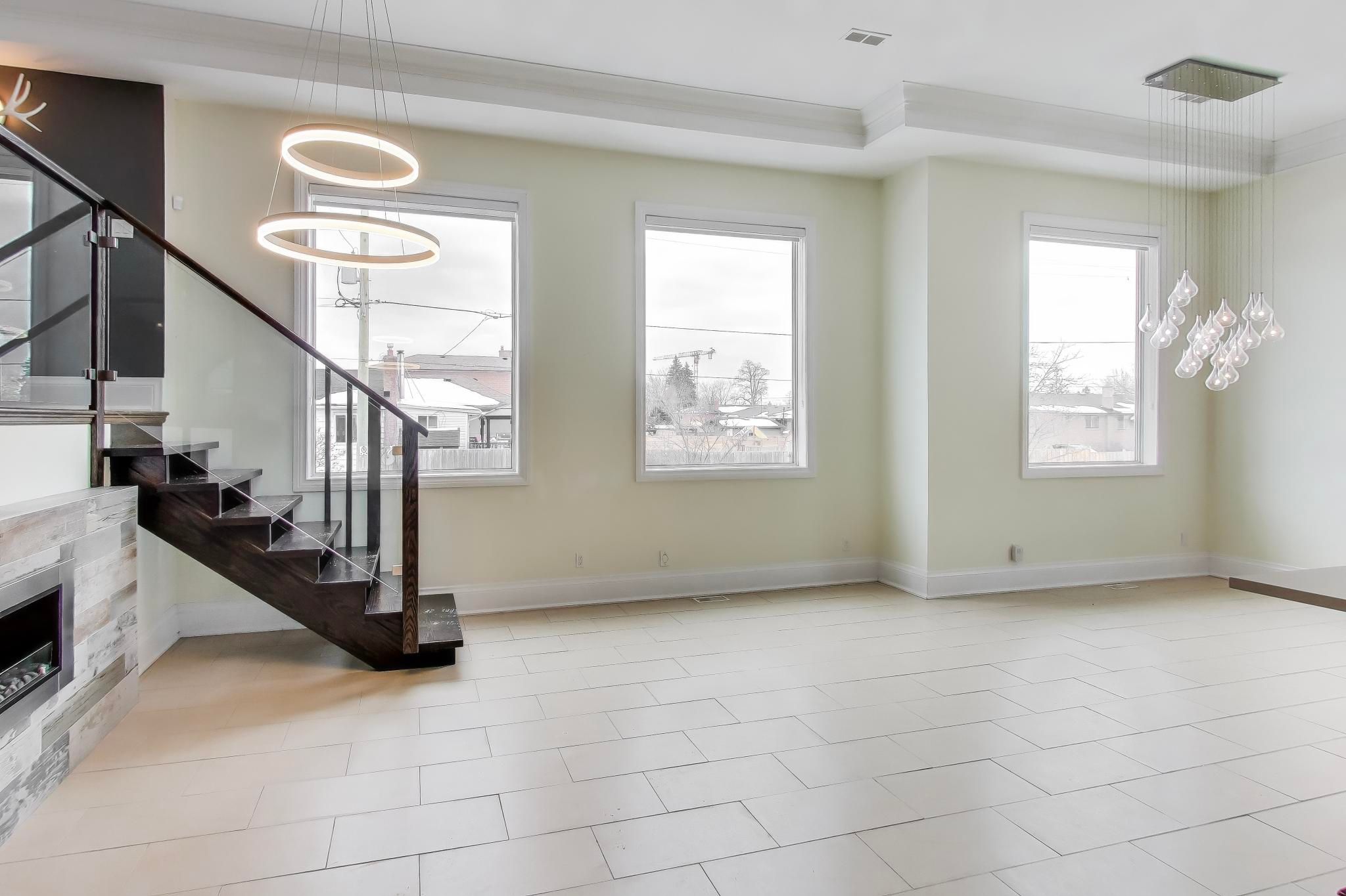 This residence offers approximately 4,785 sq ft of living space (incl. Bsmt), including a bright lower level with above-grade windows and direct access to the garage. The open-concept main floor features generous ceiling heights, a centre-island kitchen with quartz countertops and integrated stainless steel appliances, and a living area with a linear fireplace. A glass and wood staircase with open risers leads to an elevated family room. The property also includes a private rooftop terrace. Conveniently located in mississauga's lakeview neighbourhood with easy access to highways.
