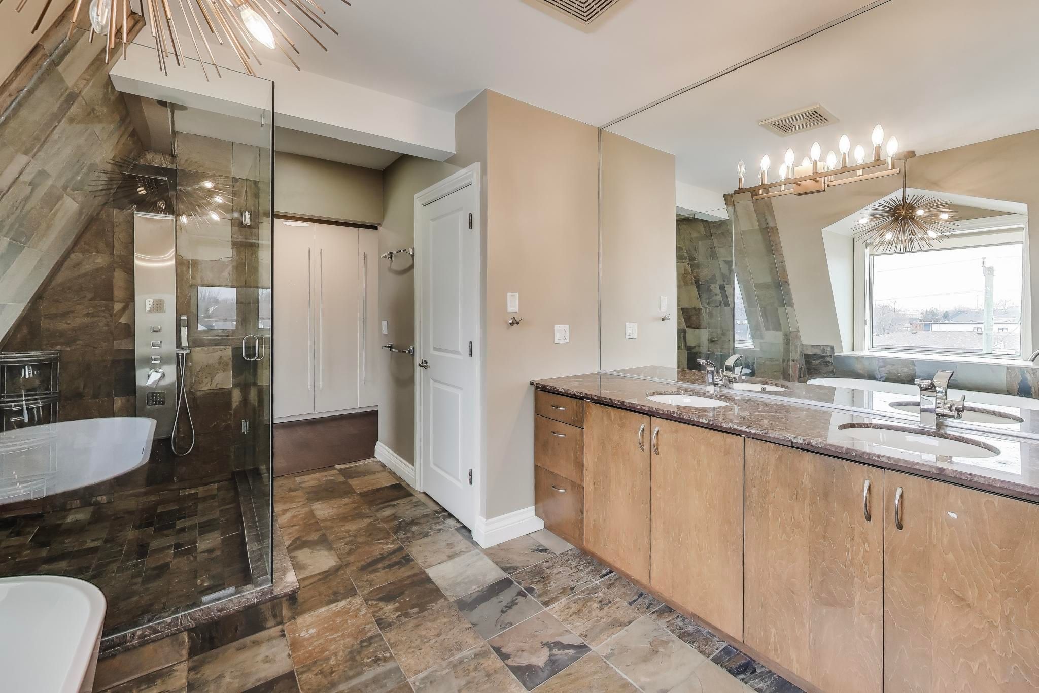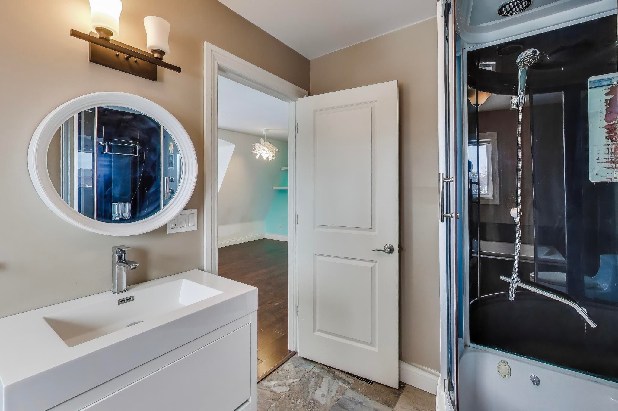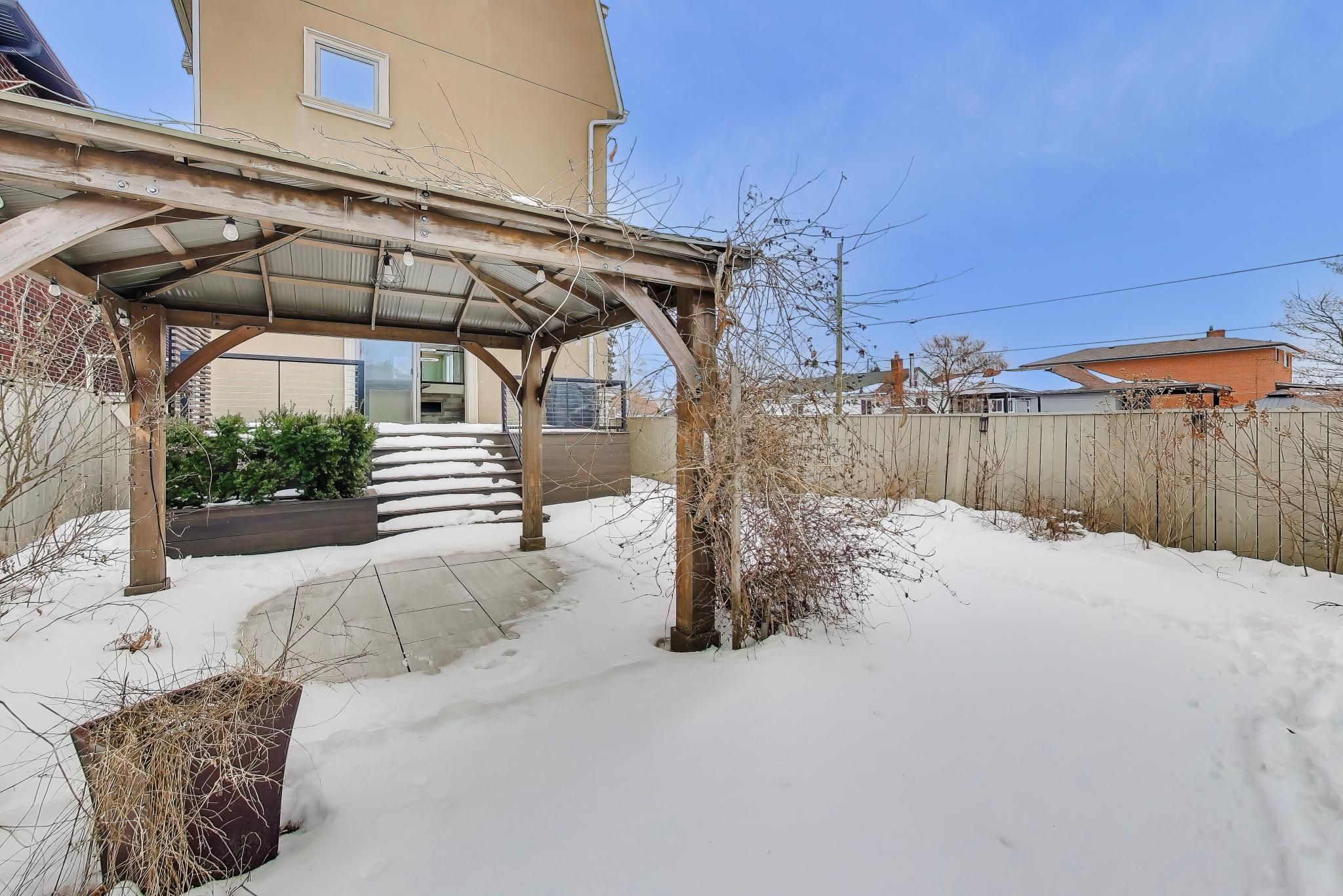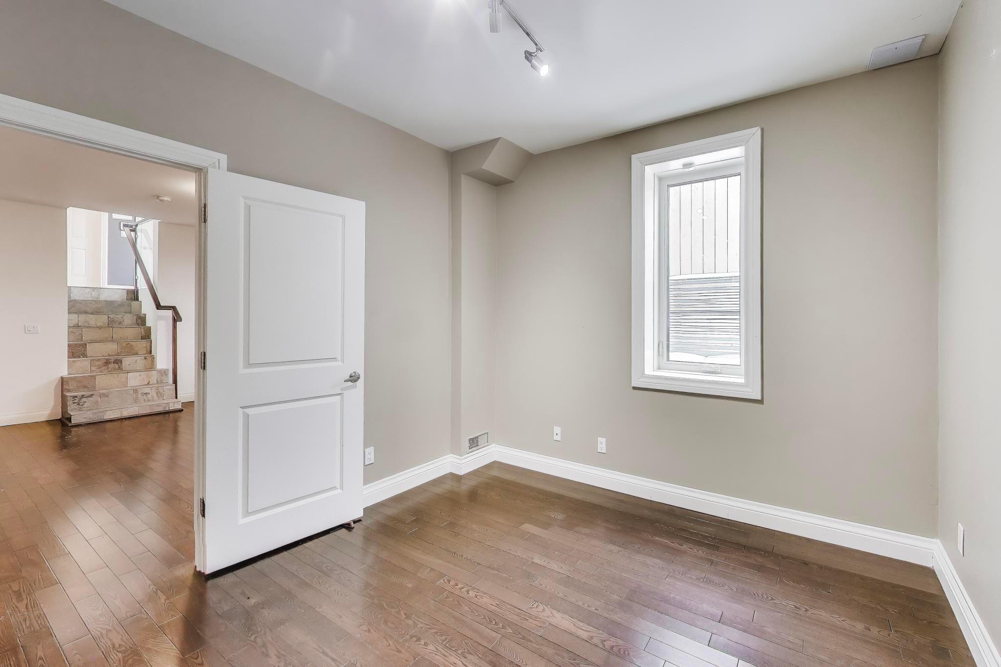 This residence offers approximately 4,785 sq ft of living space (incl. Bsmt), including a bright lower level with above-grade windows and direct access to the garage. The open-concept main floor features generous ceiling heights, a centre-island kitchen with quartz countertops and integrated stainless steel appliances, and a living area with a linear fireplace. A glass and wood staircase with open risers leads to an elevated family room. The property also includes a private rooftop terrace. Conveniently located in mississauga's lakeview neighbourhood with easy access to highways.