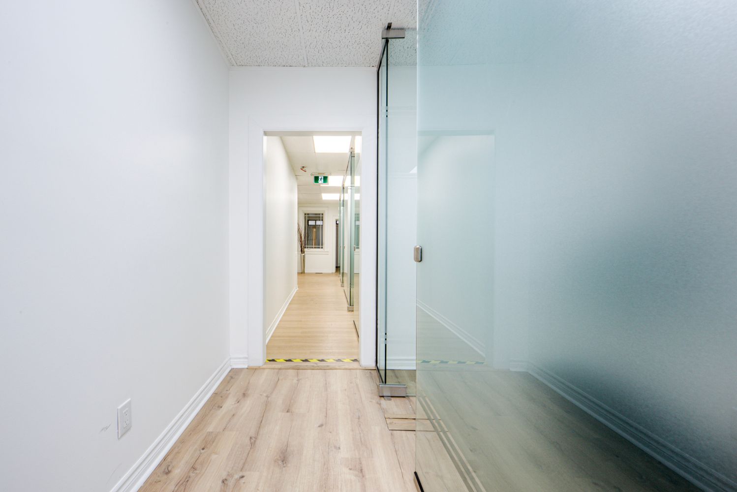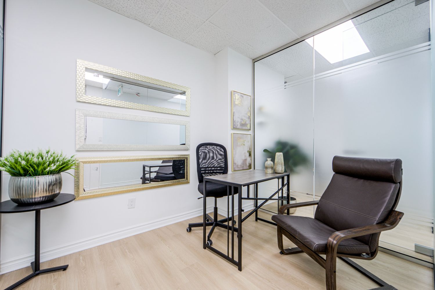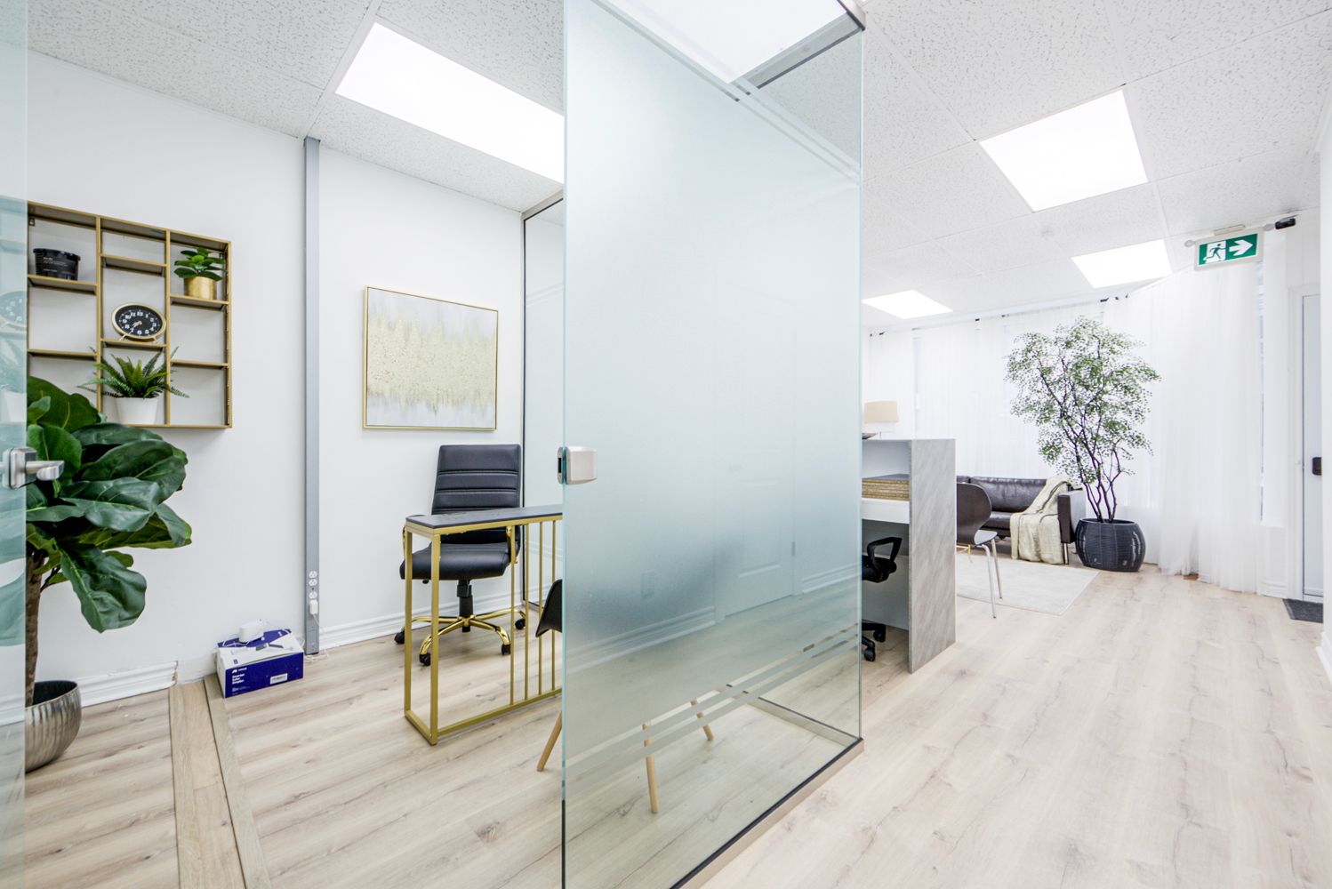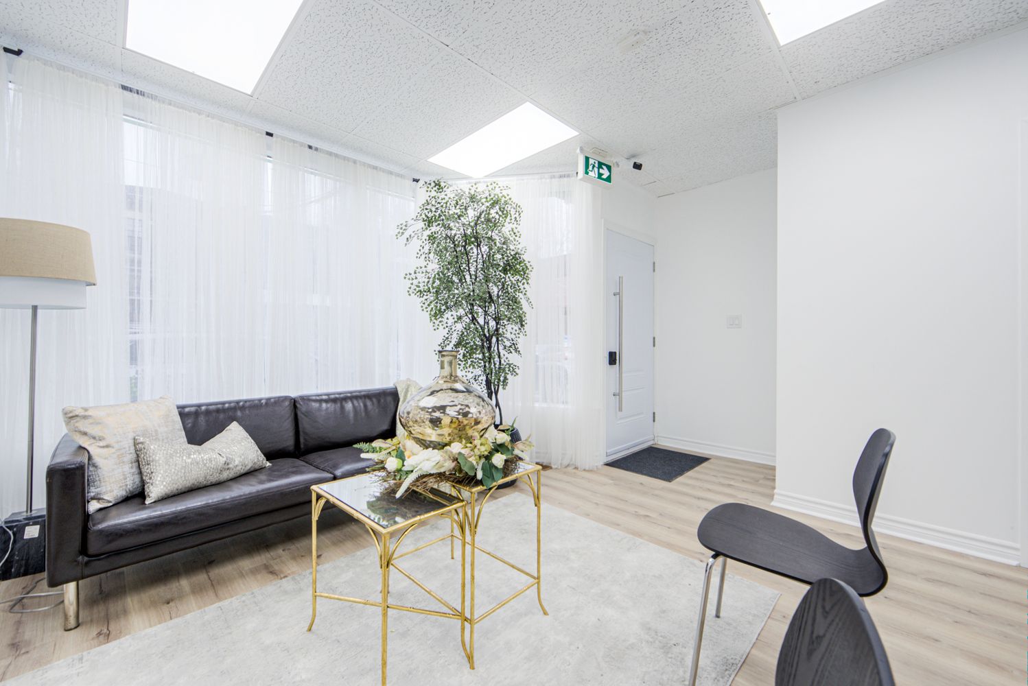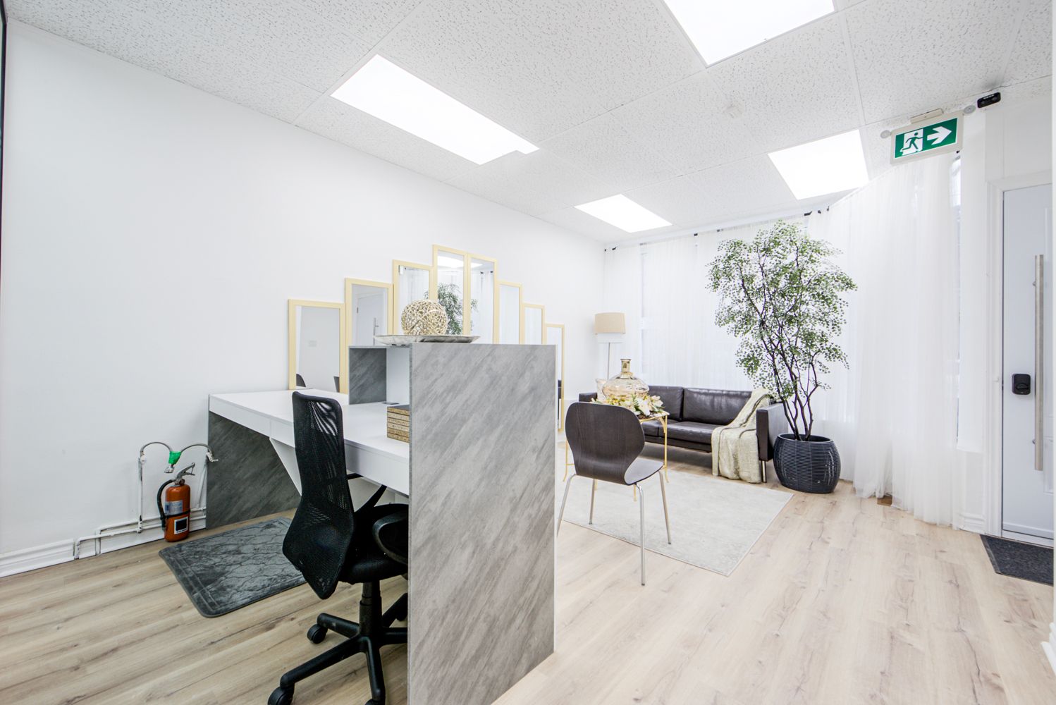This professionally updated 1,080 sq ft commercial unit offers a strong combination of functionality and modern design, making it well-suited for immediate business use. The space features a bright street-facing entrance with a welcoming reception or seating area, creating a strong first impression for clients and visitors. Inside, the layout includes four enclosed offices, providing a practical balance of privacy and collaboration space-ideal for client-facing businesses, team operations, or focused individual work. The unit is equipped with contemporary finishes and furnishings, contributing to a clean and professional environment. The flexible layout allows for a range of uses, including professional services, consulting, financial operations, or creative workspaces. Exclusive rear parking is available for additional costs.