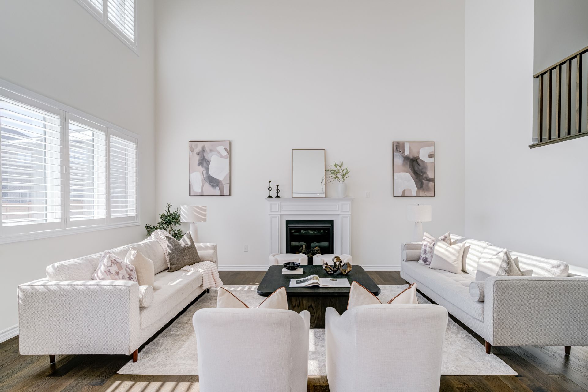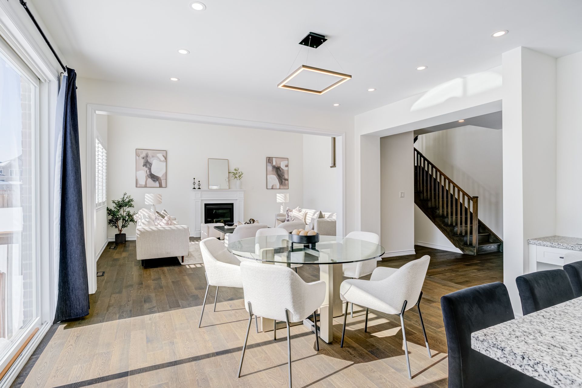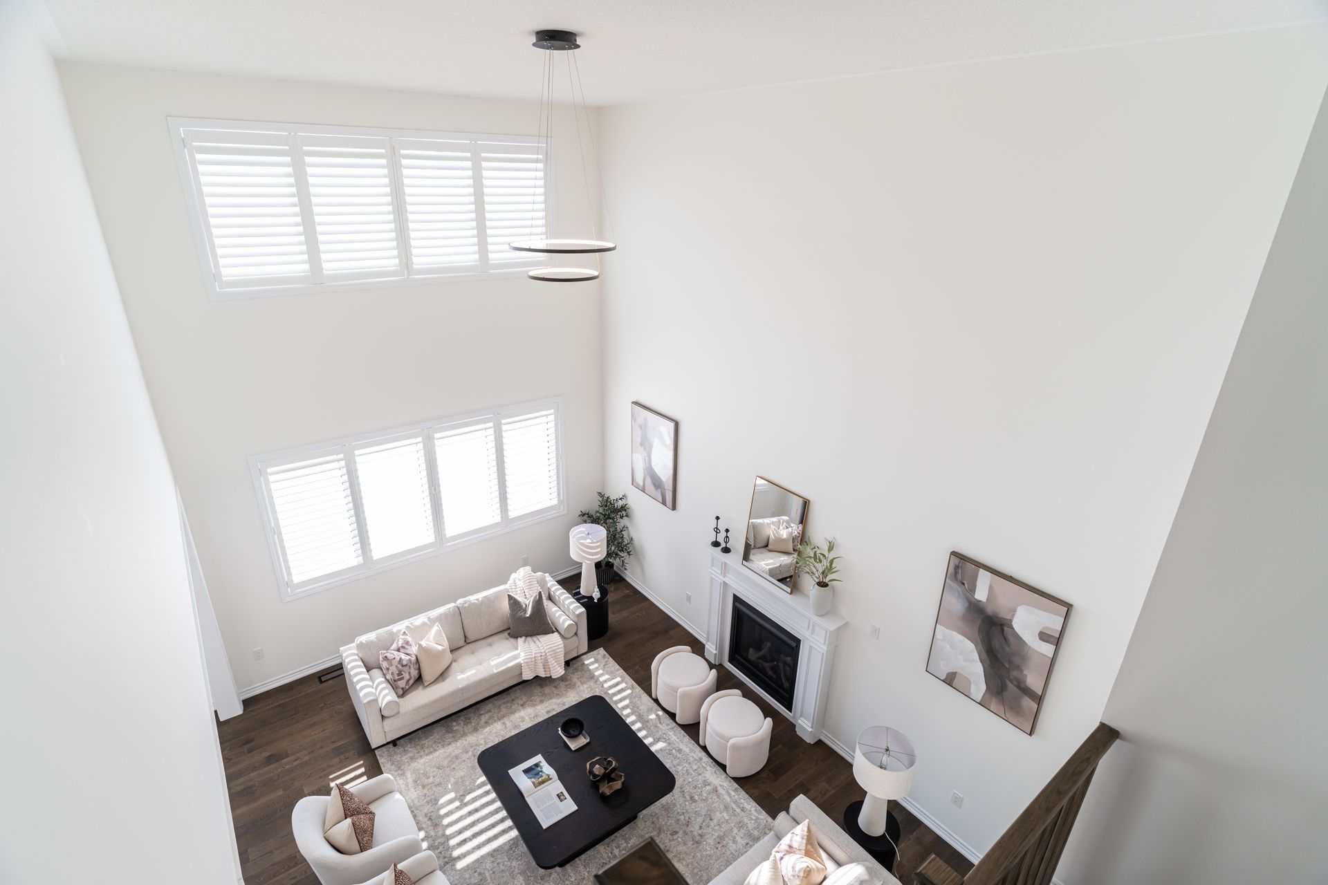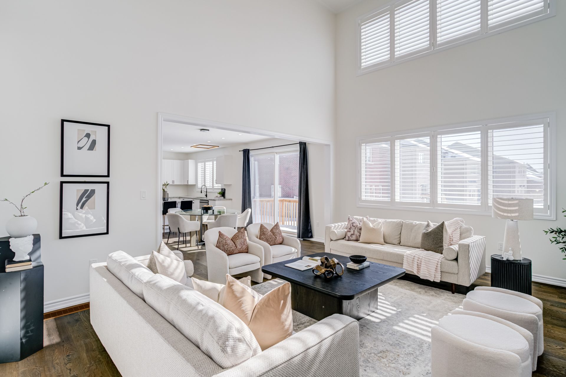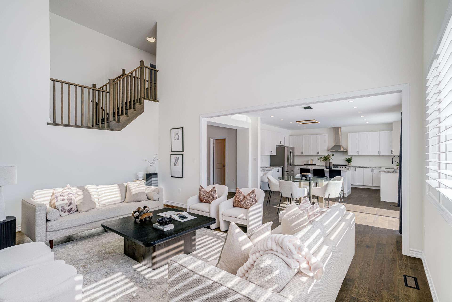 • Natural light floods the open family room with 18ft ceilings.