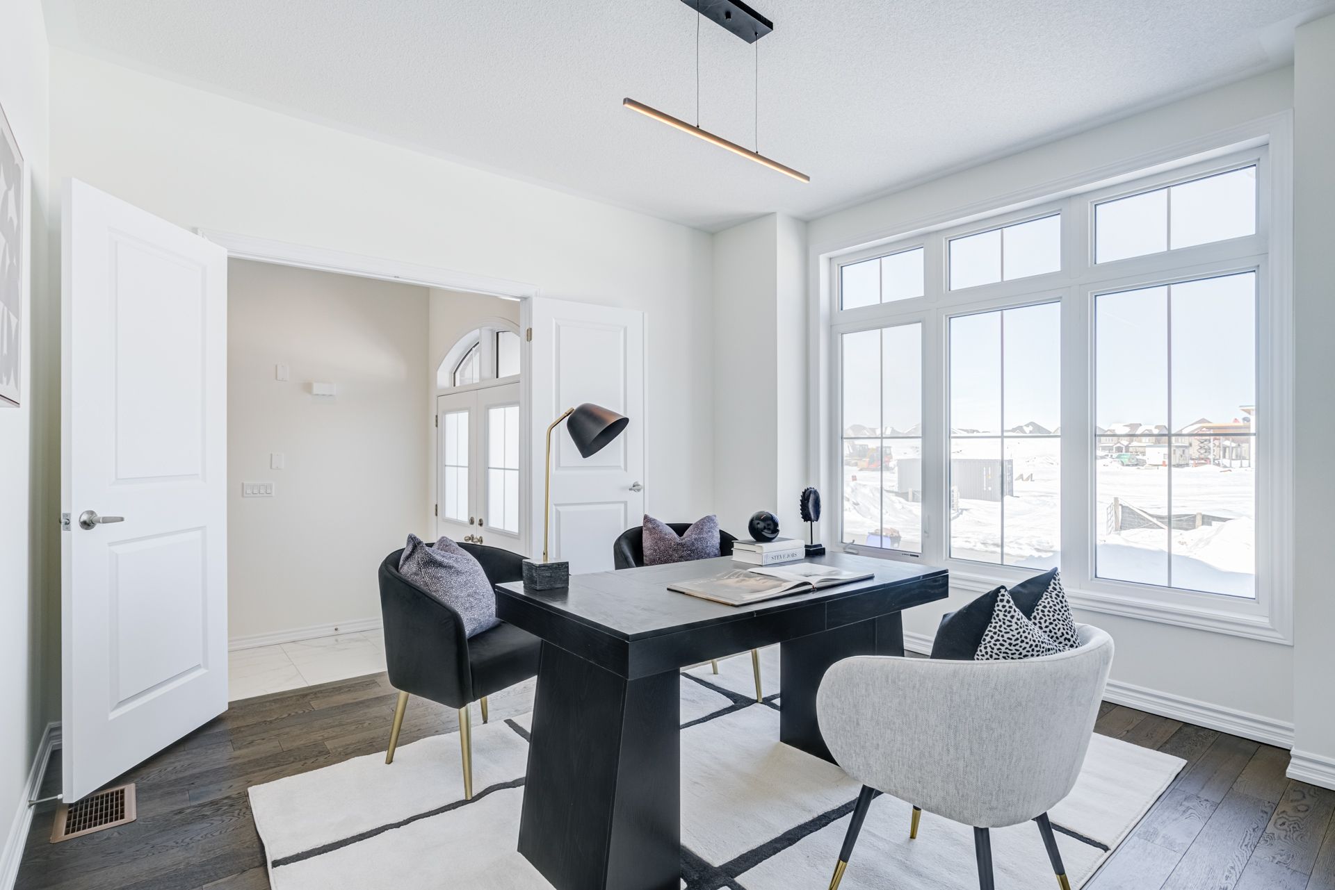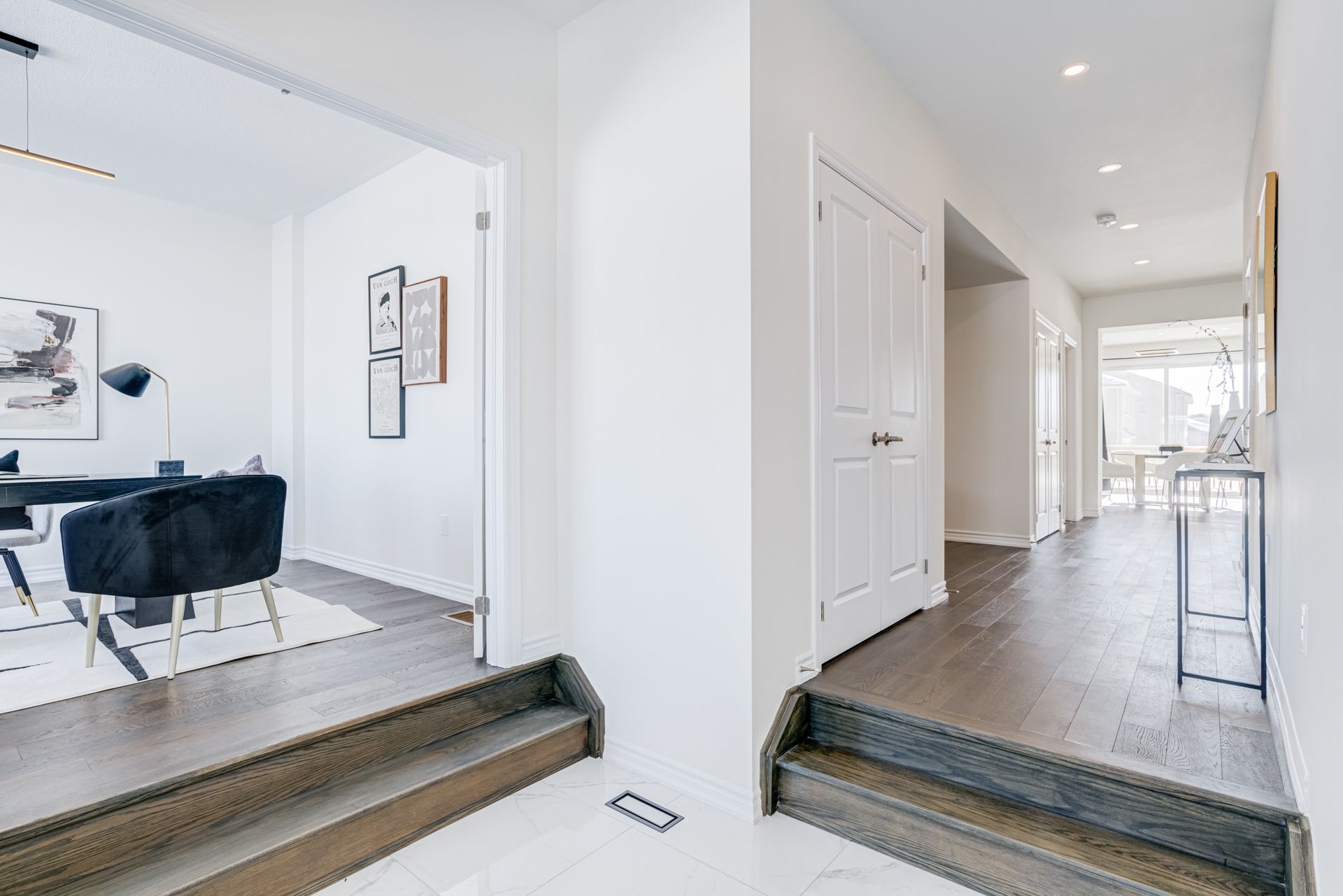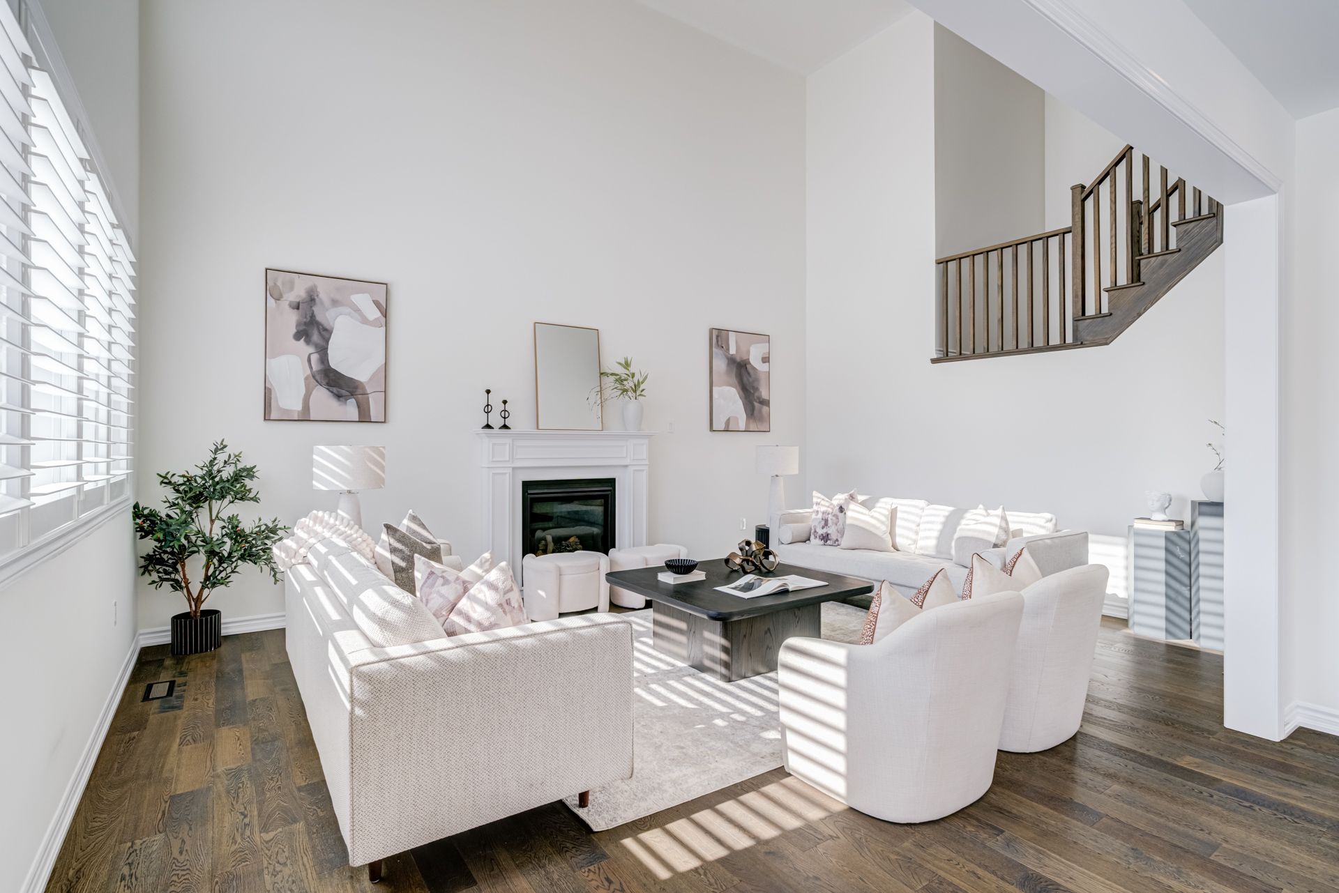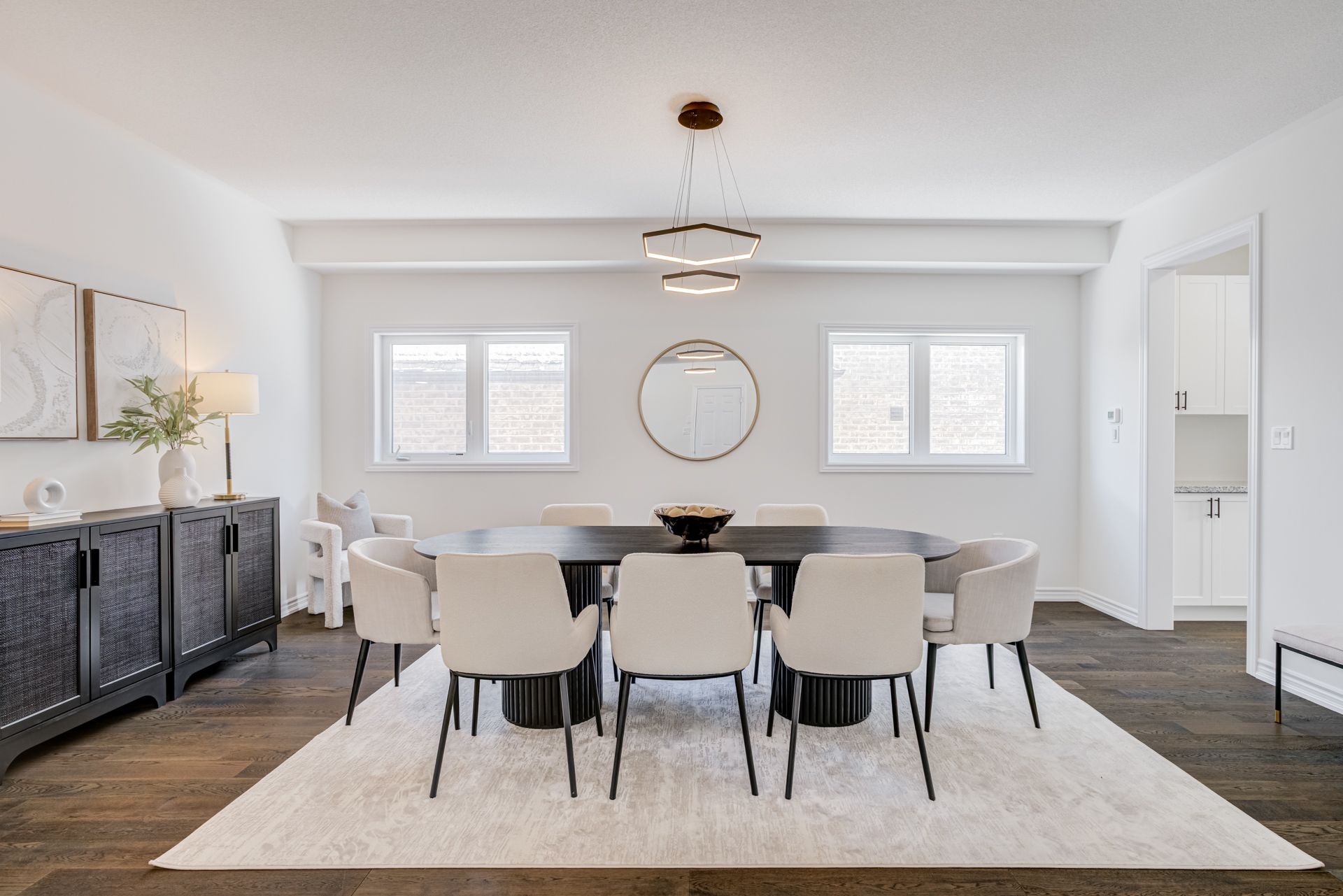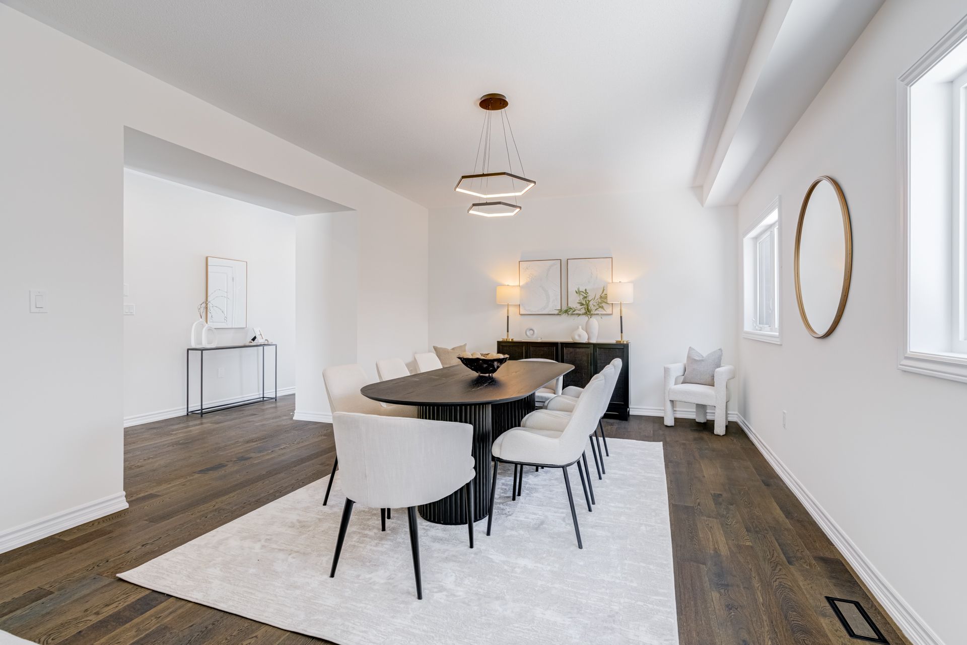 • Natural light floods the open family room with 18ft ceilings.