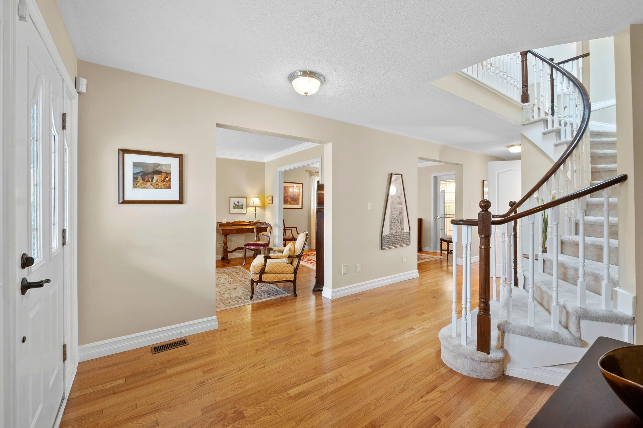 Ideally located in one of the area's most desirable neighborhoods, this exceptional home offers the perfect blend of elegance, comfort, and convenience just a short walk to the mill golf course and the ymca, and only minutes from cobourg's vibrant waterfront and charming shops. From the moment you step inside, you're greeted by a stunning grand foyer featuring a sweeping circular staircase that sets the tone for the home's refined design. The formal living and dining rooms are bright and inviting, offering an ideal setting for entertaining guests or hosting special occasions. At the heart of the home is a spacious, custom eat in kitchen, complete with abundant cabinetry, high end appliances, and a walkout to a private deck perfect for morning coffee or alfresco dining. The adjoining family room provides a warm and relaxing atmosphere with its cozy gas fireplace. A main level office/den offers a quiet and functional space for working from home, while the conveniently located laundry room adds everyday practicality. Upstairs, the expansive primary suite is a true retreat, bright and beautifully appointed, featuring power window coverings and a luxurious custom ensuite with heated floors, a large walk-in shower, and a deep soaker tub. Three additional generously sized bedrooms complete the upper level. The finished basement extends the living space with two recreation rooms ideal for family gatherings, a versatile office currently used as a bedroom, a workshop, and a 3-piece bathroom. Outdoors, enjoy two private backyard decks designed for summer entertaining and relaxation. Nothing has been overlooked, including the spacious garage with a polyaspartic floor coating , and numerous thoughtful upgrades throughout. This meticulously maintained home offers exceptional quality and is truly a pleasure to view.