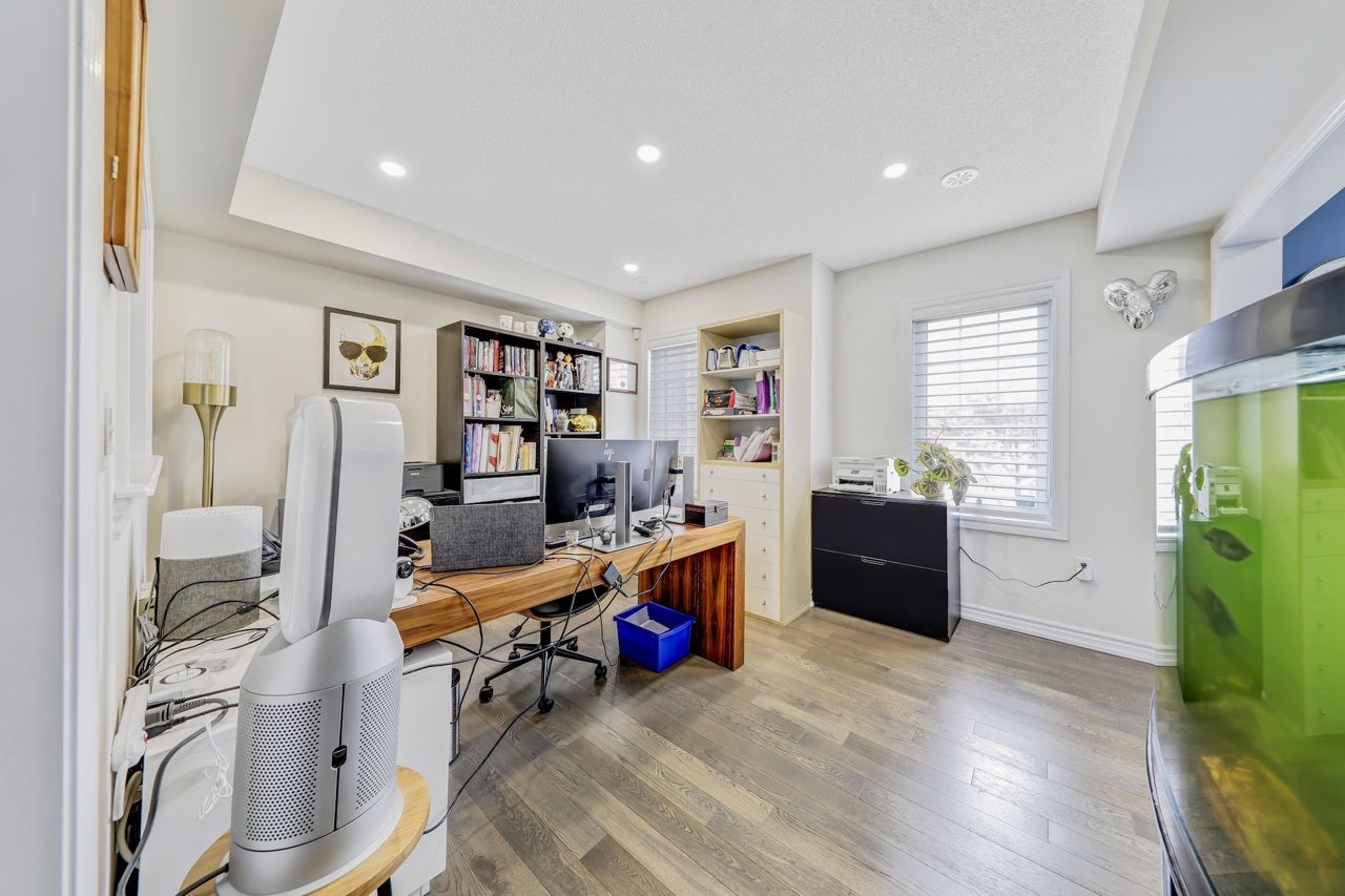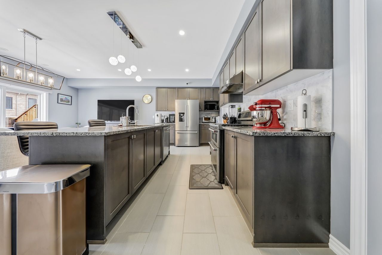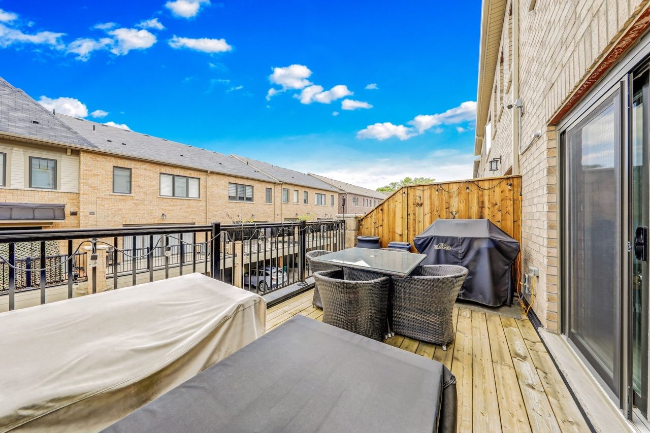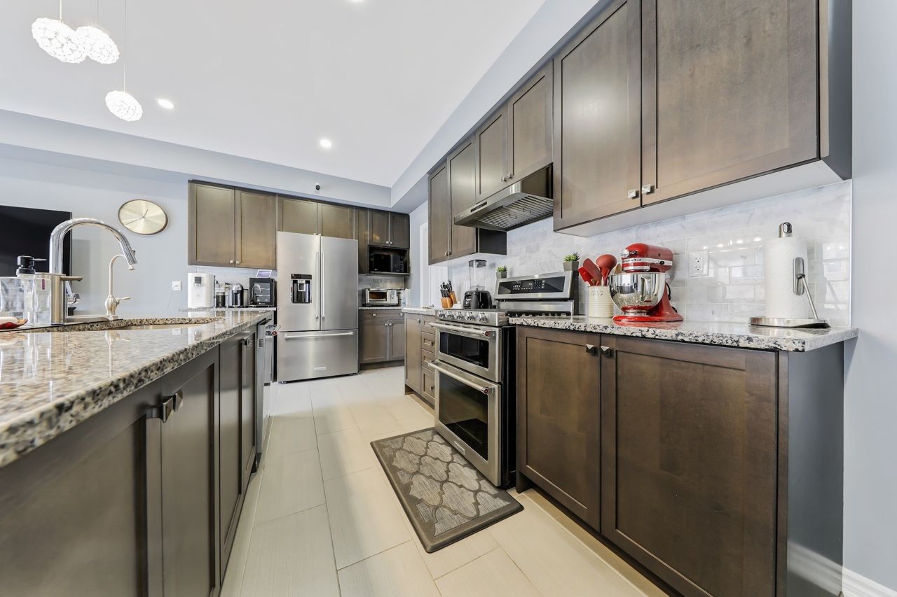 Located in the highly sought-after victoria square community in markham, this bright and beautifully maintained freehold townhouse offers over 2,300 sq. Ft. Of upgraded living space (as per builder). Featuring 3 spacious bedrooms plus a versatile den that can easily be converted into a 4th bedroom or home office. Enjoy 9-ft ceilings, led pot lights, a walk-in pantry, and a walk-out balcony complete with a bbq gas line. The upgraded kitchen showcases granite countertops, an oversized breakfast island, premium stainless steel appliances, and a gas stove - perfect for everyday living and entertaining. The professionally upgraded double car garage boasts 12-ft ceilings, epoxy flooring, equipped to add an ev charger and overhead storage. Additional features include automated window blinds and a professionally landscaped, functional front porch. Conveniently located close to grocery stores, pharmacies, restaurants, and schools.