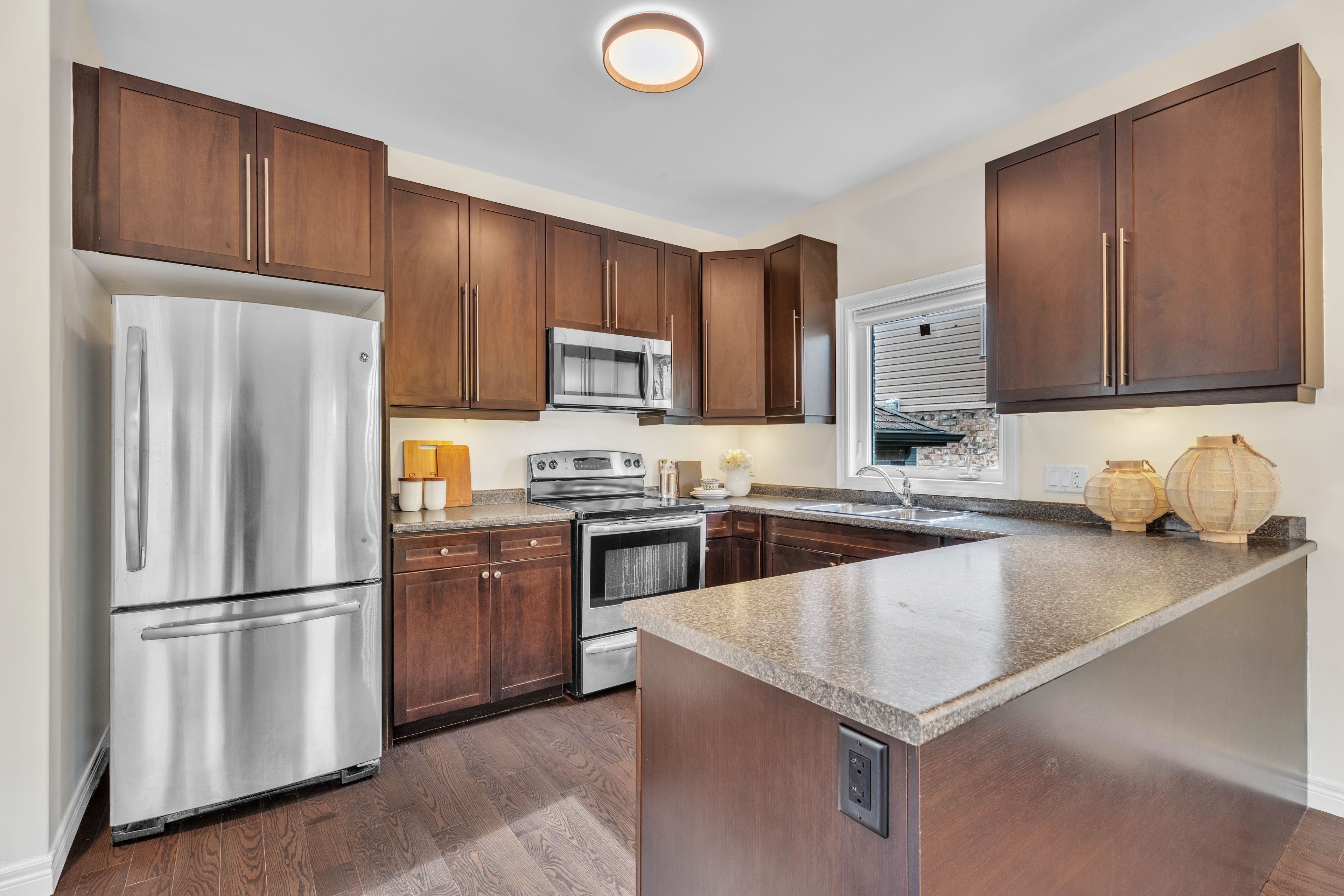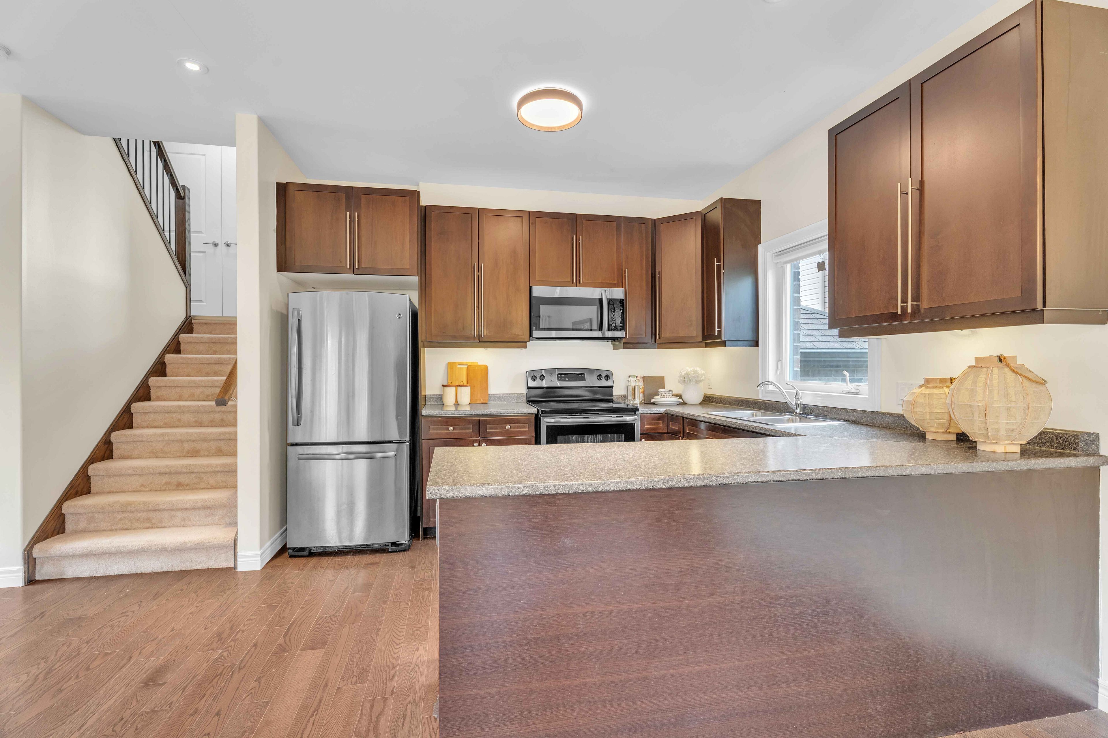 Beautiful ironstone-built multi-level home in the desirable oakridge crossing neighborhood - identical to the original model home! This 3 beds 4 baths stylish and functional layout offers generous living space, abundant natural light, and thoughtful design throughout. Modern open-concept kitchen and dining area, spacious and bright living room opens to a patio door leading to an enclosed private deck overlooking fully fenced yard. Large master bedroom with 4 piece ensuite and walk in closet. 3rd floor laundry adds ease to daily living. Well appointed upper bedrooms create the perfect inviting flow for family living and entertaining. Fully finished lower level offers a rec room and additional full 4 piece bathroom with all windows above grade. Upgrades include: new flooring & neutral paint(2017), blade x (midea) ultra-quiet air conditioners(2024), modern lighting fixtures throughout the house(2024), modern wayne garage door-dalton model(2024), new over-the-range microwave(2025), freshly stained deck with premium transparent oil(2025). Prime oakcrossing location close to schools, shopping, parks and trails. Move-in ready with model-home finishes and exceptional craftsmanship.