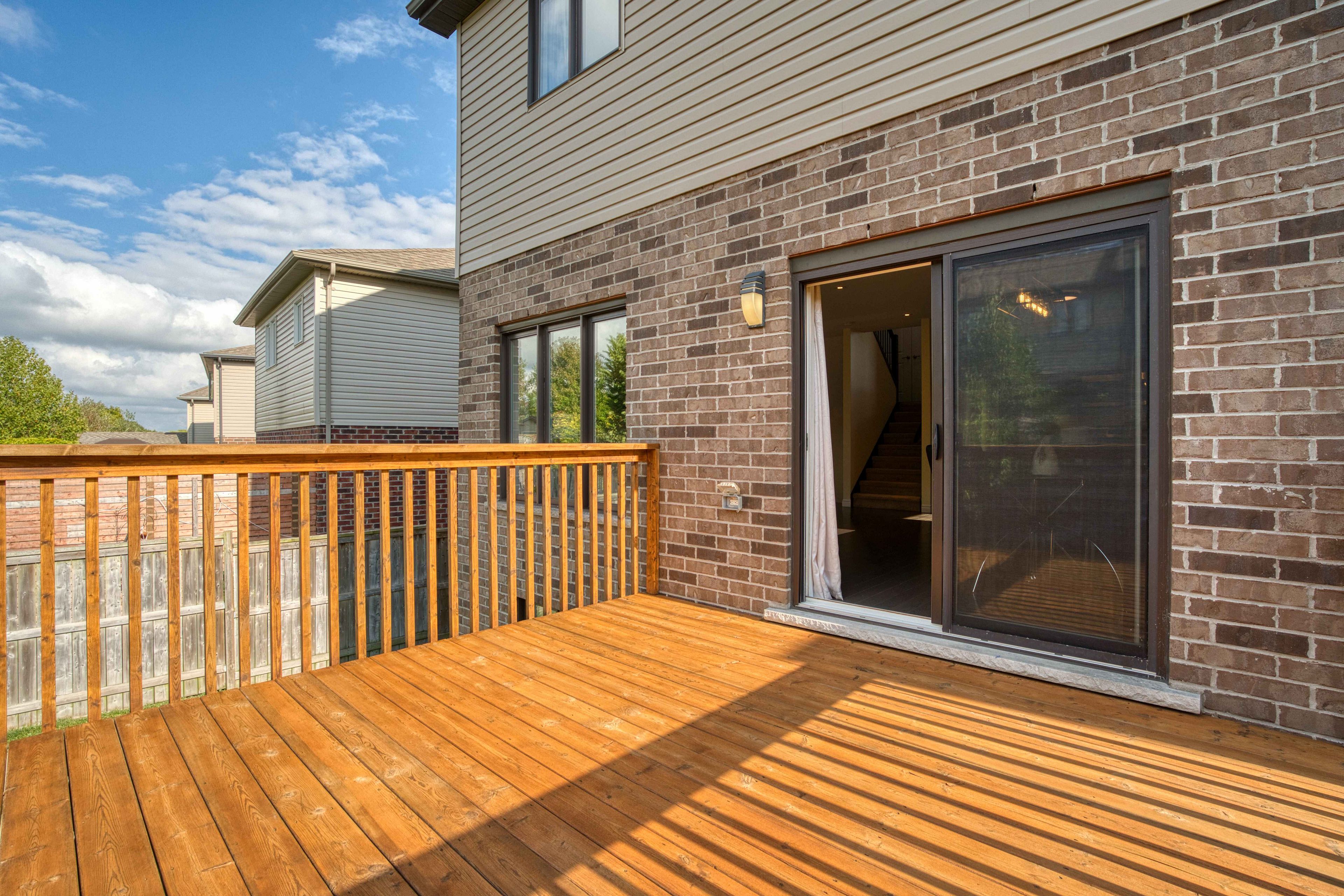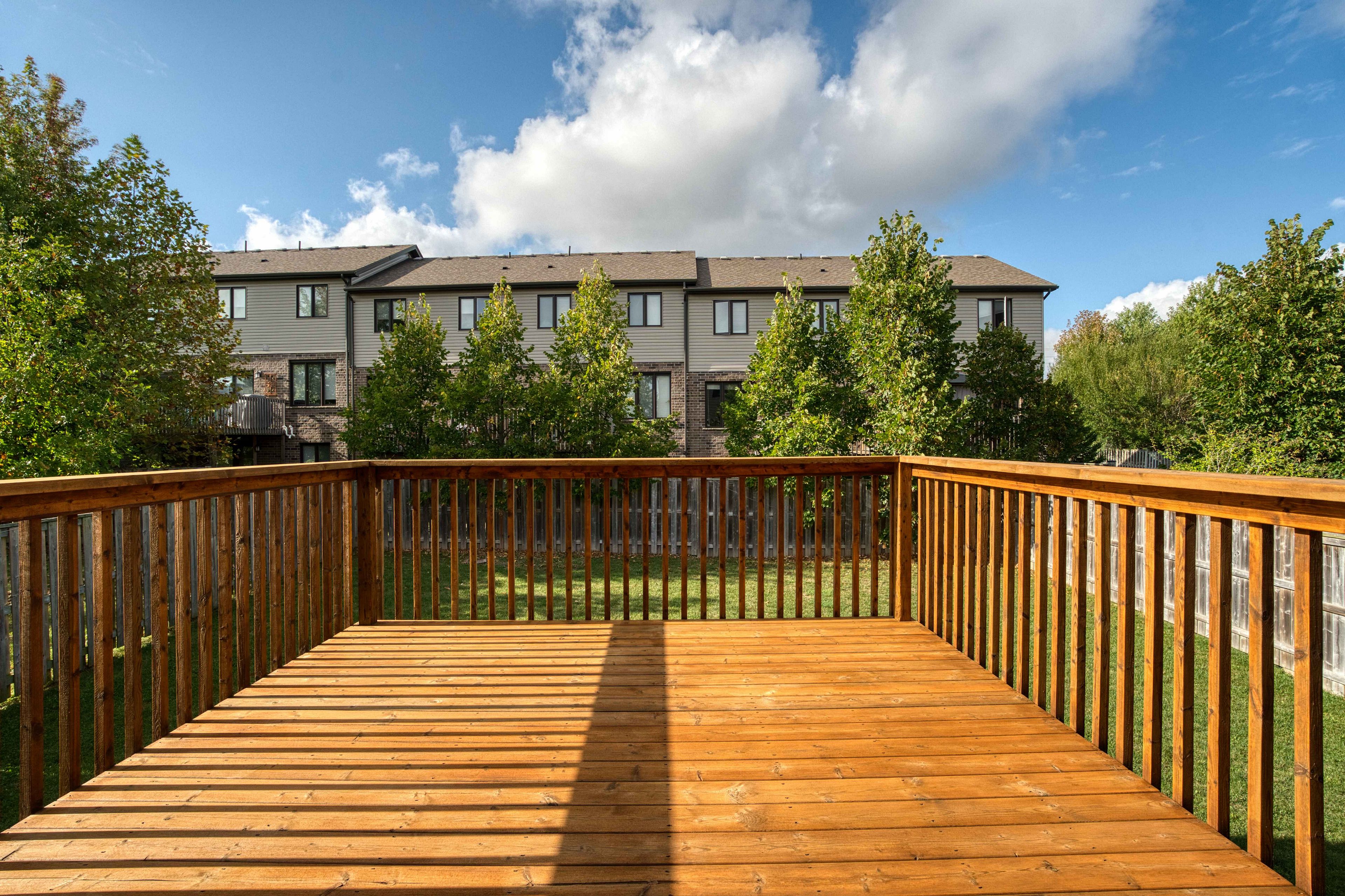 • Private deck overlooks a fully fenced yard, perfect for relaxation.