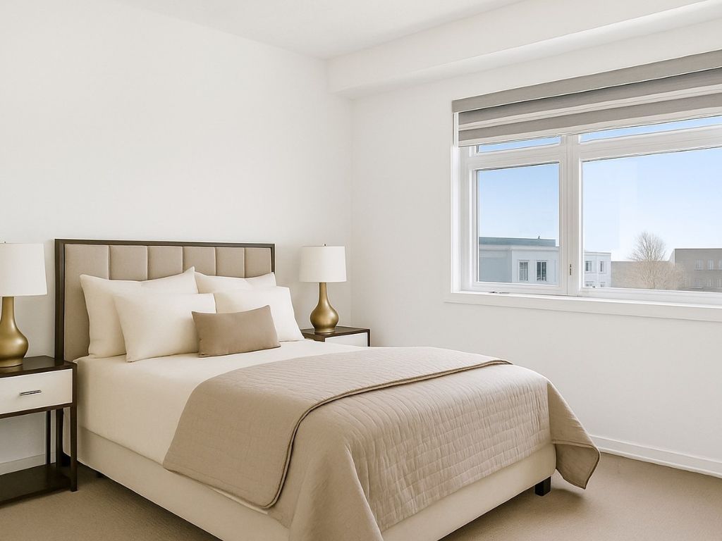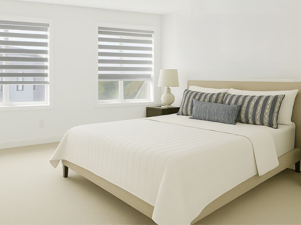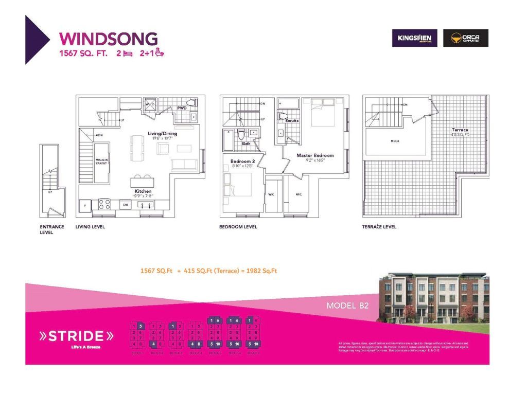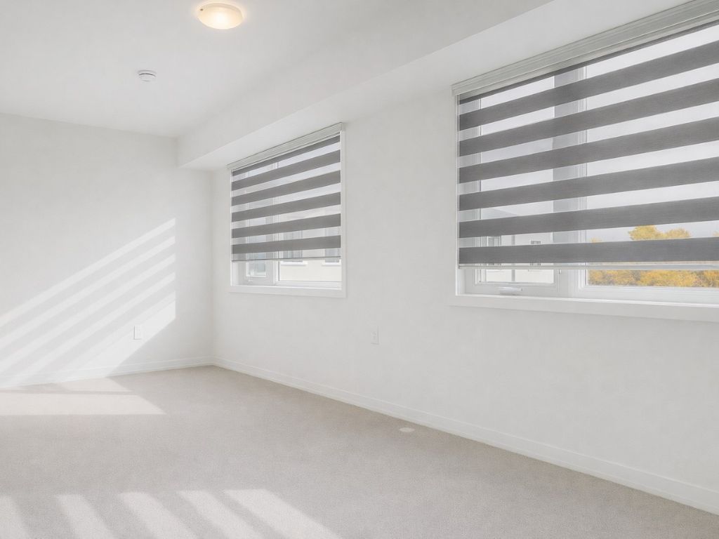 Rare brand-new end-unit townhome with a private rooftop terrace, offering exceptional privacy and quiet lakeside living in mississauga's lakeview neighbourhood. Never occupied and overlooking greenspace, this 1,567 sq. Ft. Home features 2 bedrooms, 2. 5 bathrooms, a primary suite with walk-in closet, modern grey zebra blinds, and an open-concept kitchen with upgraded stainless-steel appliances, large centre island, quartz countertops and backsplash, premium laminate flooring, and plush bedroom carpeting. The home includes free rogers high-speed internet, private underground parking, ample visitor parking, and excellent access to the qew, long branch go station, mississauga transit, waterfront trails, lakeview parks, and port credit amenities.