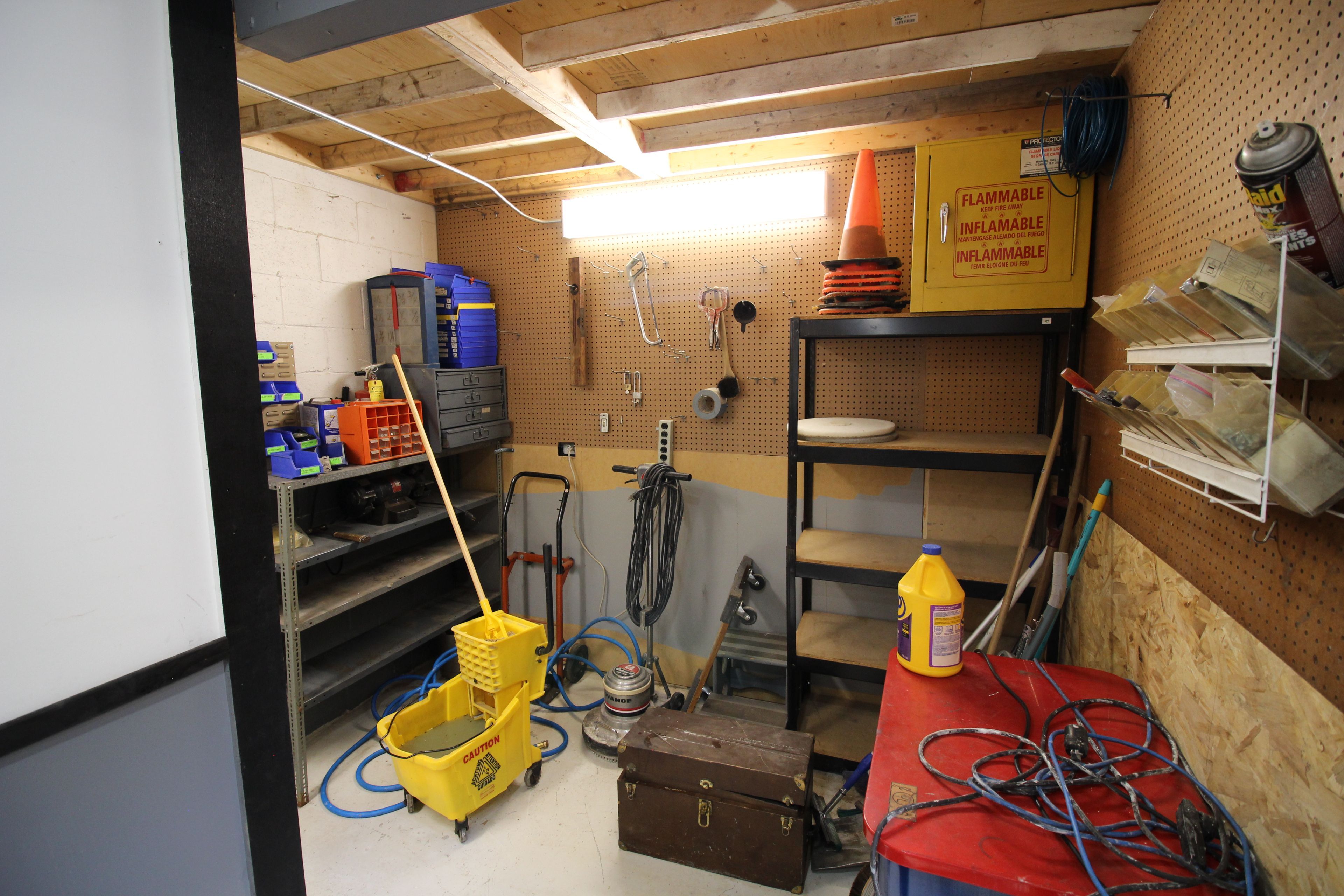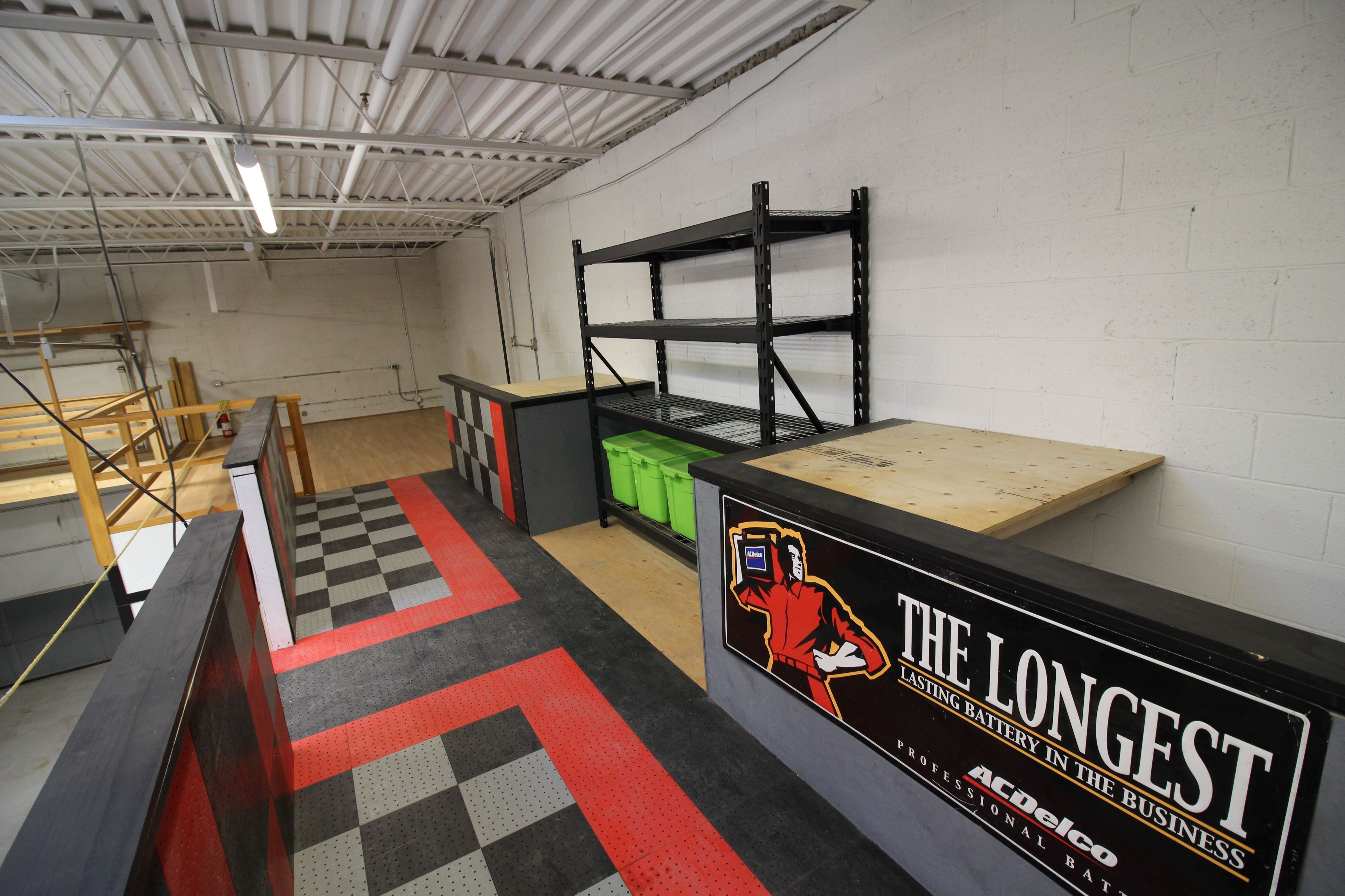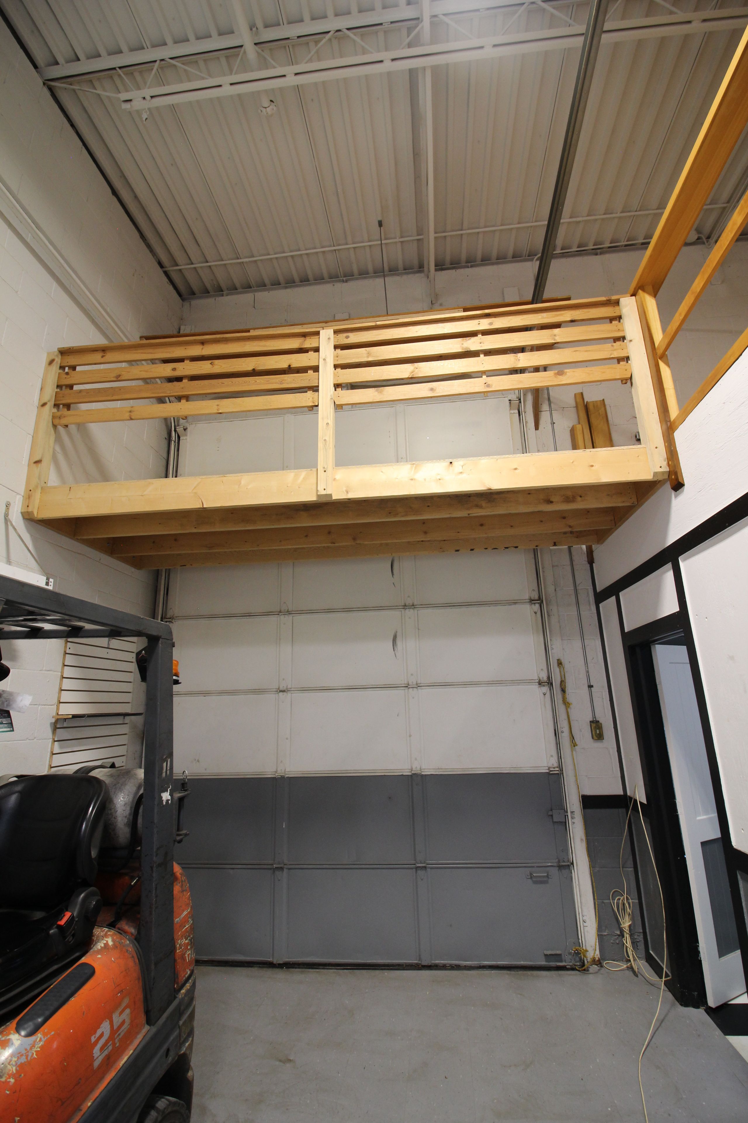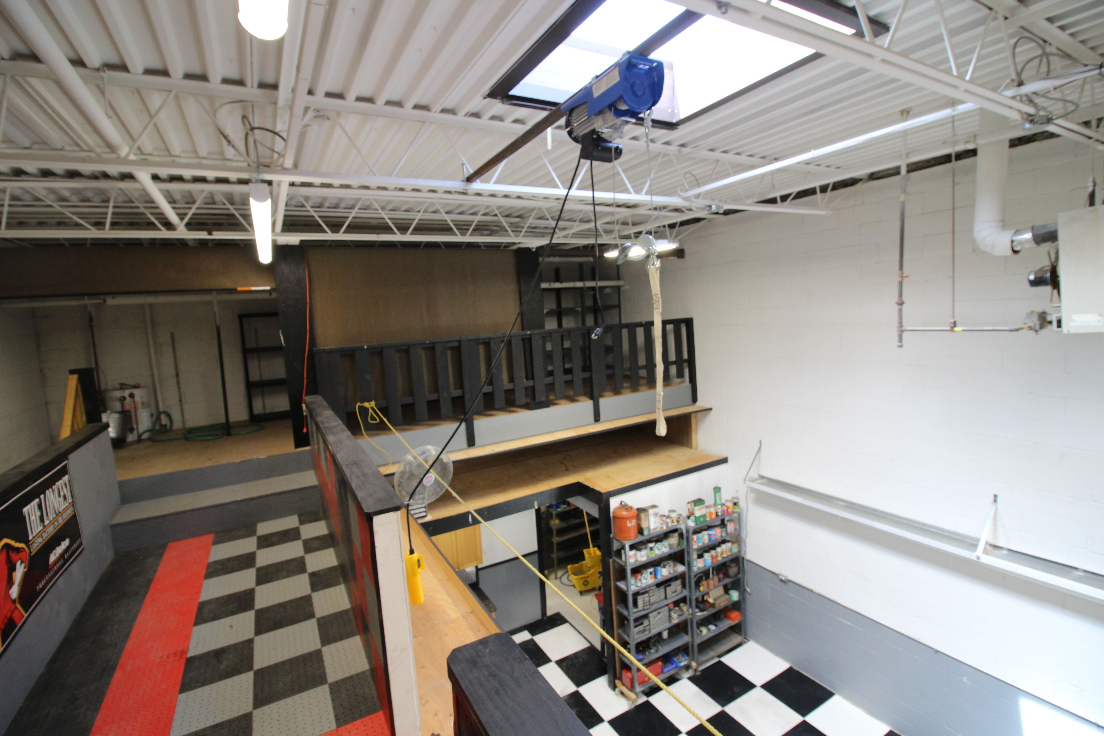 • Includes office space, bathroom with shower, and mezzanine for storage.